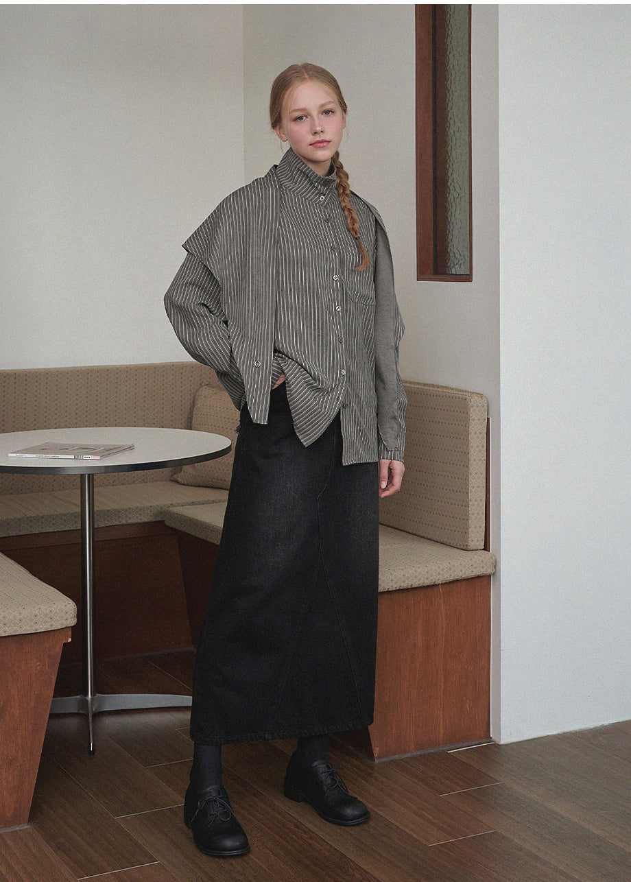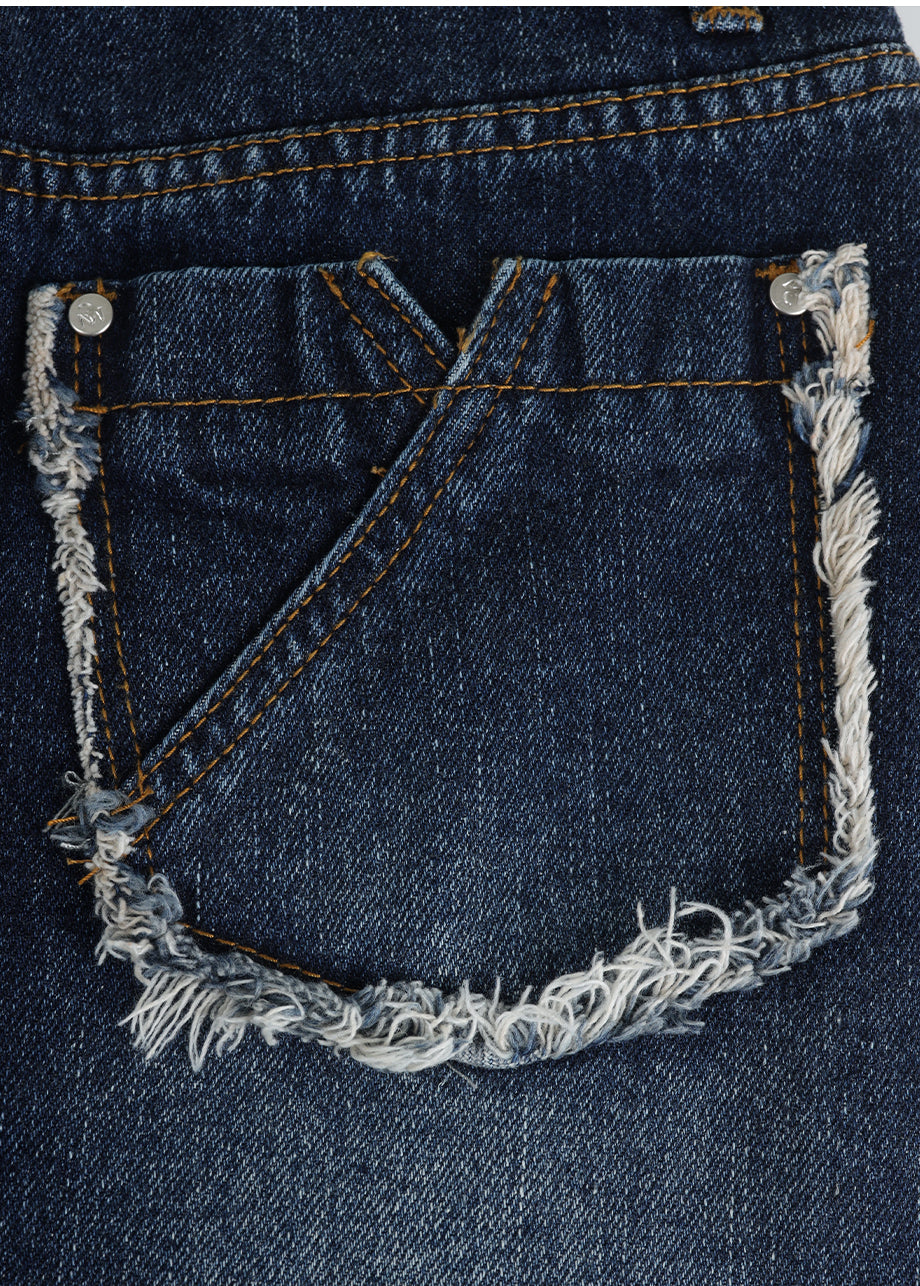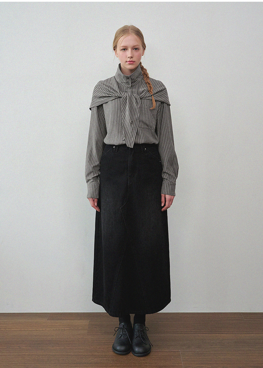 カジュアルでヴィンテージなムードのデニムスカートです。耐久性に優れた裏起毛デニム生地で仕立てられており、型崩れしにくく暖かい着心地が魅力です。程よい厚みの起毛素材で、秋から冬までシーズンを問わず快適に着用できます。複数回のウォッシング工程によって生まれた独特の色合いとディテールが、高級感のあるヴィンテージテイストを演出します。上品なカジュアルムードで、デイリーにもトレンド感ある着こなしが楽しめます。ロング丈のセミAラインシルエットで、さまざまなトップスとのコーディネートが楽しめます。バックポケットにはフリンジデザインを施し、感度の高い仕上がりに。さらにシグネチャーカットとスリットを加え、ディテールの完成度を高めました。カジュアルなデザインで、FWシーズンのデイリースカートとしておすすめの一枚です。*装飾や特殊なデザインが施された製品のため、クリーニング専門店でのお手入れをおすすめいたします。