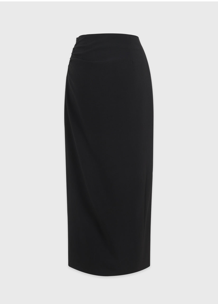 クラシックでフェミニンなムードのロングスカートです。ロング丈のセミストレートフィットで、すっきりとした印象に。サイドシャーリングとストリングディテールが体型カバーとムード演出をサポートします。*装飾が施された製品のため、クリーニング専門店でのお手入れをおすすめいたします。