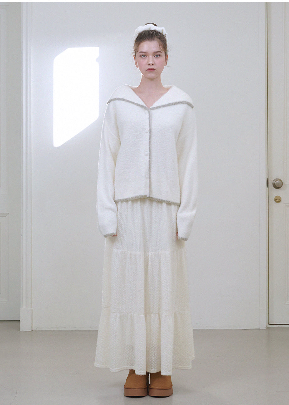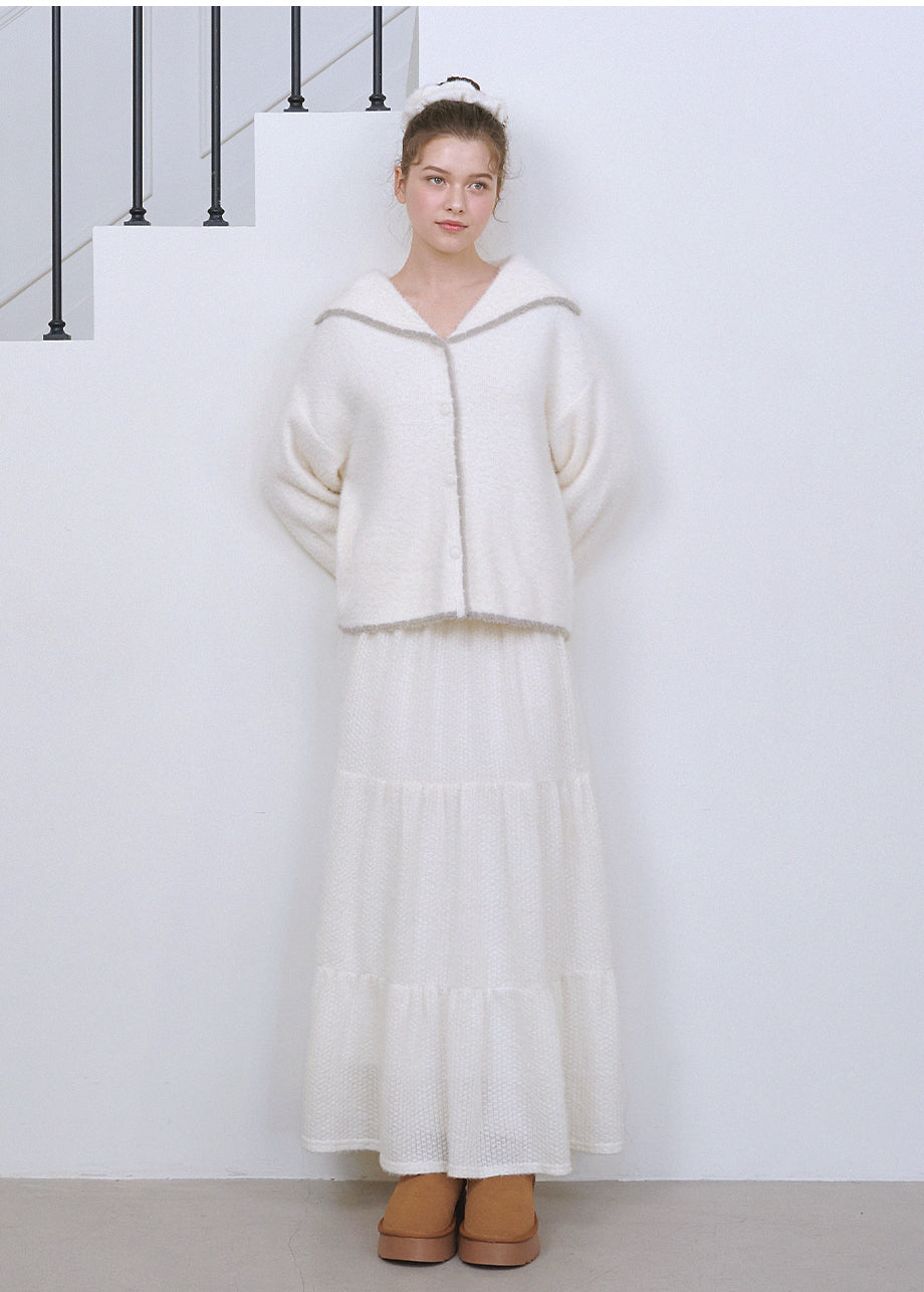 カジュアルヴィンテージムードのスカートです。柔らかくヘアリーなテクスチャーのニット素材を使用し、シーズンムードとともに温かい着心地が特徴です。肌に触れるウエストライン部分には織り素材で配色を施し、刺激なくしっかりとホールドできるよう仕上げました。裏地が付いており、快適な着用をサポートします。ロング丈のキャンキャンデザインで、ラブリーヴィンテージなムードを演出できます。ウエストサイドにはペンダント風の装飾を加え、クオリティ高く仕上げました。*装飾や特殊なデザインが施された製品のため、クリーニング専門店でのお手入れをおすすめいたします。