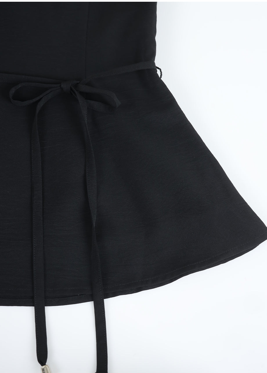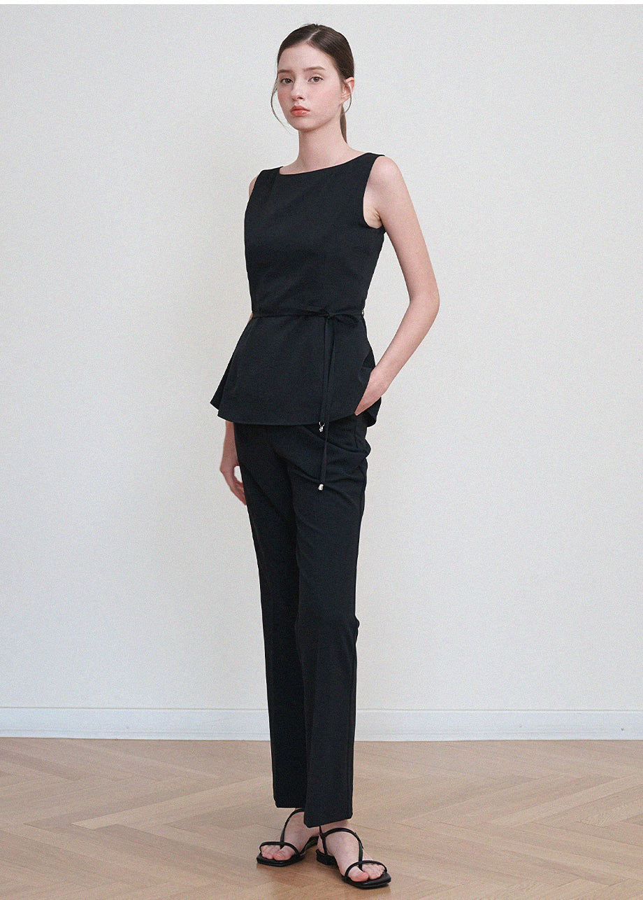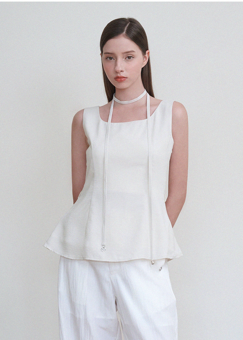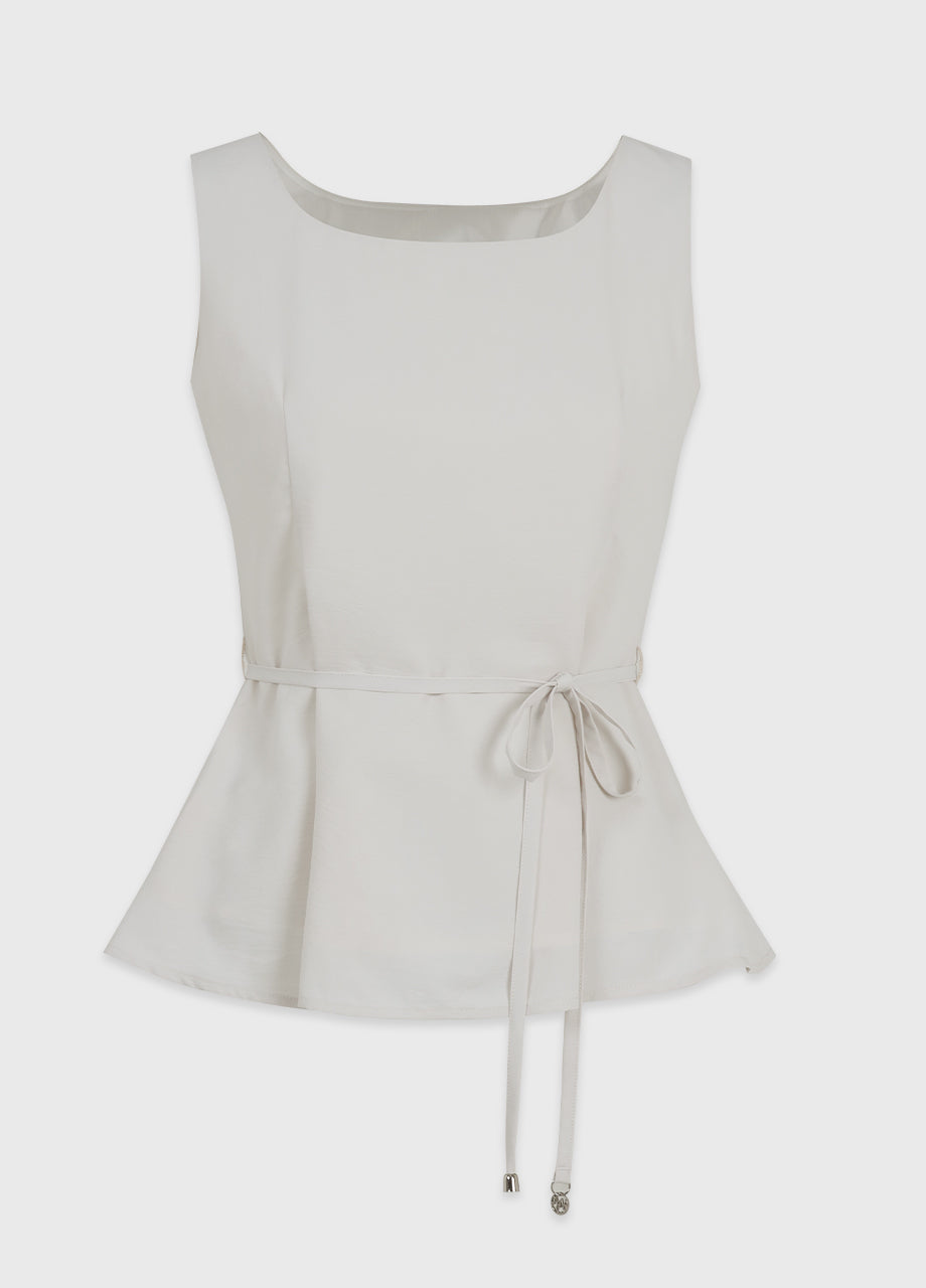 クラシックムードのツーウェイノースリーブブラウス。ワイドスクエアネックとペプラムヘムが体型を美しく見せ、前後どちらでも着用可能です。*装飾や特殊なデザインが施された製品のため、クリーニング専門店でのお手入れをおすすめいたします。
