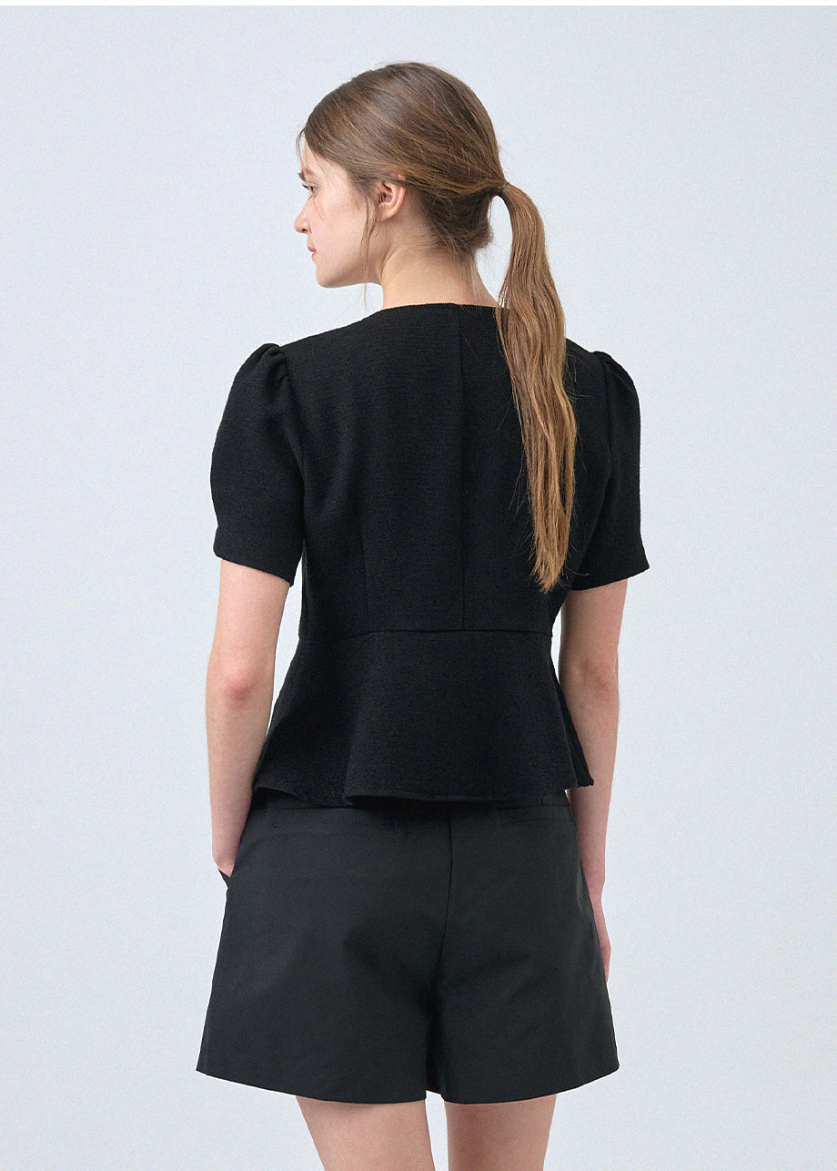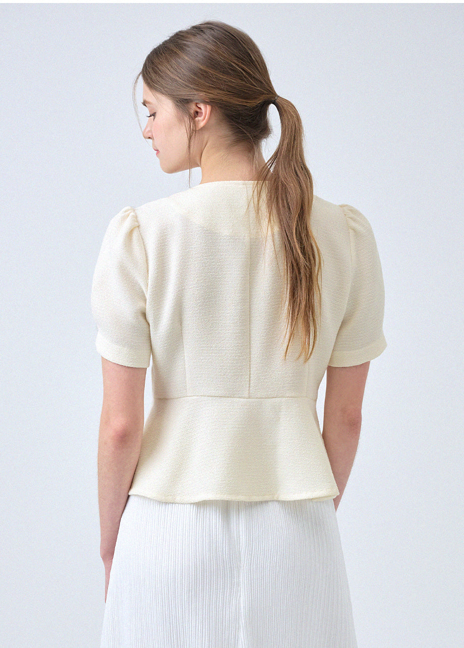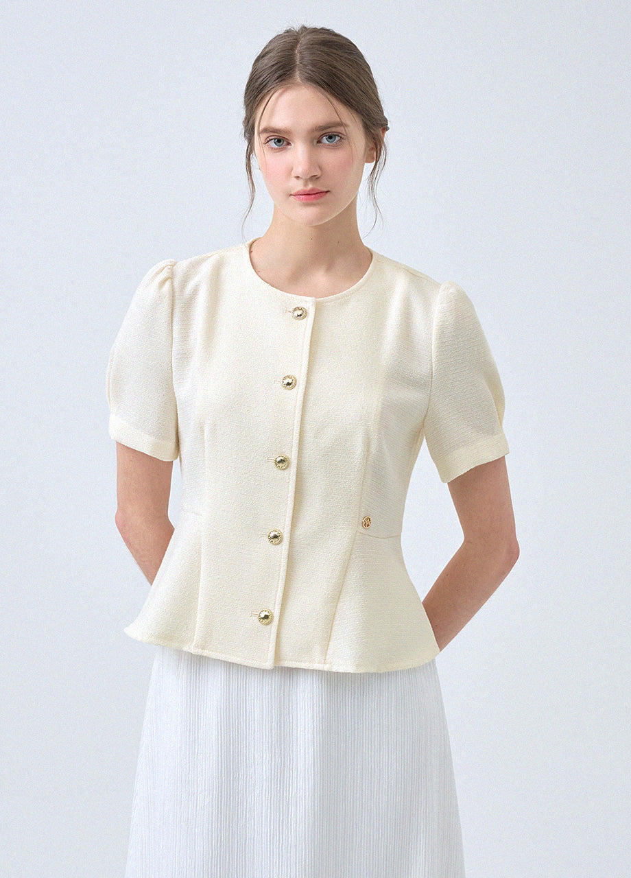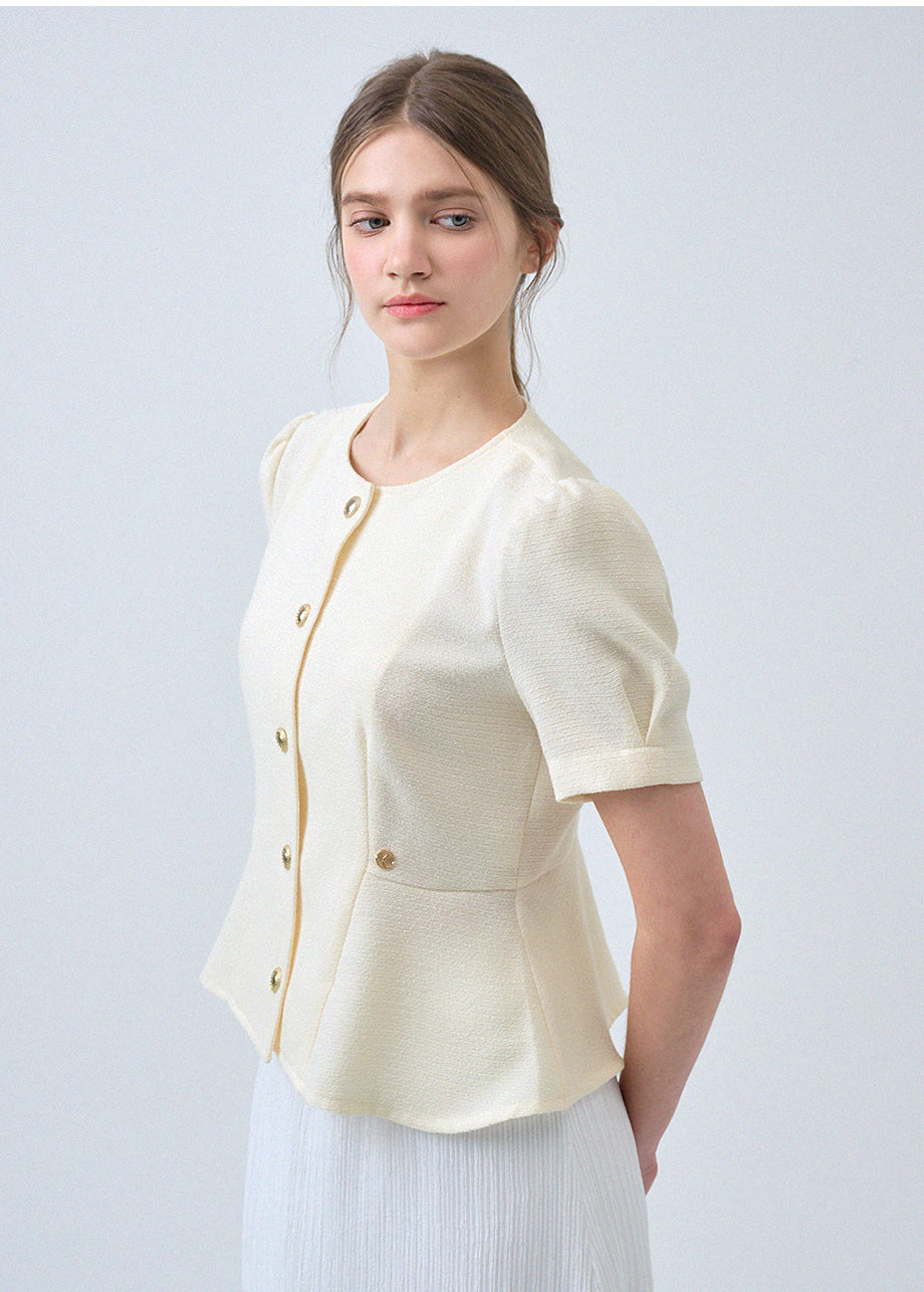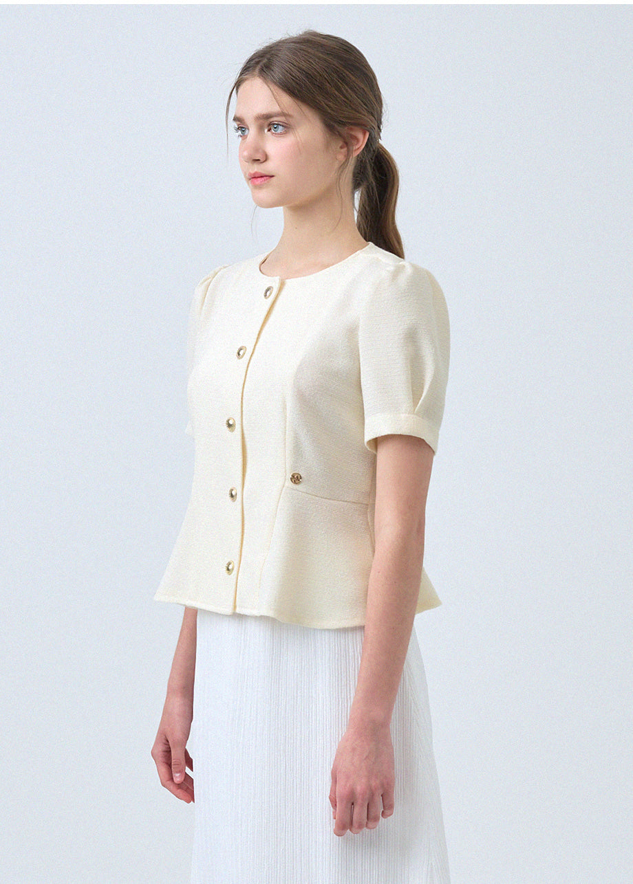 フェミニンな感性のツイードブラウスです。ラウンドネックにペプラムデザインでウエストを引き締め、女性らしいスリムシルエットを演出します。*装飾が施された製品のため、クリーニング専門店でのお手入れをおすすめいたします。