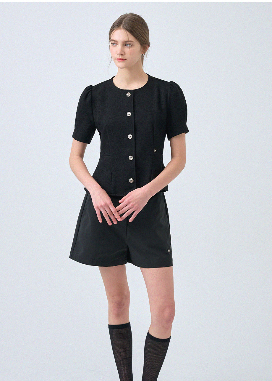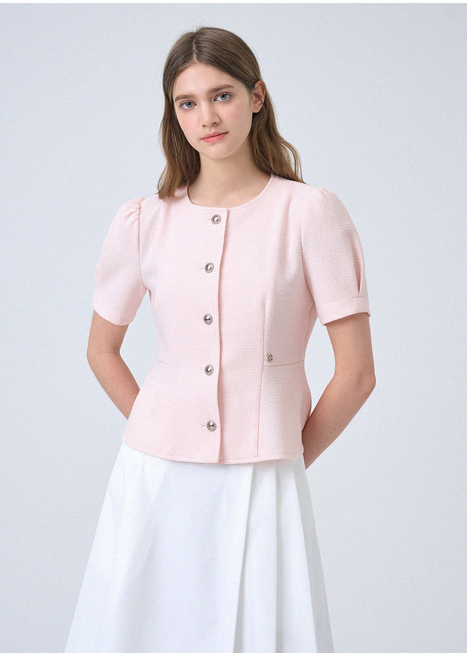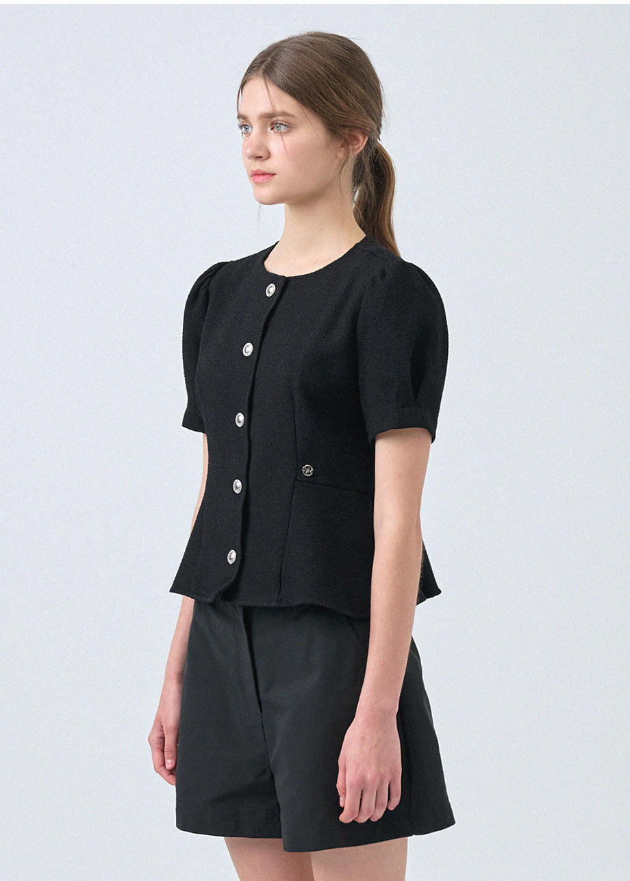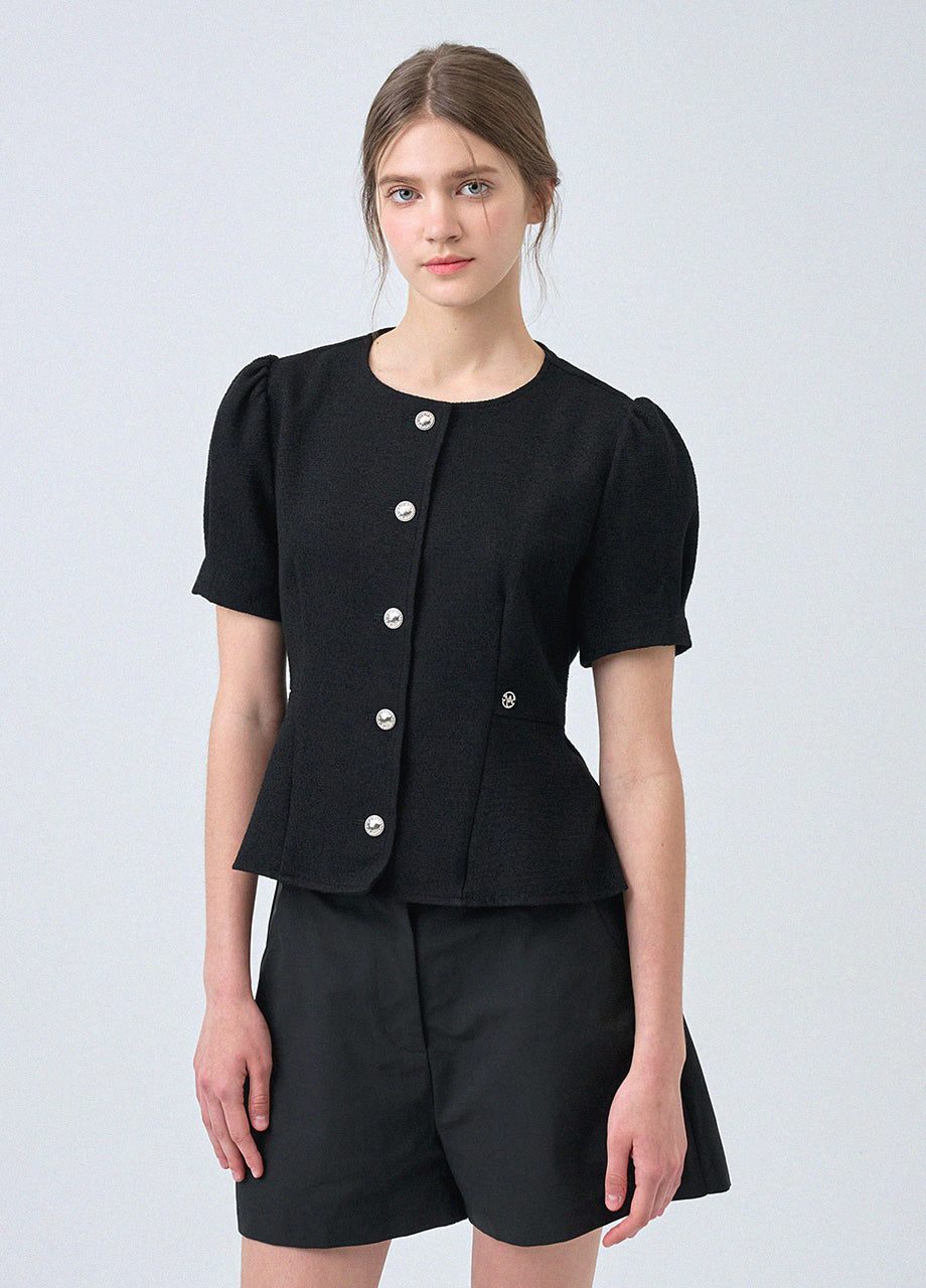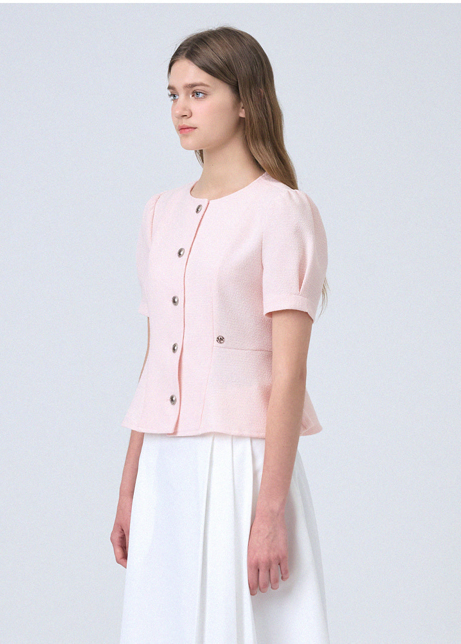フェミニンな感性のツイードブラウスです。ラウンドネックにペプラムデザインでウエストを引き締め、女性らしいスリムシルエットを演出します。*装飾が施された製品のため、クリーニング専門店でのお手入れをおすすめいたします。
