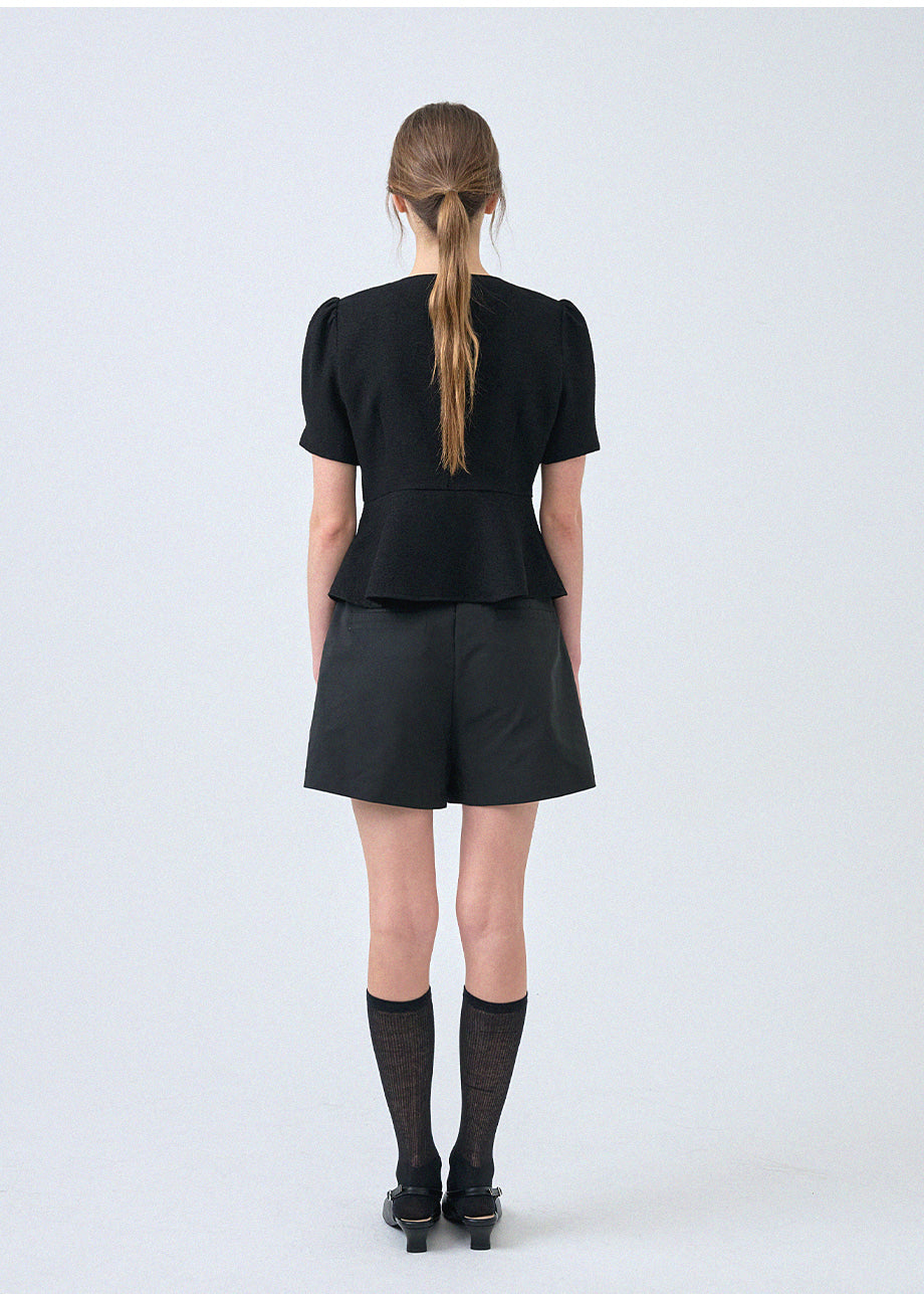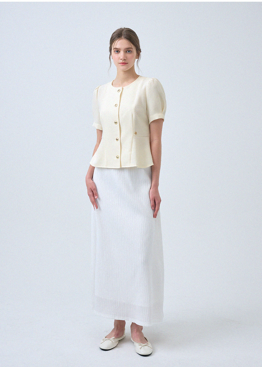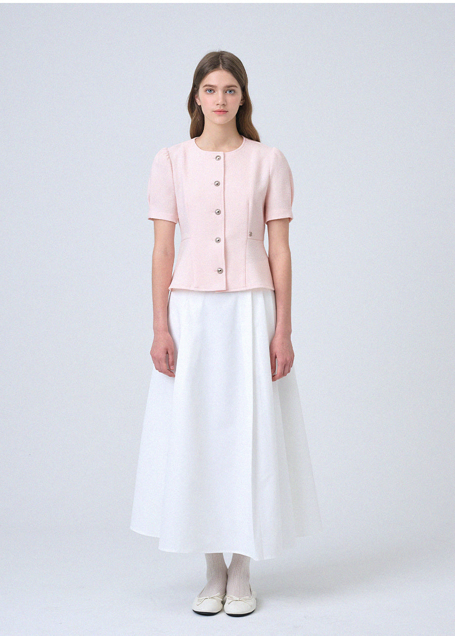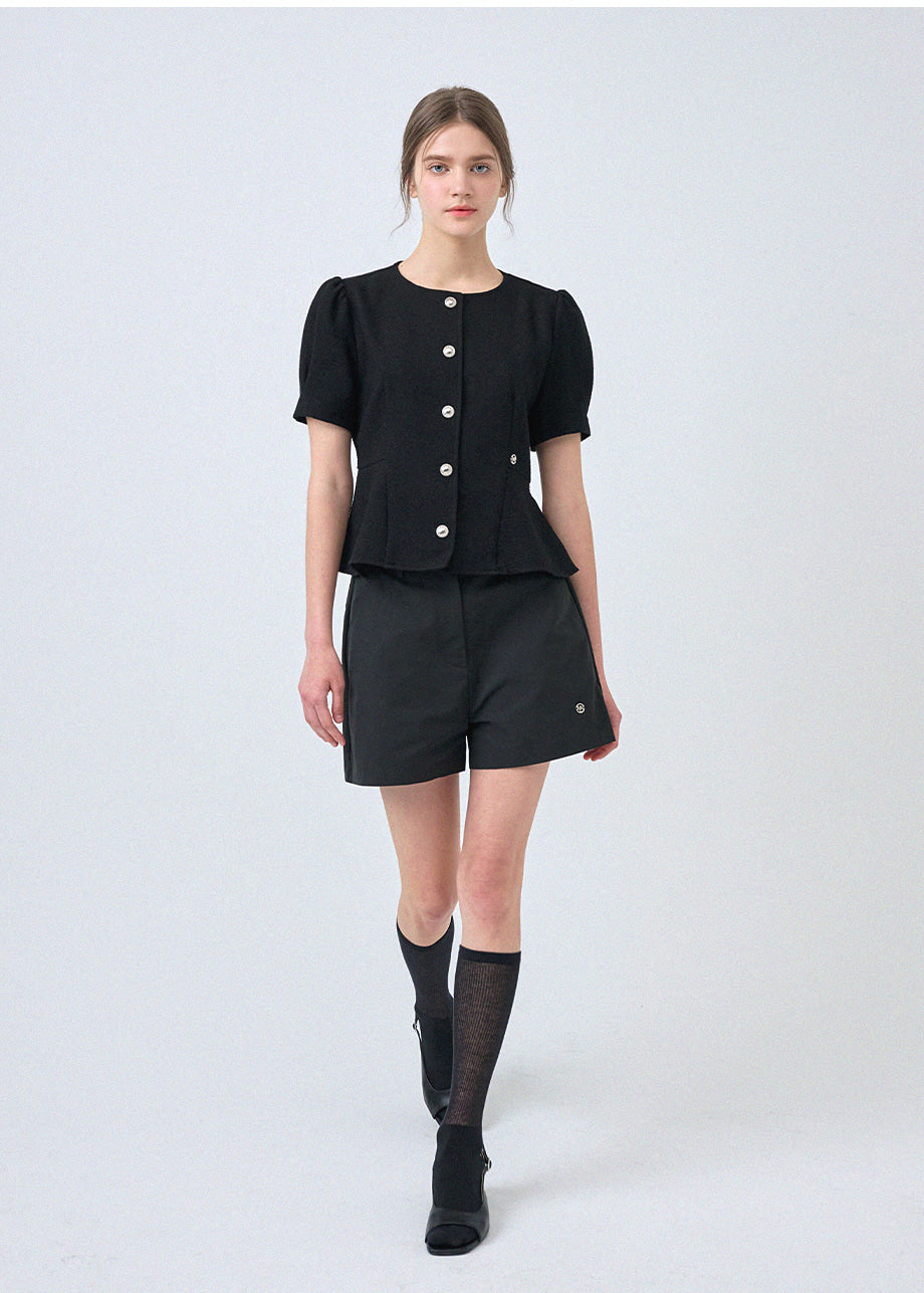 フェミニンな感性のツイードブラウスです。ラウンドネックにペプラムデザインでウエストを引き締め、女性らしいスリムシルエットを演出します。*装飾が施された製品のため、クリーニング専門店でのお手入れをおすすめいたします。
