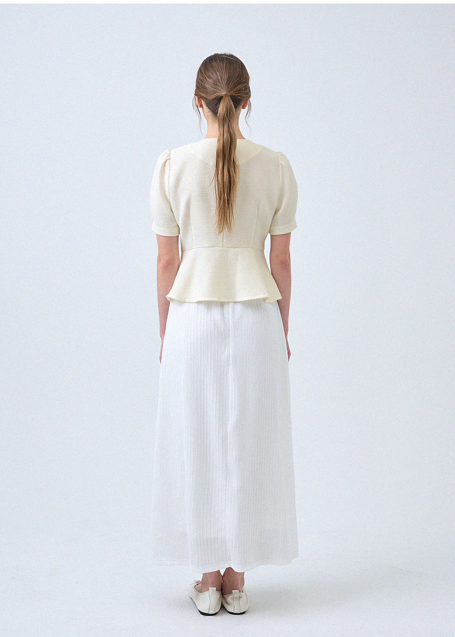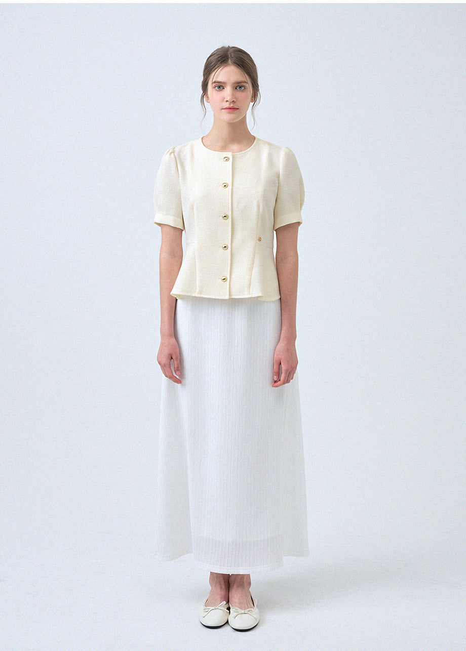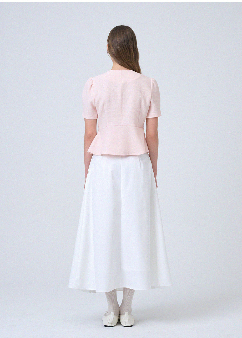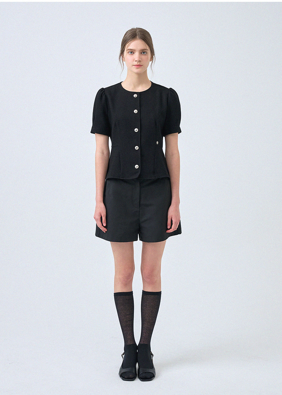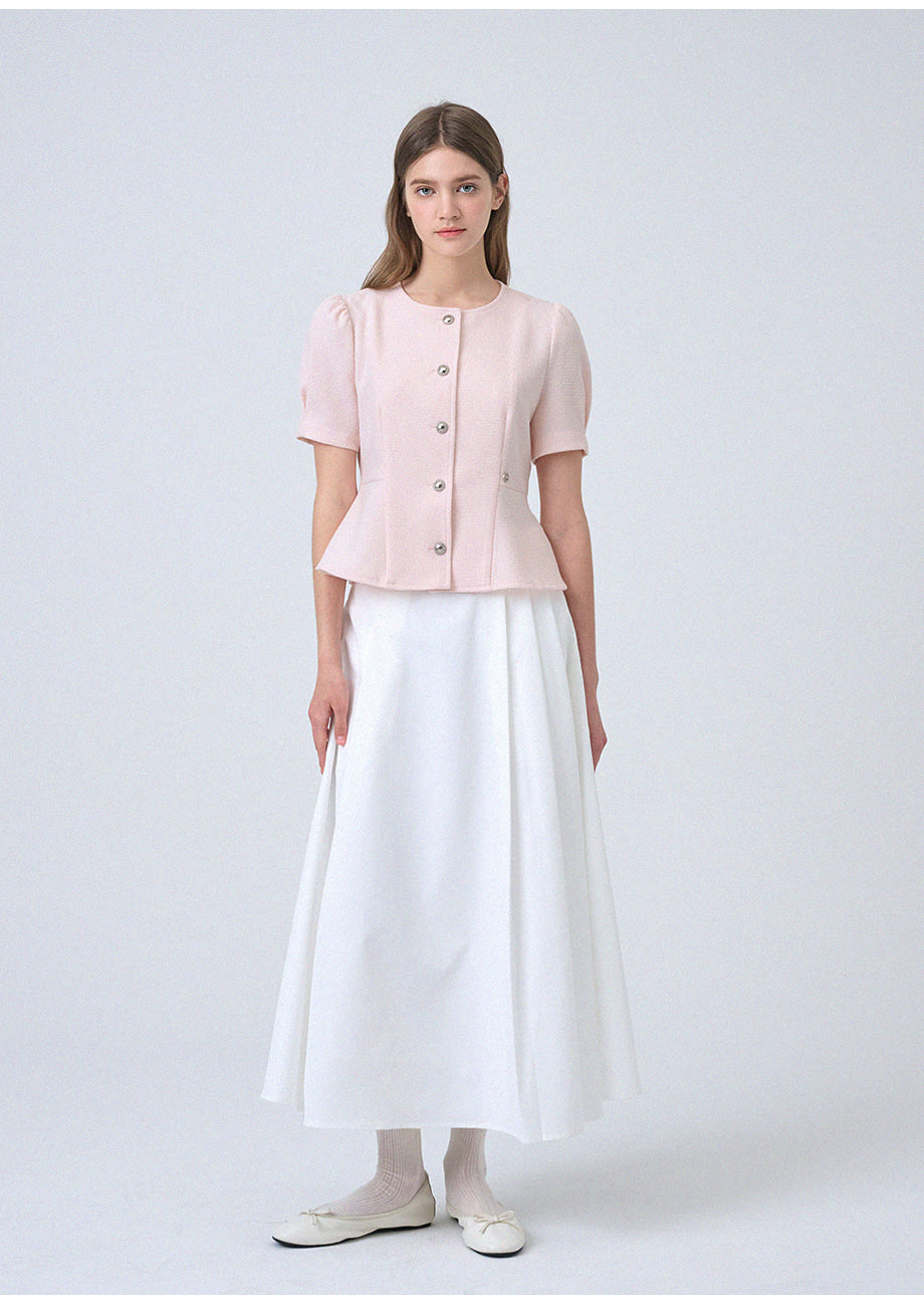 フェミニンな感性のツイードブラウスです。ラウンドネックにペプラムデザインでウエストを引き締め、女性らしいスリムシルエットを演出します。*装飾が施された製品のため、クリーニング専門店でのお手入れをおすすめいたします。