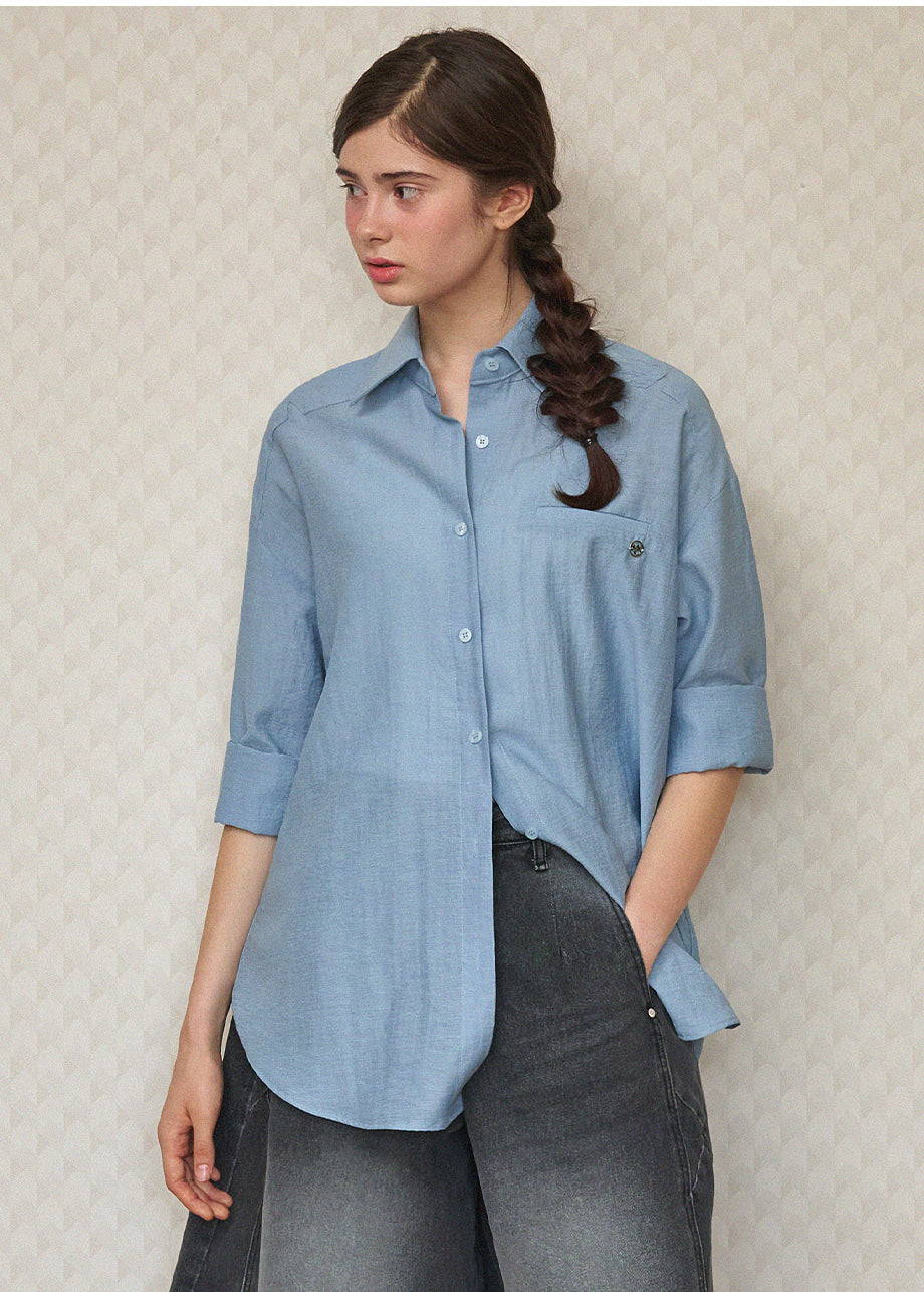 ヴィンテージでカジュアルなムードのシャツです。ヒップをカバーする丈感と全体的にワイドなフィットで、夏のアウターとしてもおすすめです。*装飾が施された製品のため、クリーニング専門店でのお手入れをおすすめいたします。