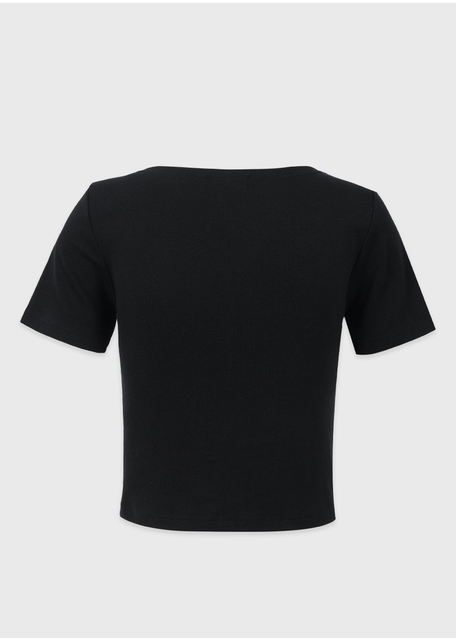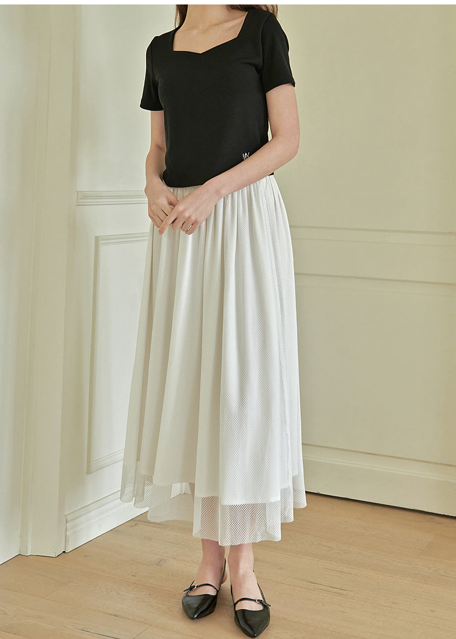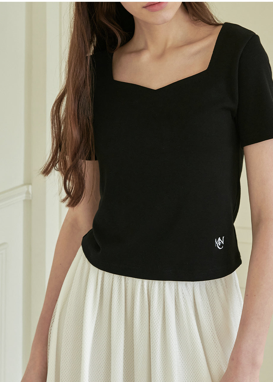柔らかな素材感で肌への刺激を気にせず着用できる一枚です。スクエアネックにハートラインのポイントで、スリムでフェミニンなムードを演出します。