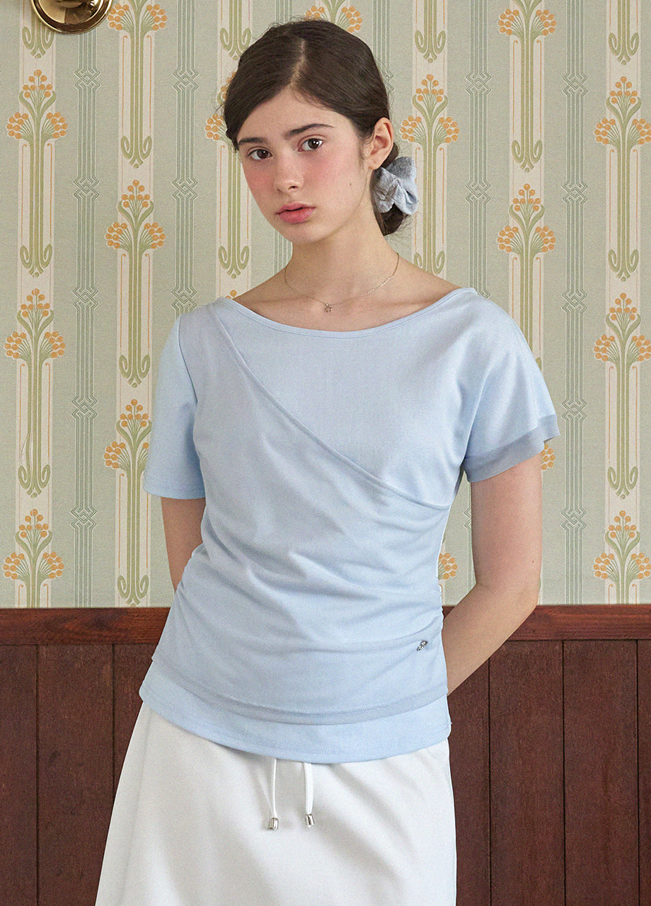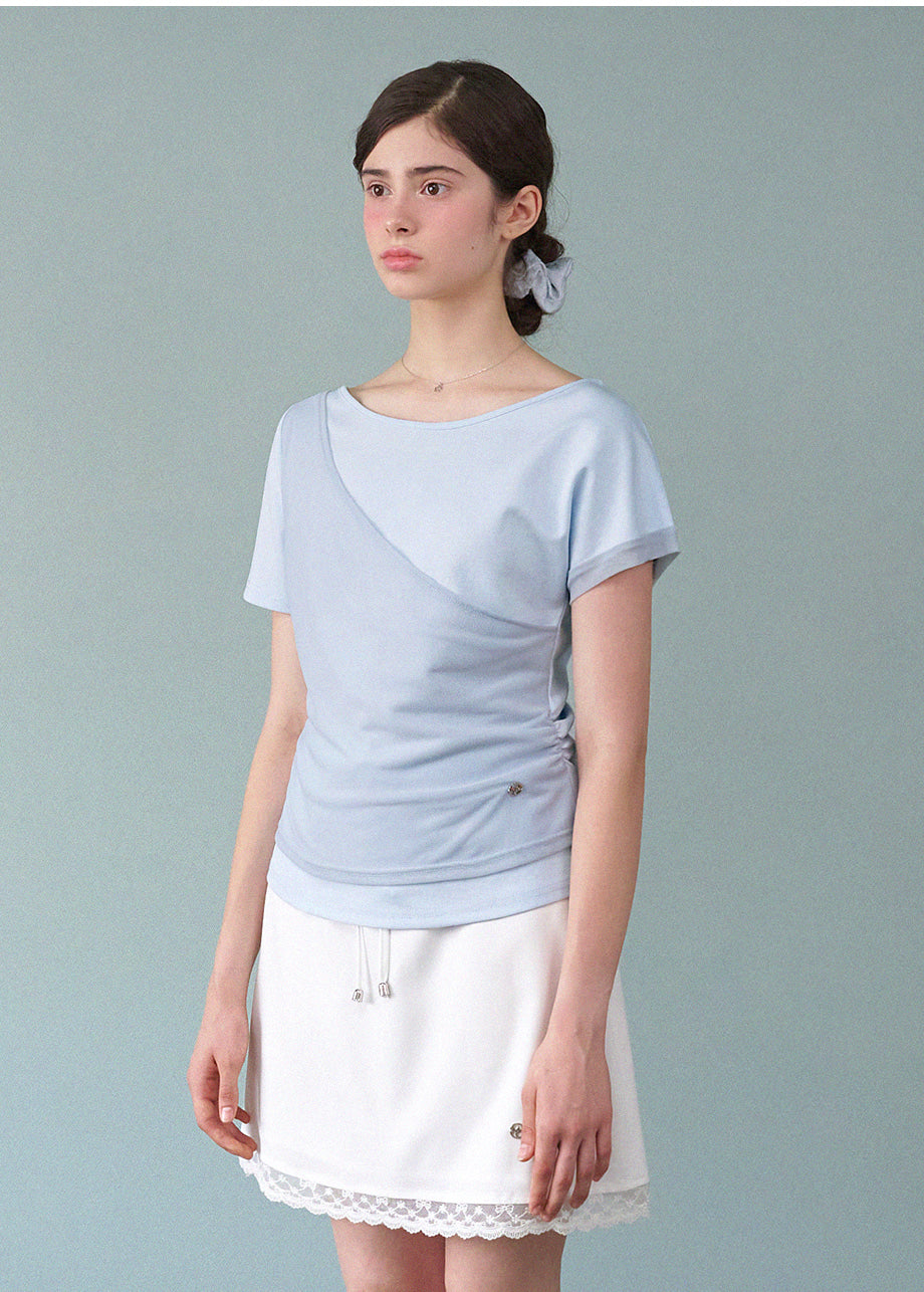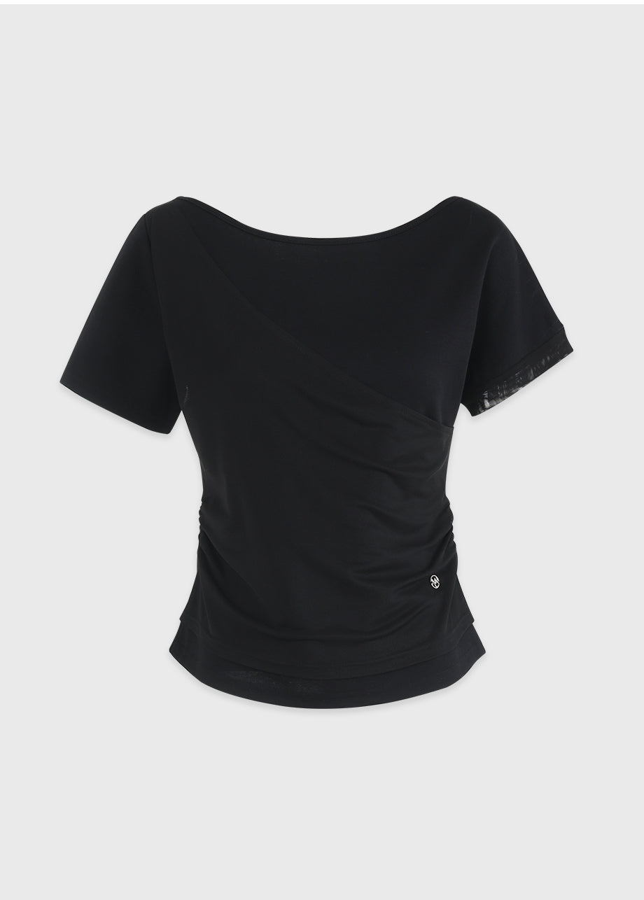 フェミニンでユニークな感性のあるTシャツです。ワンショルダーデザインにレイヤードディテールが施され、ユニークなムードを演出します。ウエストにシャーリングを加え、よりスリムなシルエットが完成します。*装飾が施された製品のため、クリーニング専門店でのお手入れをおすすめいたします。