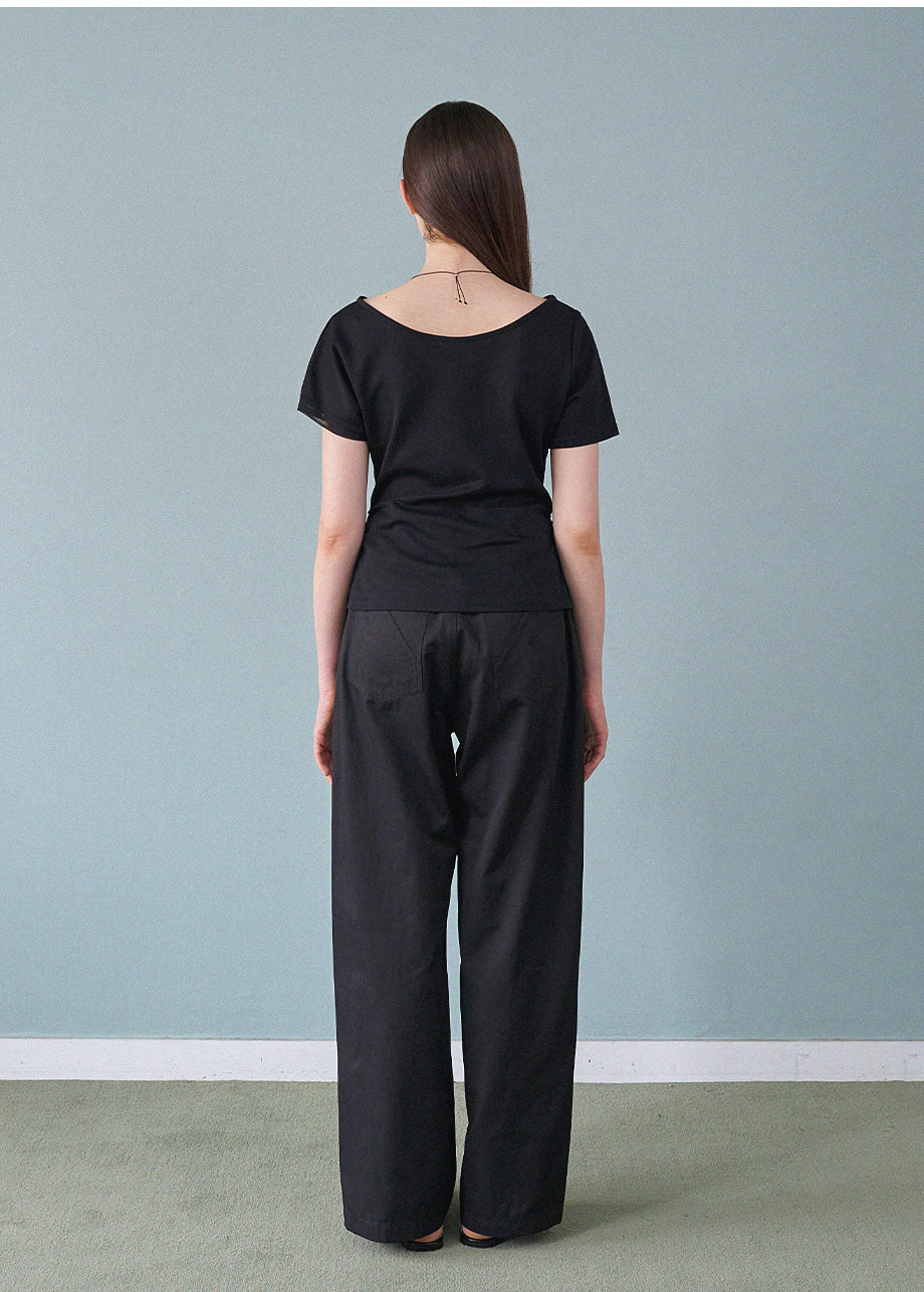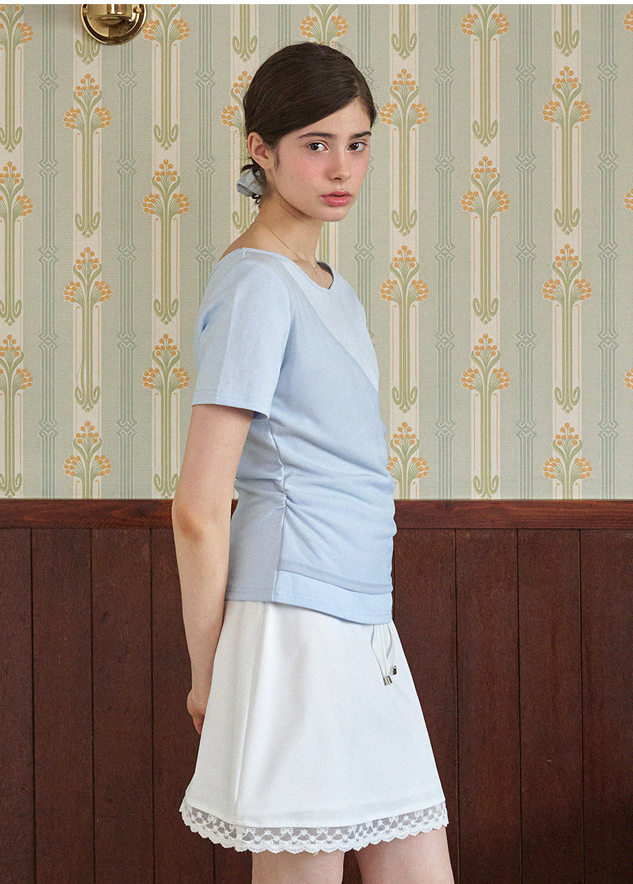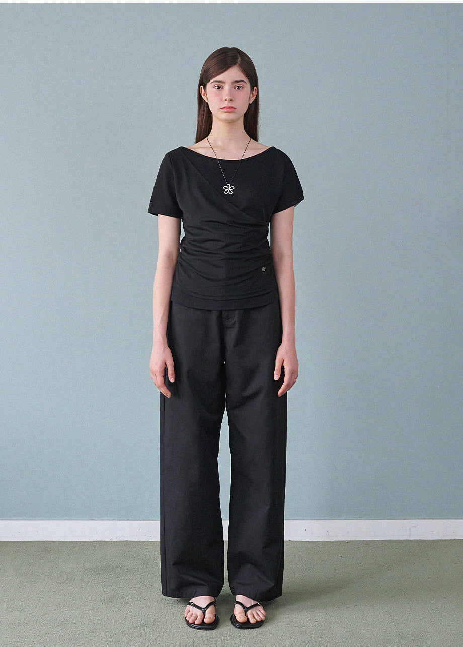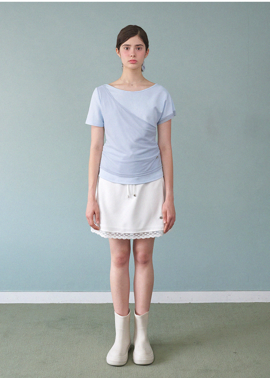 フェミニンでユニークな感性のあるTシャツです。ワンショルダーデザインにレイヤードディテールが施され、ユニークなムードを演出します。ウエストにシャーリングを加え、よりスリムなシルエットが完成します。*装飾が施された製品のため、クリーニング専門店でのお手入れをおすすめいたします。