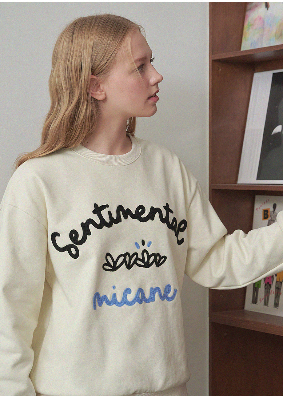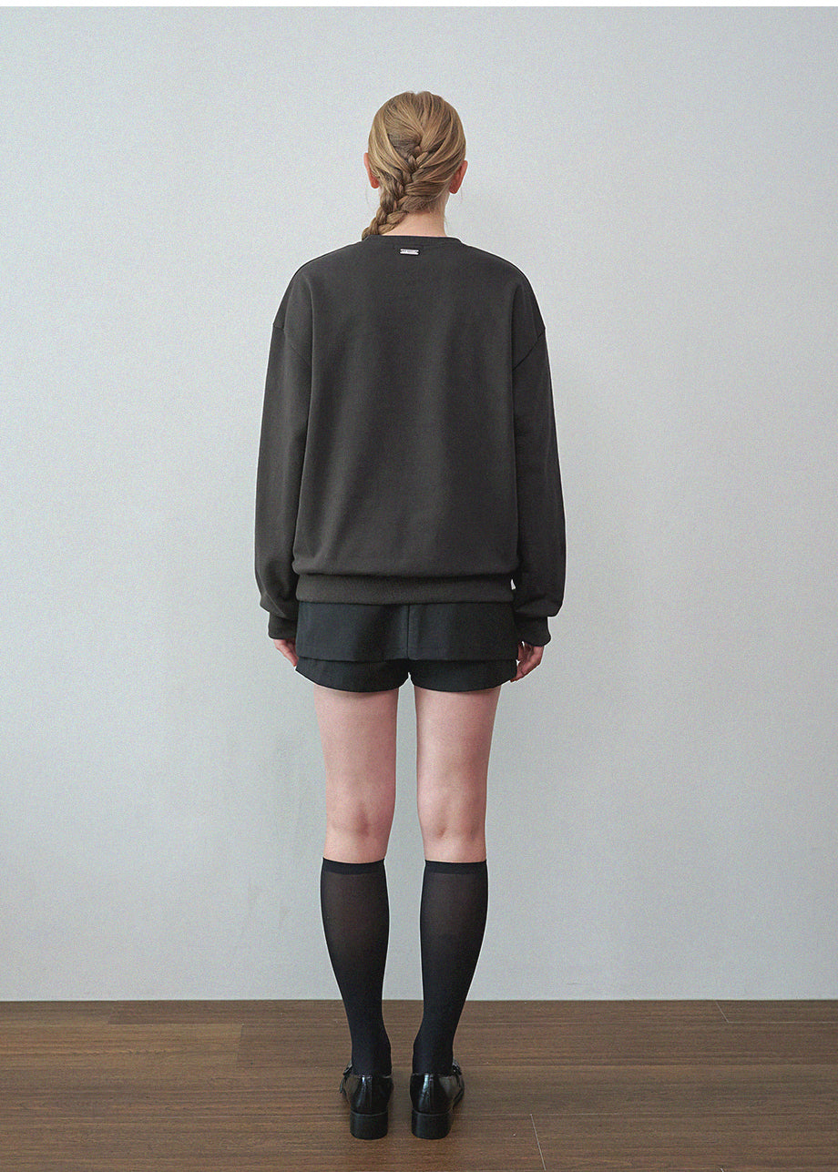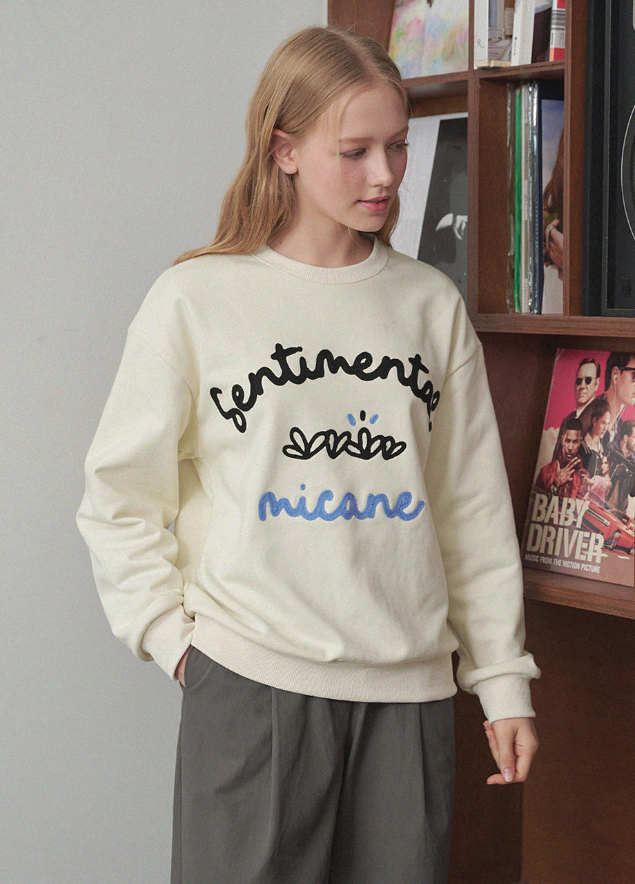 カジュアルベーシックムードのトレーナーです。耐久性とテンション感に優れた裏起毛丸編み生地で刺激を与えずに快適で暖かい着心地が特徴。程よい起毛素材で秋と冬に着用できます。ラウンドネックデザインにルーズなフィット感で気軽に着やすいアイテム。ハイクオリティの刺繍と配色でポイントを与え、秋は一枚でさらっと着られて、冬はインナーとしても重宝するので、おすすめします。ネックラインの後ろ中央にはペンダント風の装飾を加え、上品に仕上げました。*装飾が施された製品のため、クリーニング専門店でのお手入れをおすすめいたします。やむを得ず洗濯機をご使用の際は、ネットに入れて冷水で洗濯することをおすすめいたします。