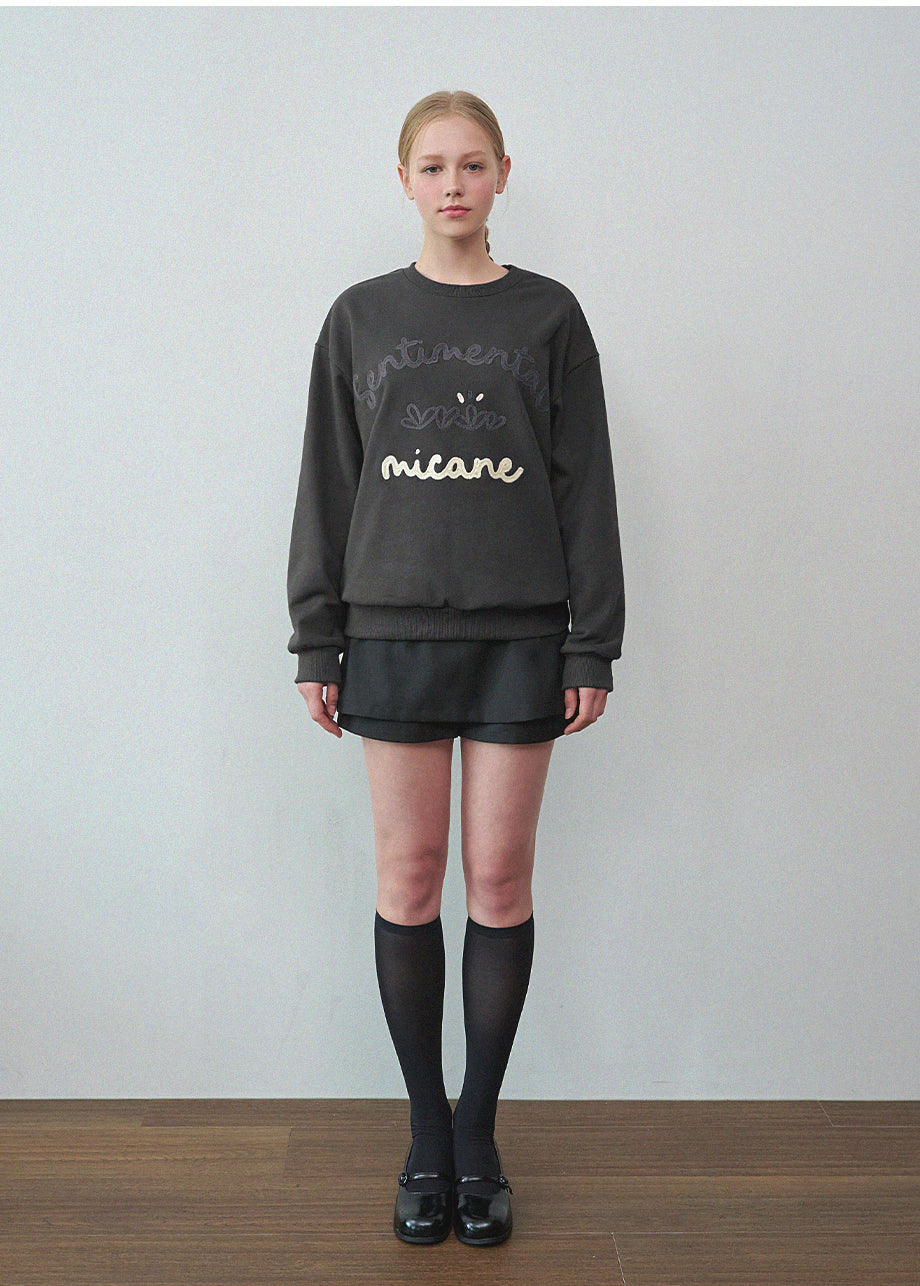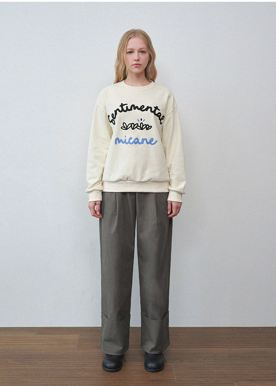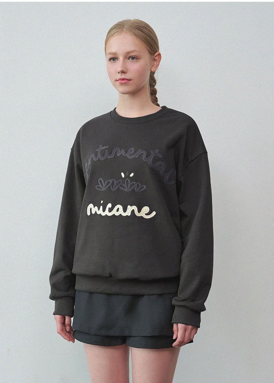 カジュアルベーシックムードのトレーナーです。耐久性とテンション感に優れた裏起毛丸編み生地で刺激を与えずに快適で暖かい着心地が特徴。程よい起毛素材で秋と冬に着用できます。ラウンドネックデザインにルーズなフィット感で気軽に着やすいアイテム。ハイクオリティの刺繍と配色でポイントを与え、秋は一枚でさらっと着られて、冬はインナーとしても重宝するので、おすすめします。ネックラインの後ろ中央にはペンダント風の装飾を加え、上品に仕上げました。*装飾が施された製品のため、クリーニング専門店でのお手入れをおすすめいたします。やむを得ず洗濯機をご使用の際は、ネットに入れて冷水で洗濯することをおすすめいたします。