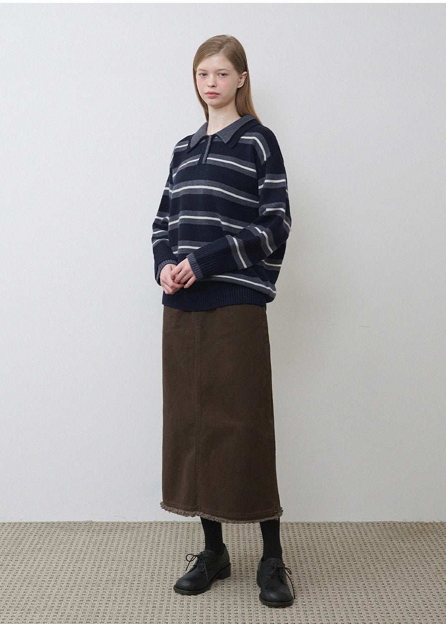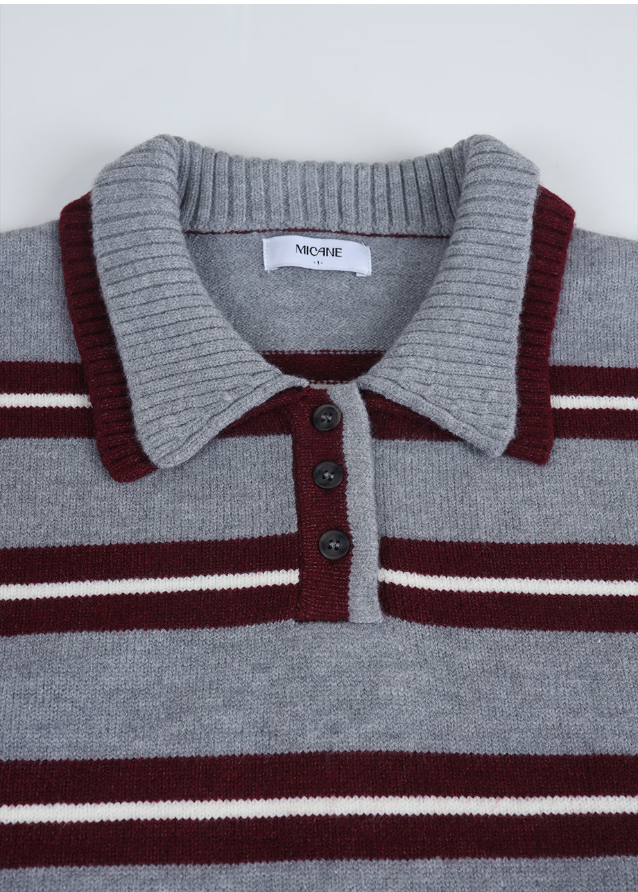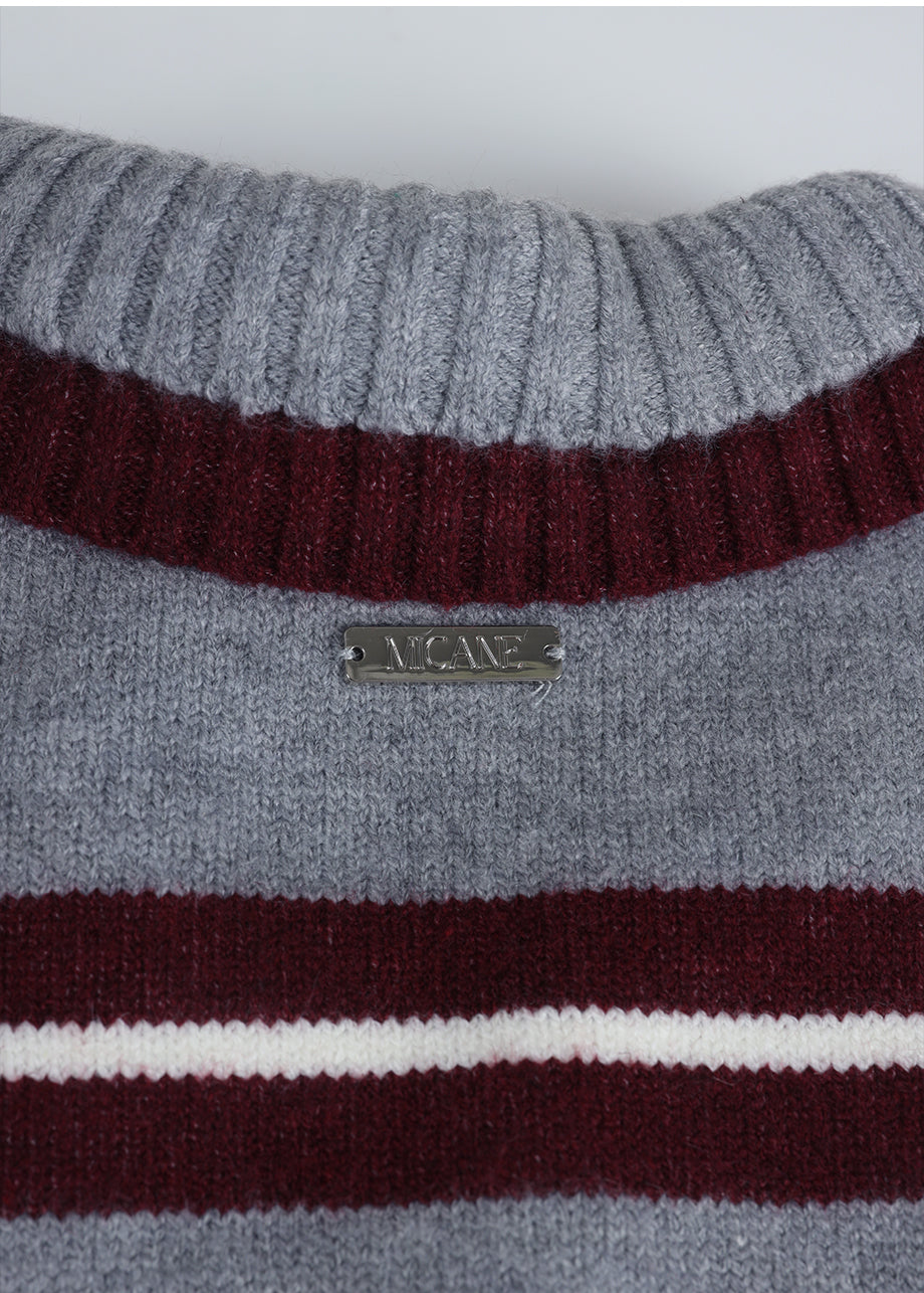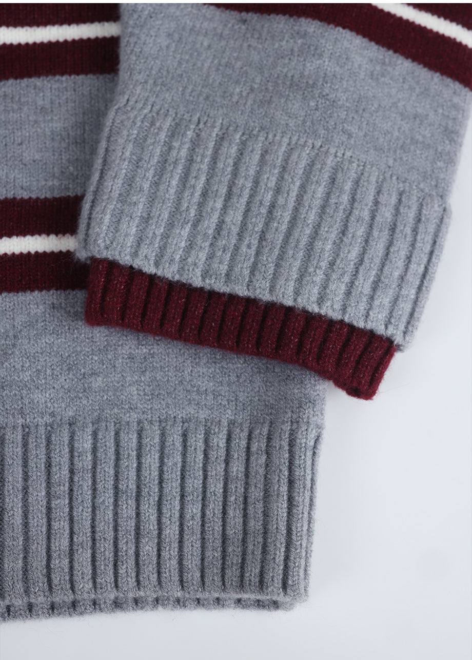 ビンテージカジュアルムードのストライプニットです。柔らかく密度の高いしっかりとした糸を使用しており、刺激のない暖かく快適な着心地が魅力です。ほどよくルーズなフィットでさまざまなアイテムと気軽にコーディネートでき、襟元と袖に配色ディテールを加えてレイヤードしたようなヴィンテージ感のあるスタイルを楽しめます。後ろネック中央にペンダント装飾を施し、よりクオリティの高い仕上がりにしました.*装飾や特殊な素材を使用した製品のため、クリーニング専門店でのお手入れをおすすめいたします。