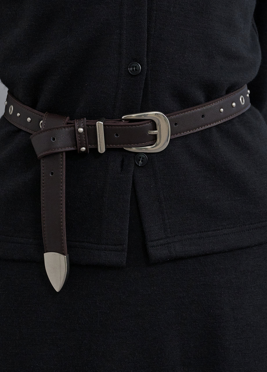 ヴィンテージクラシックなムードのベルトです。耐久性と柔軟性に優れたフェイクレザー素材を使用し、高級感のある佇まいと型崩れしにくい安定感のある着用感を実現しました。程よい幅感とサイズごとに最適化された長さ展開で、幅広いスタイリングに対応します。どんなコーディネートにも取り入れやすいカラー構成で、シーズンムードをさりげなく演出します。全体をシルバーパーツで仕上げ、クオリティ感を高めました。*装飾および特殊なデザイン・素材を使用した商品のため、専門店でのクリーニングをおすすめいたします。