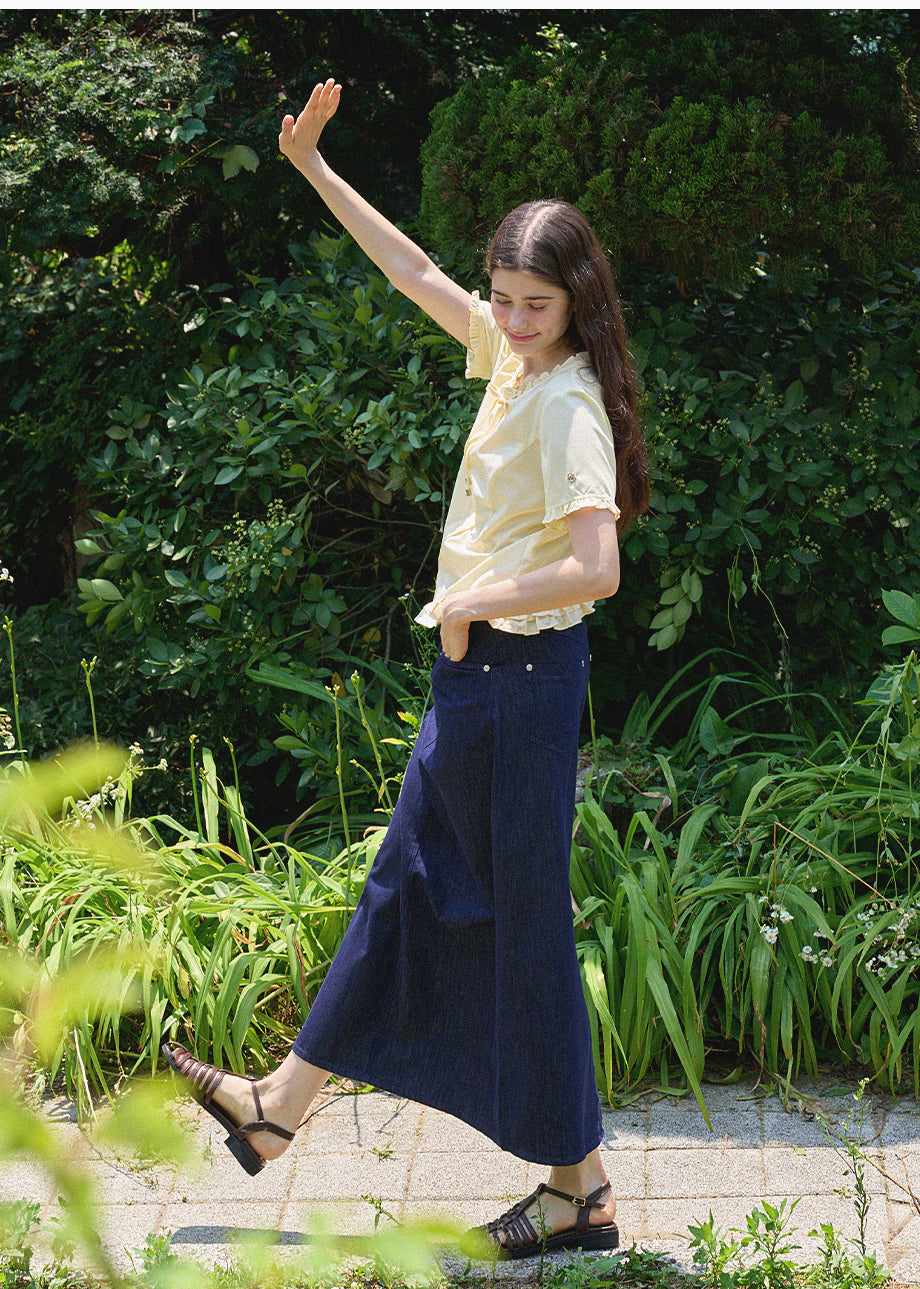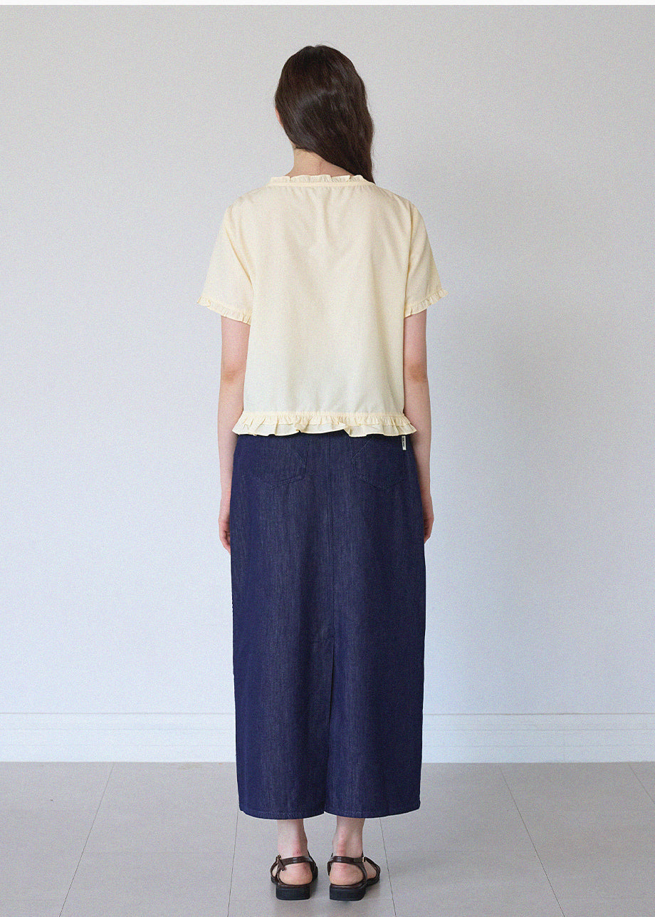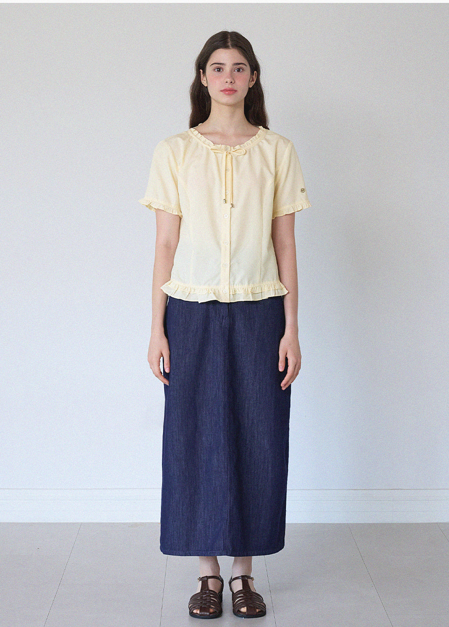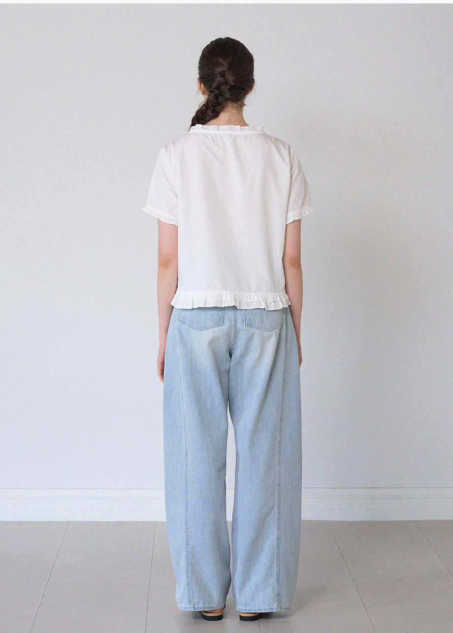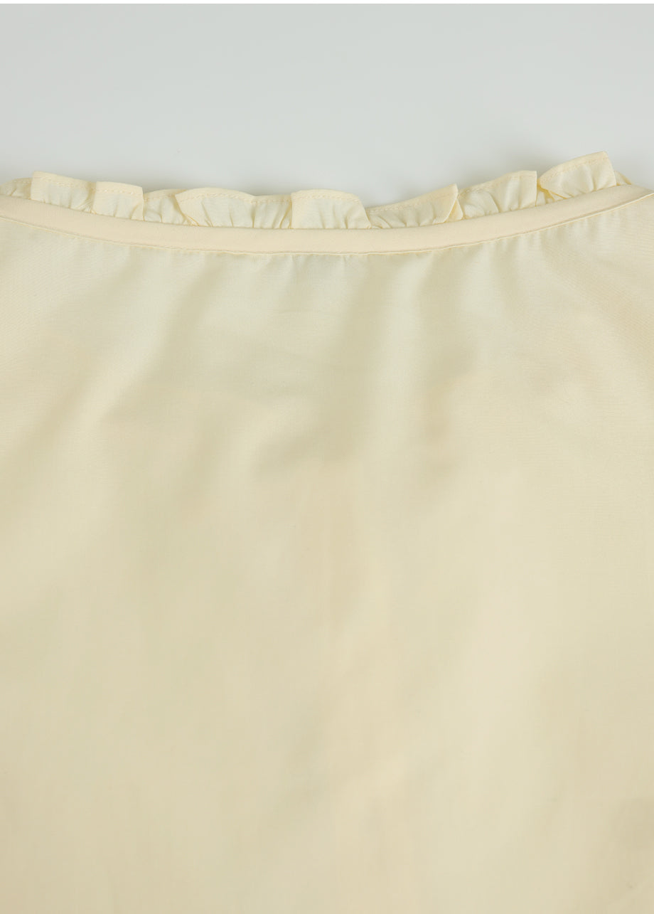 This lovely blouse features a loose silhouette and a semi-short length for a casual look. The ruffle detailing throughout creates a vintage and lovely atmosphere. *As this item features decorative details, we recommend having it professionally cleaned.