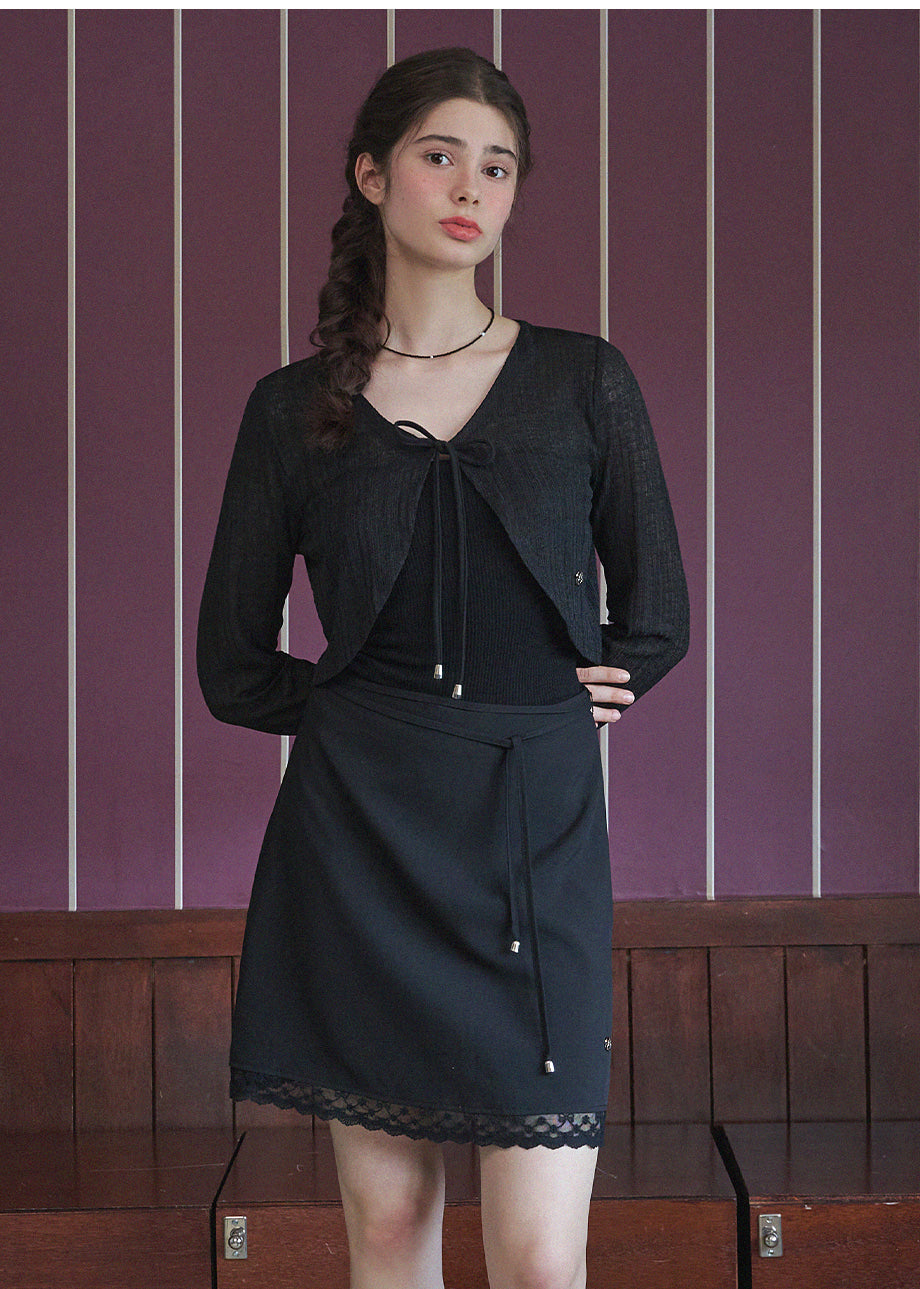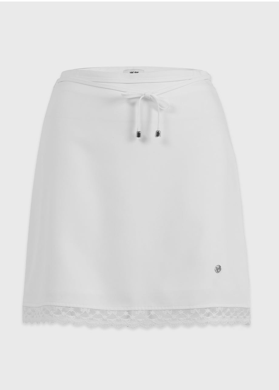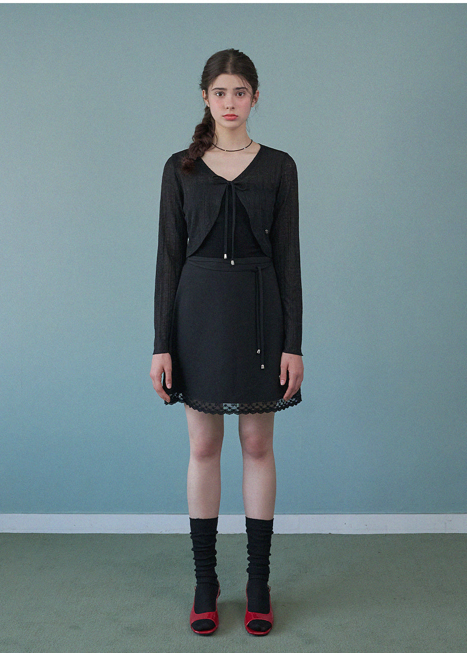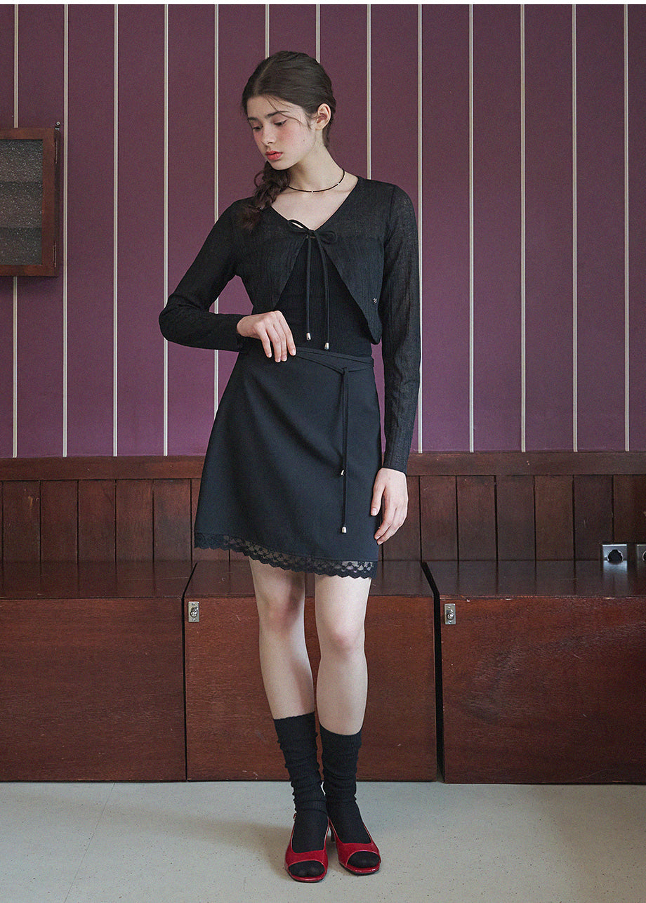 A mini skirt with a lovely sensibility. The lace at the hem is the focal point of the whole piece, adding a lovely mood. The slightly shorter length and semi-A-line silhouette make it easy to wear. *As this is a product with decorations, we recommend cleaning at a professional dry cleaning shop.