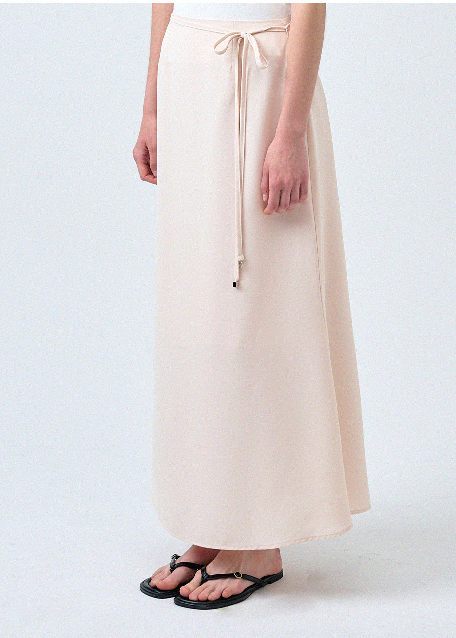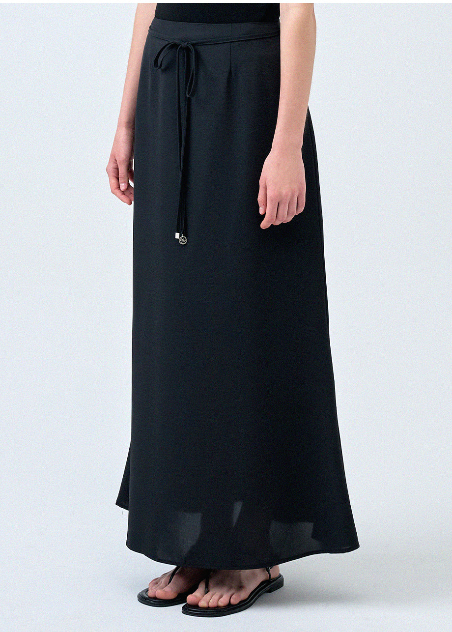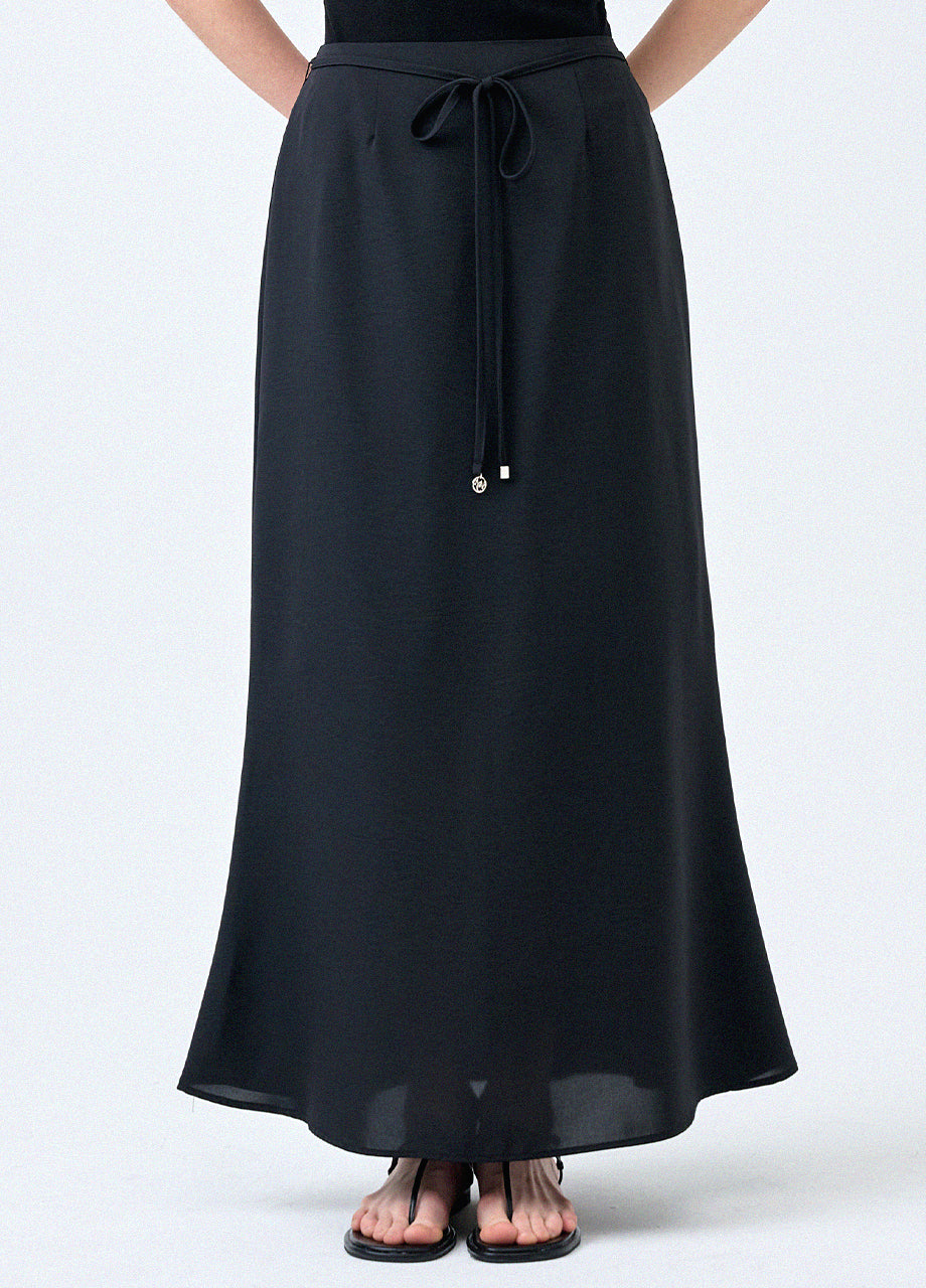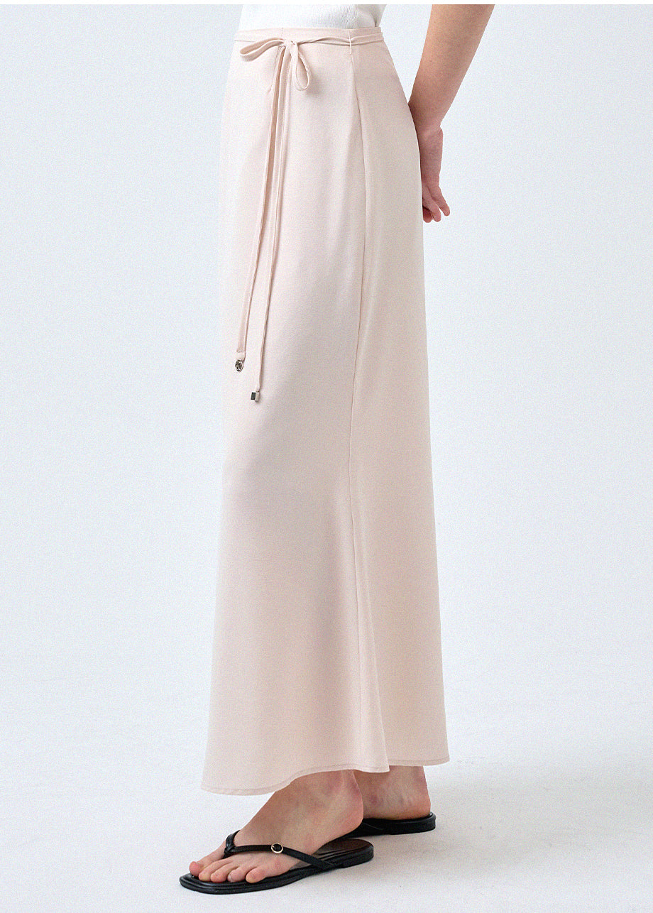 A long skirt with a classic and feminine mood. The semi-mermaid fit makes it easy to wear while covering your body shape. It comes with a waist strap, so you can add a touch of style to your outfit by tying it in the right way. *As this product is decorated, we recommend cleaning at a professional dry cleaners.