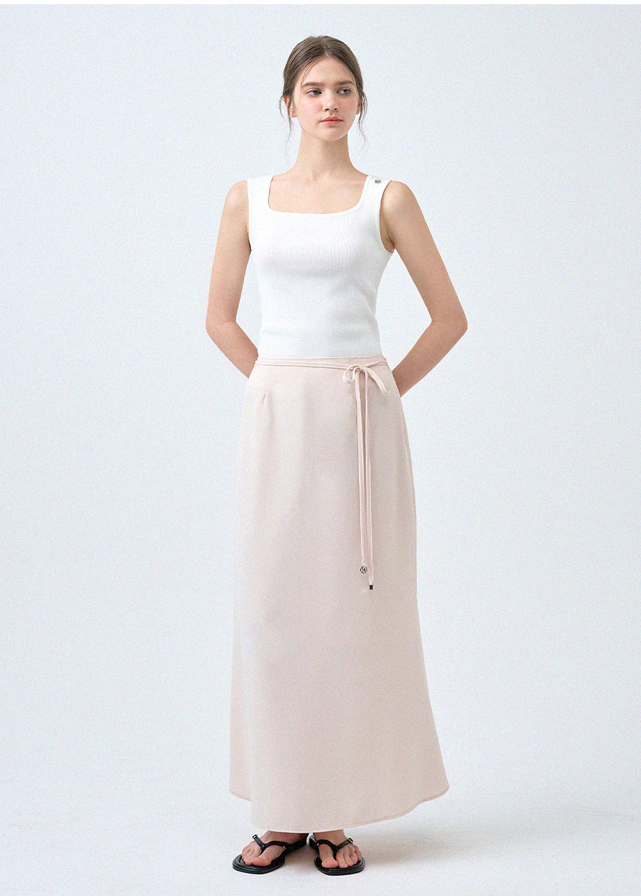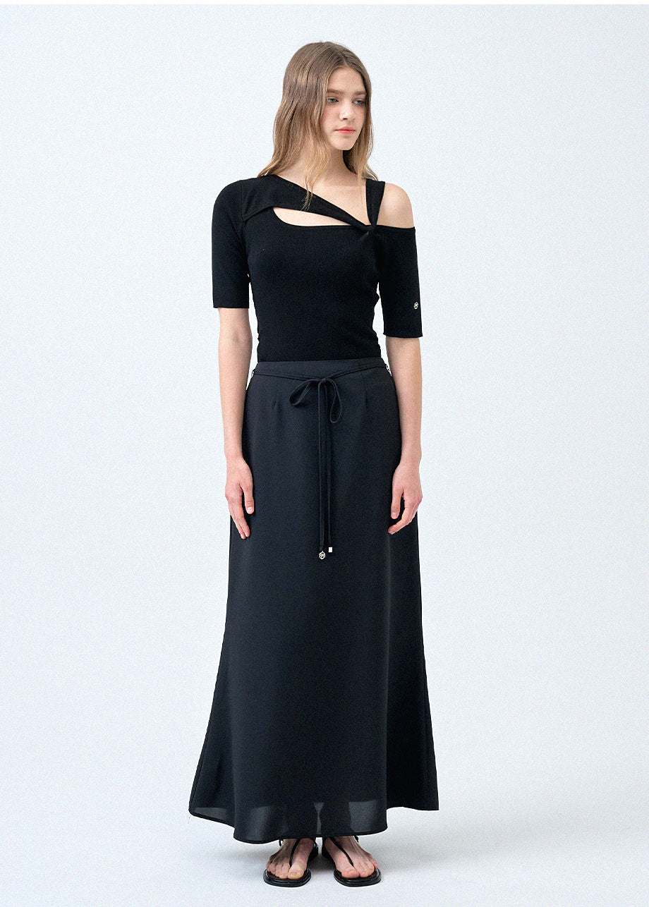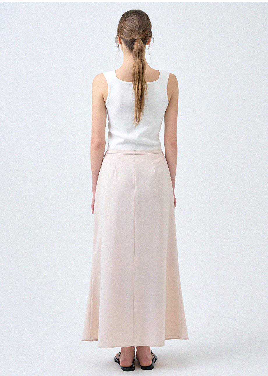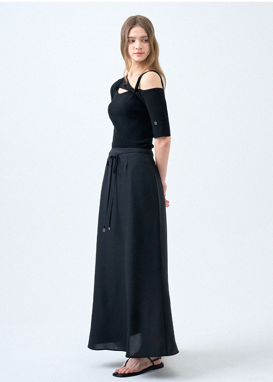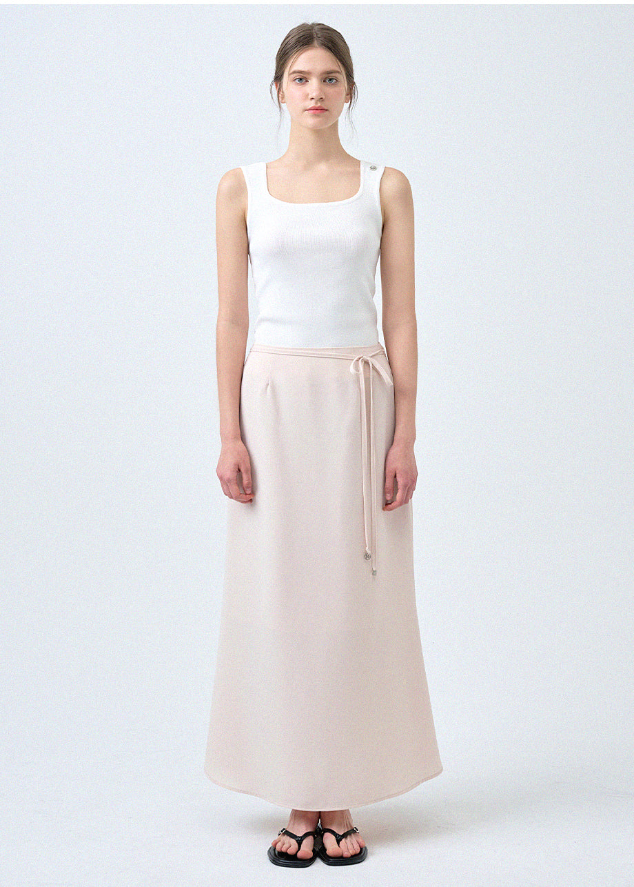 A long skirt with a classic and feminine mood. The semi-mermaid fit makes it easy to wear while covering your body shape. It comes with a waist strap, so you can add a touch of style to your outfit by tying it in the right way. *As this product is decorated, we recommend cleaning at a professional dry cleaners.