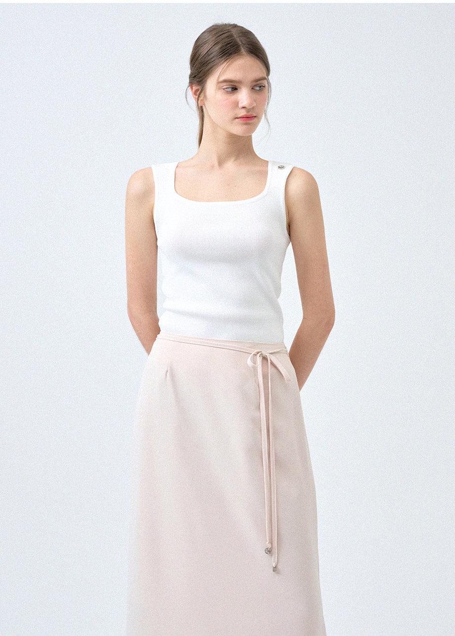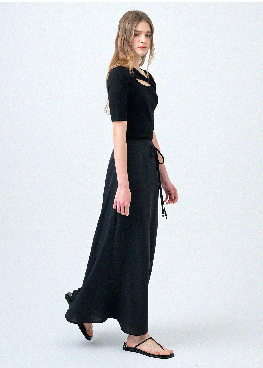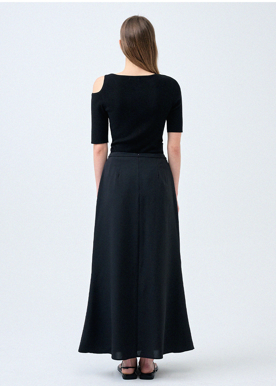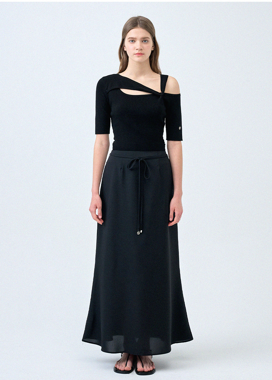 A long skirt with a classic and feminine mood. The semi-mermaid fit makes it easy to wear while covering your body shape. It comes with a waist strap, so you can add a touch of style to your outfit by tying it in the right way. *As this product is decorated, we recommend cleaning at a professional dry cleaners.