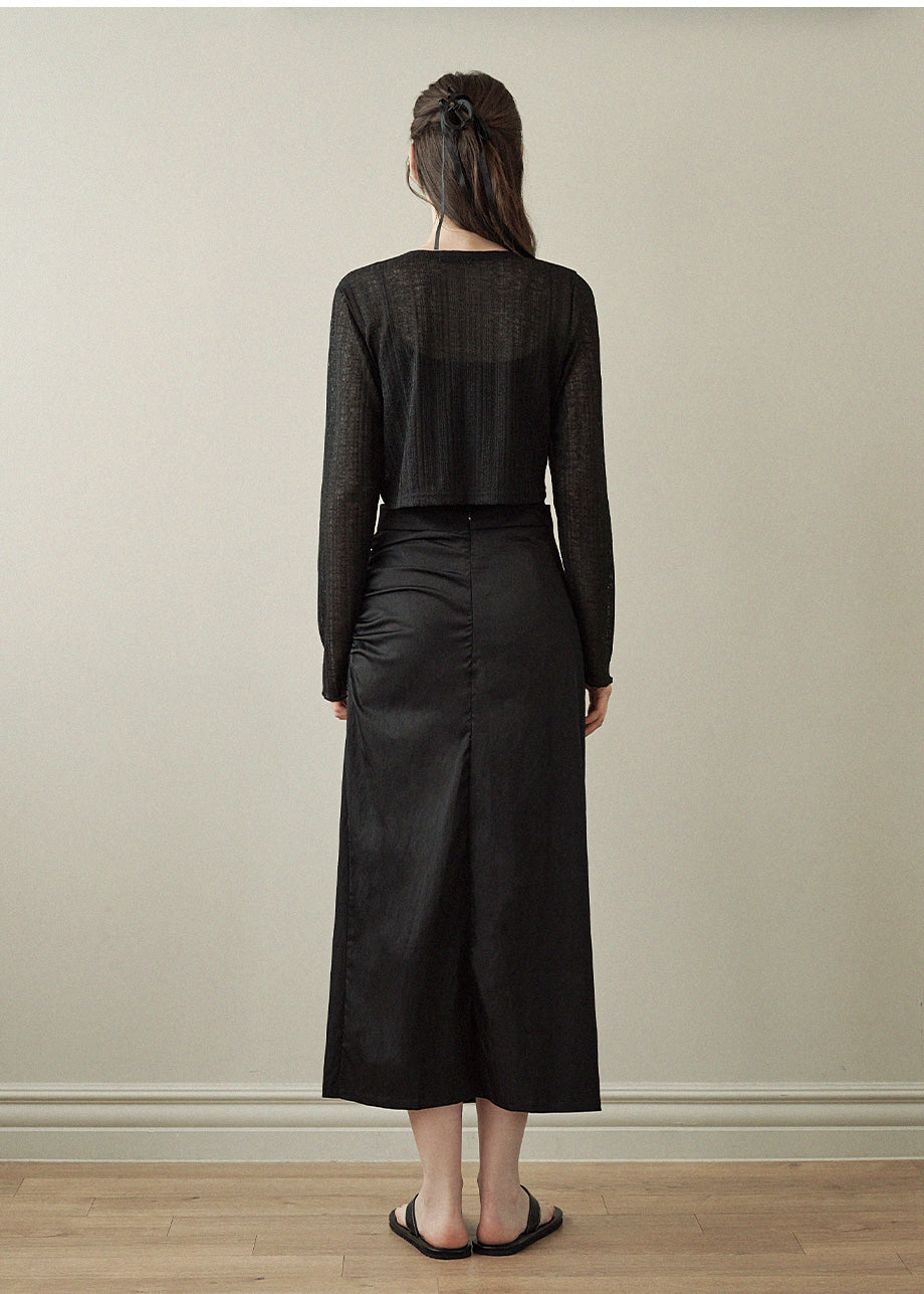A skirt with a feminine and classic feel. Made from lightweight material with excellent durability, the soft luster and texture create a moody look.