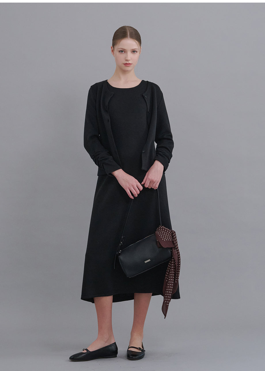 クラシックなムードで着用できる、カーディガンとビスチェドレスのセットアップです。柔らかさと程よいハリ感、適度なテンションを兼ね備えた素材を使用し、快適にシルエットを整えてくれる着心地が魅力です。初春に取り入れやすい素材感で、季節の変わり目に活躍するアイテムとしておすすめです。Aラインシルエットのビスチェドレスと、袖口にシャーリングディテールを施したカーディガンをセットにし、幅広いスタイリングを楽しめます。すっきりとしたシルエットを演出するため、縫製や始末まで丁寧に仕上げ、無駄のない上品で高級感のあるムードに仕上げました。ペンダントディテールを添え、全体のクオリティを高めて仕上げています。*装飾が施された製品のため、クリーニング専門店でのお手入れをおすすめいたします。やむを得ず洗濯機をご使用の際は、ネットに入れて冷水で洗濯することをおすすめいたします。