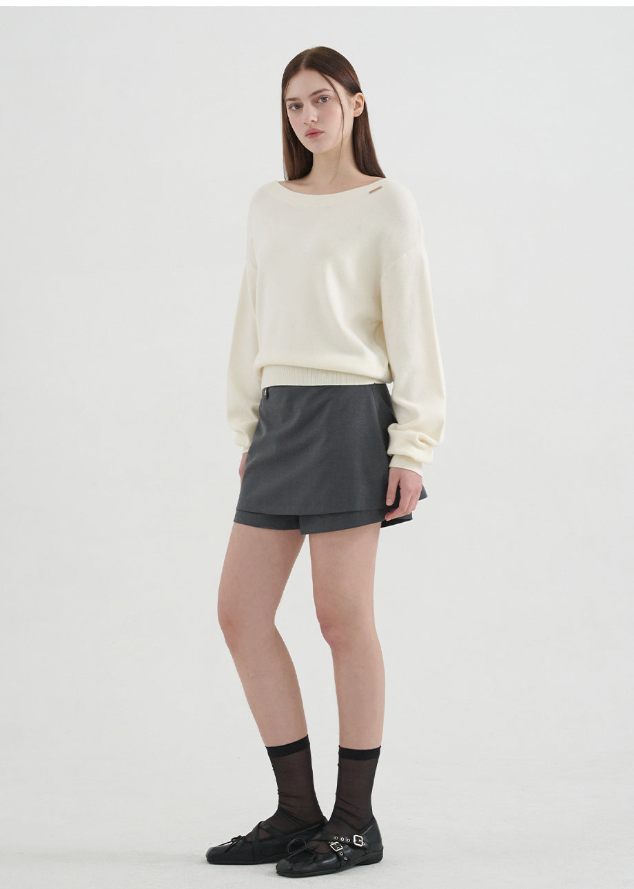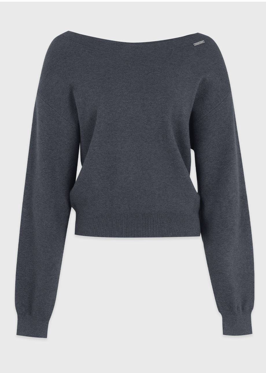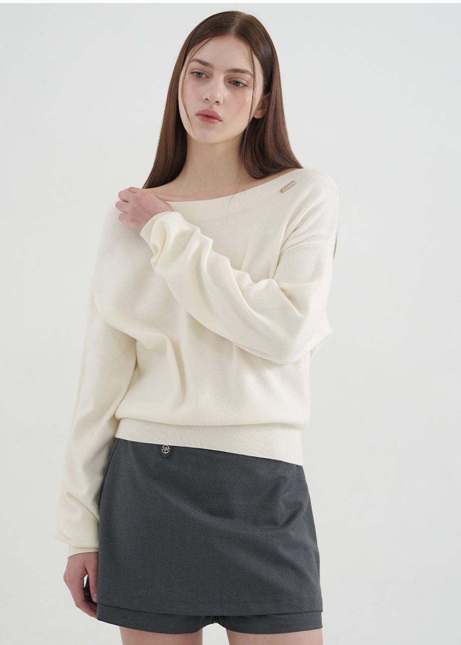 クラシックカジュアルなムードのニットです。耐久性に優れ、柔らかな肌触りの糸を使用し、刺激の少ない快適な着心地が魅力です。セミクロップド丈にボートネックデザインを取り入れ、華奢で女性らしい印象を演出します。しっかりと編み立てたリブがシルエットを美しく整え、着用時により洗練された雰囲気に仕上げてくれます。ミニマルなデザインで、デイリーに取り入れていただきやすい一枚です。ネックサイドにはペンダント装飾を加え、クオリティ感を高めました。*装飾が施された製品のため、クリーニング専門店でのお手入れをおすすめいたします。