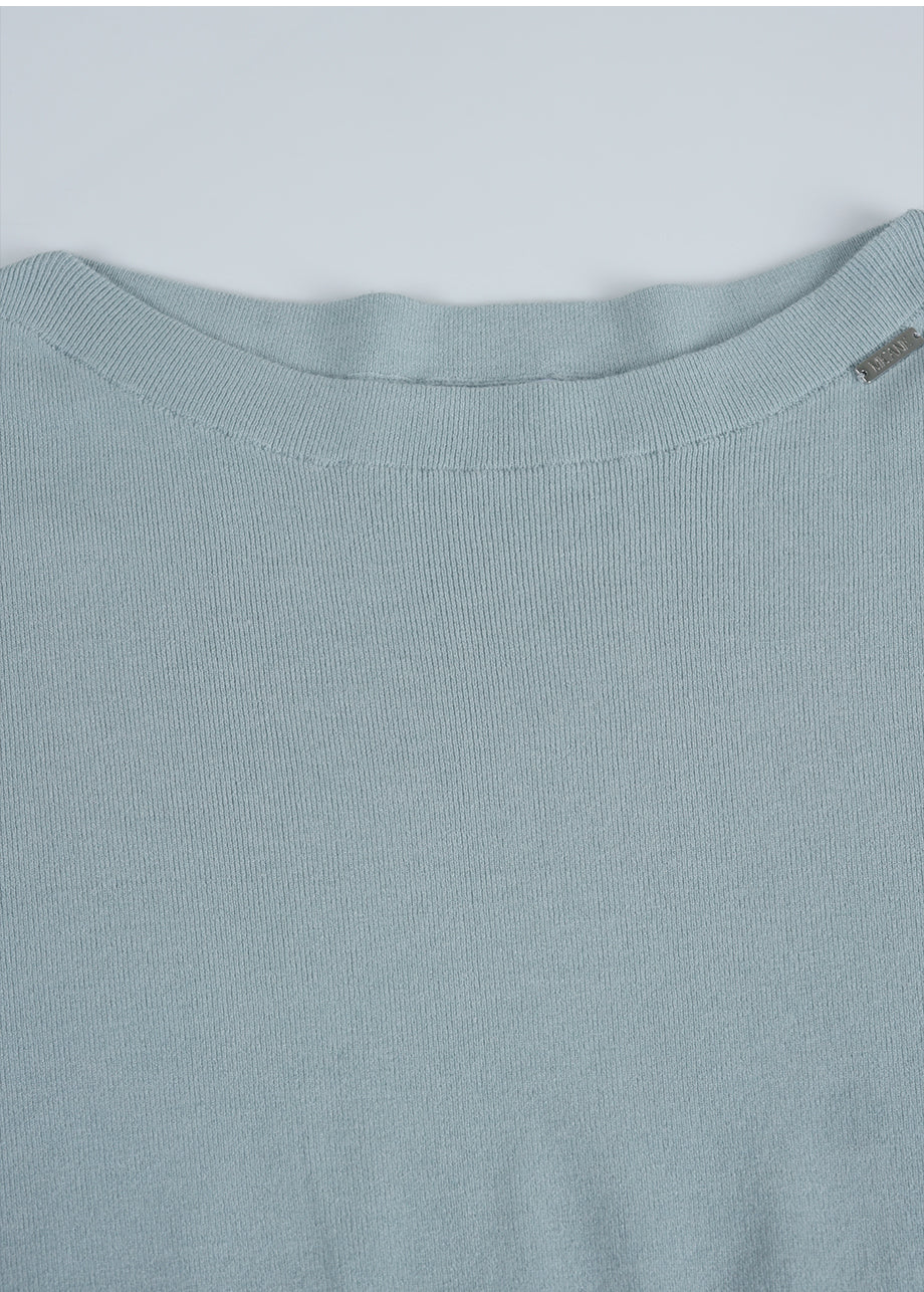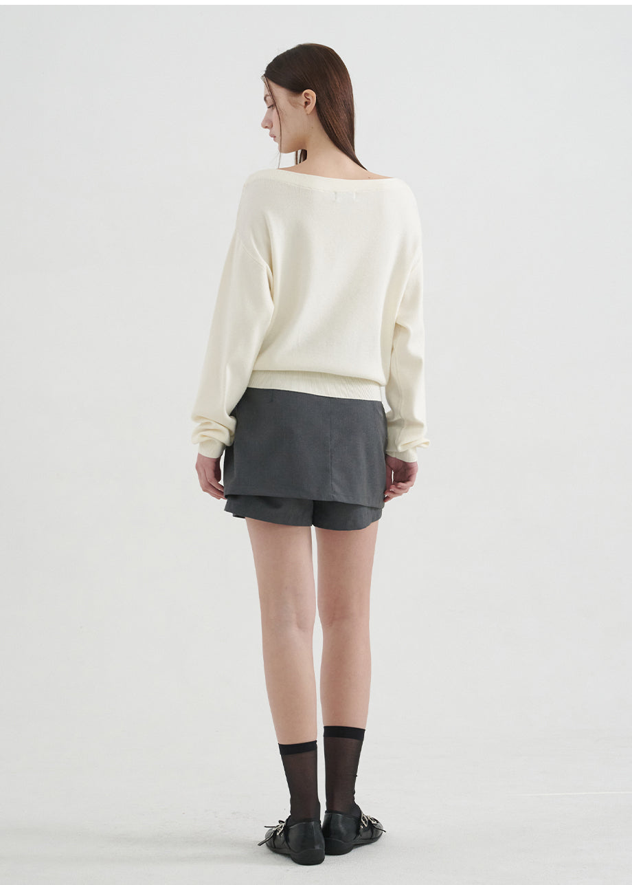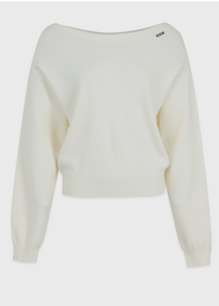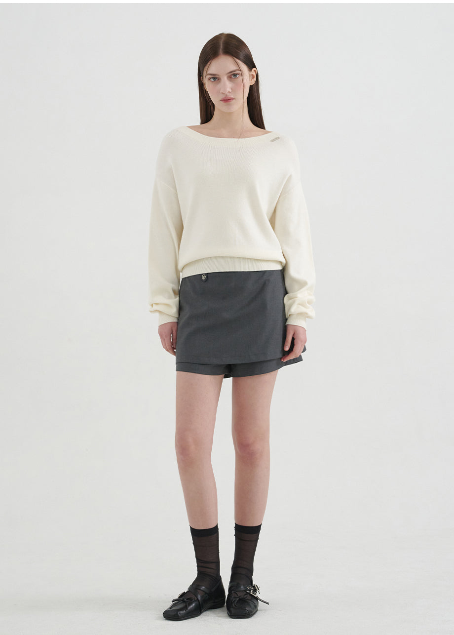 クラシックカジュアルなムードのニットです。耐久性に優れ、柔らかな肌触りの糸を使用し、刺激の少ない快適な着心地が魅力です。セミクロップド丈にボートネックデザインを取り入れ、華奢で女性らしい印象を演出します。しっかりと編み立てたリブがシルエットを美しく整え、着用時により洗練された雰囲気に仕上げてくれます。ミニマルなデザインで、デイリーに取り入れていただきやすい一枚です。ネックサイドにはペンダント装飾を加え、クオリティ感を高めました。*装飾が施された製品のため、クリーニング専門店でのお手入れをおすすめいたします。