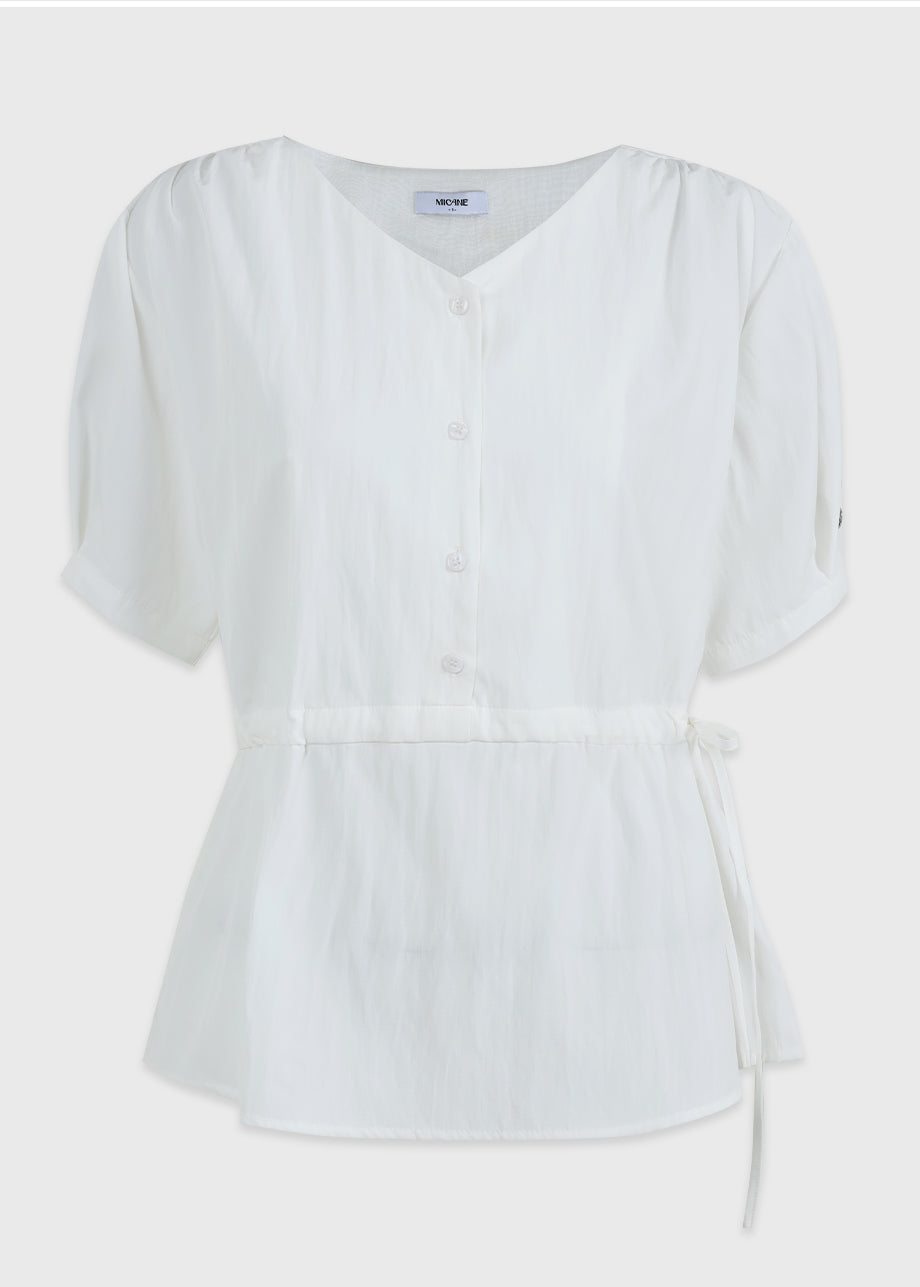 經典襯衫。 V領寬鬆剪裁,穿著舒適。建議搭配同系列褲子。 *由於本產品為裝飾商品,建議送至專業乾洗店清洗。