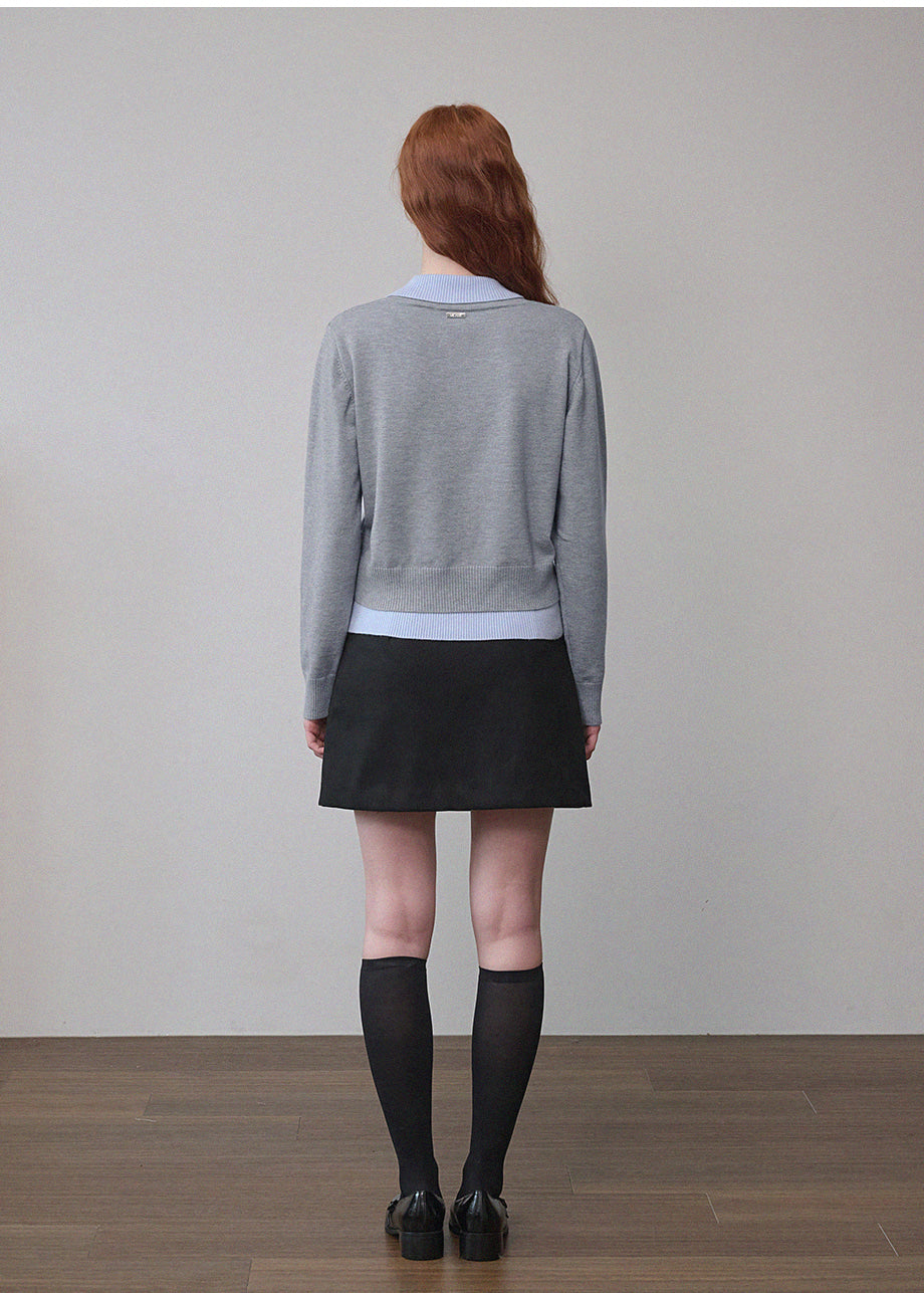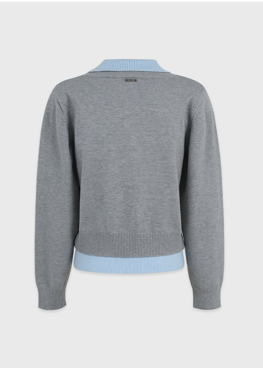 ヴィンテージ感あふれるレイヤードカラーニット。柔らかな肌触りと耐久性・保温性に優れた糸を使用し、肌に優しく暖かく快適な着心地が魅力です。セミ丈のルーズシルエットで気軽に着こなせます。配色ニットの上にカーディガンを重ねたデザインで、ワンステップでレイヤードスタイルを楽しめます。配色のアクセントが効いた、センスあるスタイリングが可能。フロントの開閉によって多彩な着こなしが叶います。後ろネックにはペンダントディテールを添え、上質感のある仕上がりに。*装飾が施された製品のため、クリーニング専門店でのお手入れをおすすめいたします。