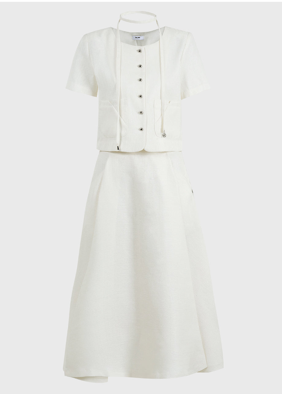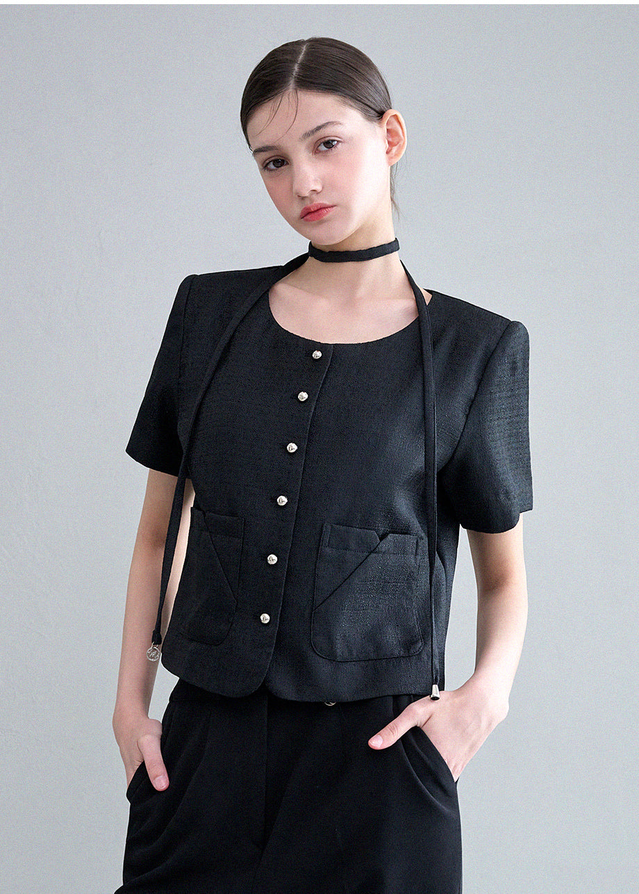充滿女性氣質的粗花呢夾克。標誌性的鏤空和開口袋為您的造型增添亮點。也推薦搭配同系列的粗呢半身裙。 *由於本品為裝飾商品,建議送至專業乾洗店清洗。