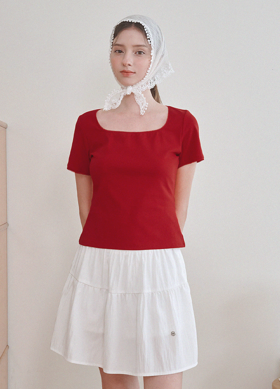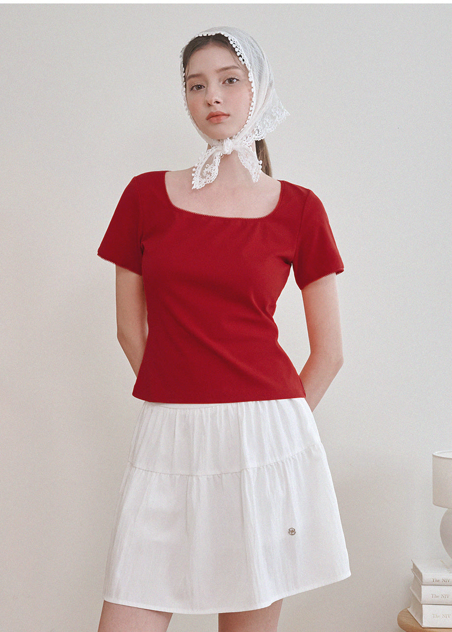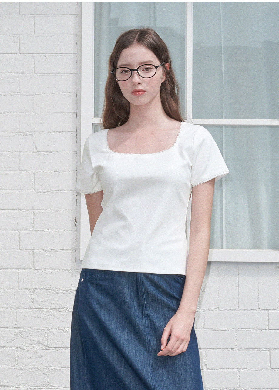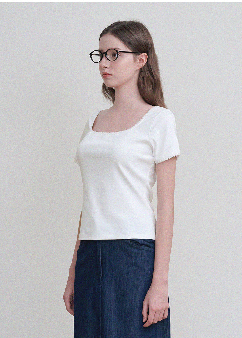 ヴィンテージムードの半袖Tシャツ。スリムなフィット感とレースのネックラインがさりげないフェミニンさを引き立てます。*装飾が施された製品のため、クリーニング専門店でのお手入れをおすすめいたします。やむを得ず洗濯機をご使用の際は、ネットに入れて冷水で洗濯することをおすすめいたします。
