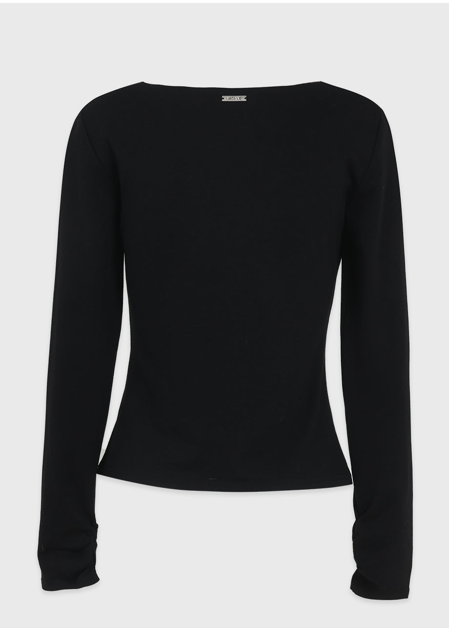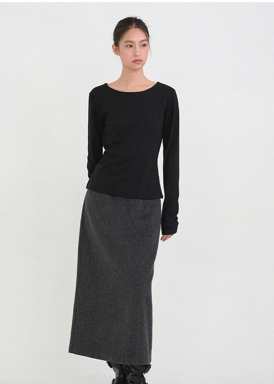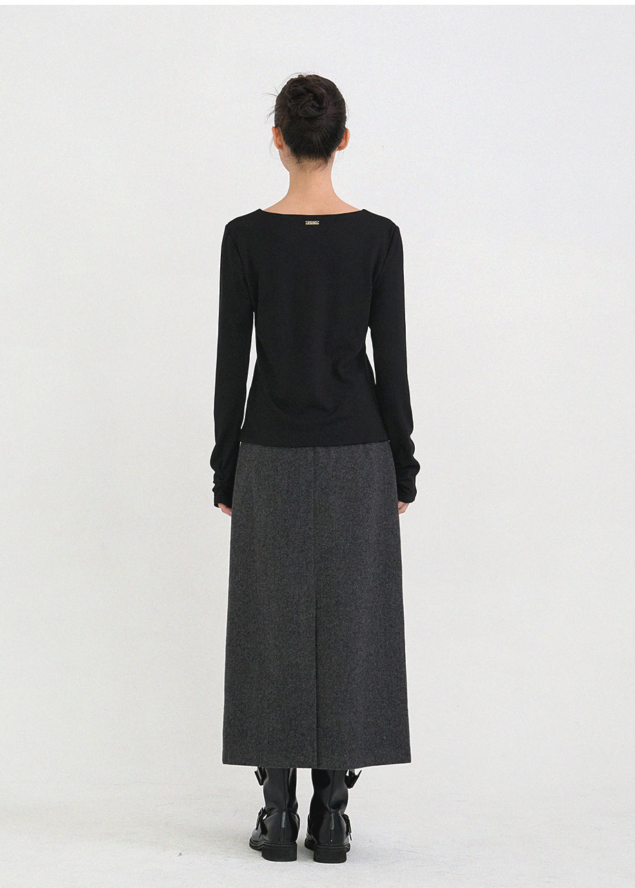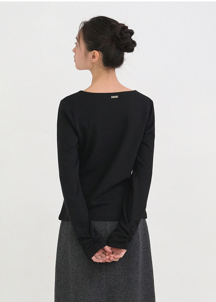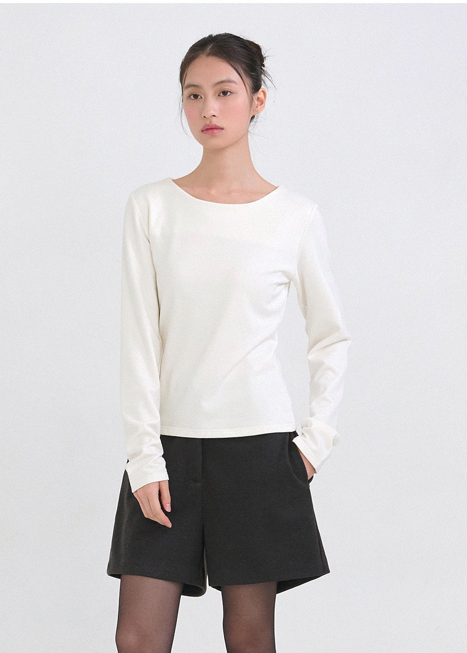 クラシックベーシックムードのTシャツです。耐久性とテンション感に優れたダイマル素材を使用し、刺激なく快適でボディラインを拾わない着心地が特徴。薄手の裏起毛生地で、膨張感なく暖かく着用できます。ボートネックデザインのセミスリムフィットで、幅広いスタイリングに対応。ネック裏の見返し仕上げでクリーンかつ上品なシルエットを演出しました。袖にはギャザーディテールを加え、シンプルながらポイントをプラス。ベーシックなデザインで単品でもインナーとしても活躍し、カラー違いで揃えるのもおすすめです。後ろネック中央にはペンダント装飾をあしらい、クオリティ高く仕上げました。*装飾が施された製品のため、クリーニング専門店でのお手入れをおすすめいたします。やむを得ず洗濯機をご使用の際は、ネットに入れて冷水で洗濯することをおすすめいたします。
