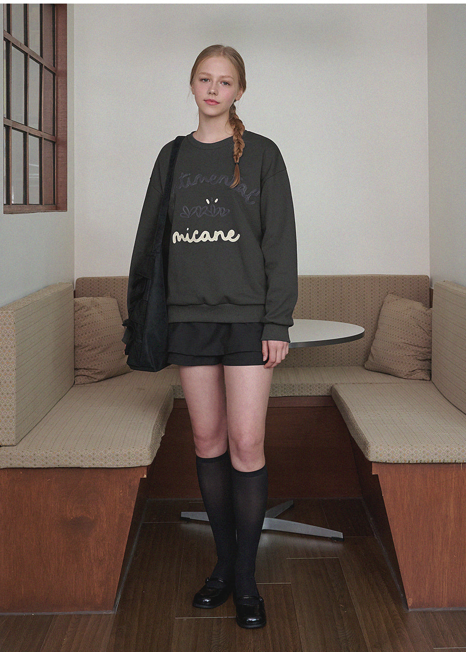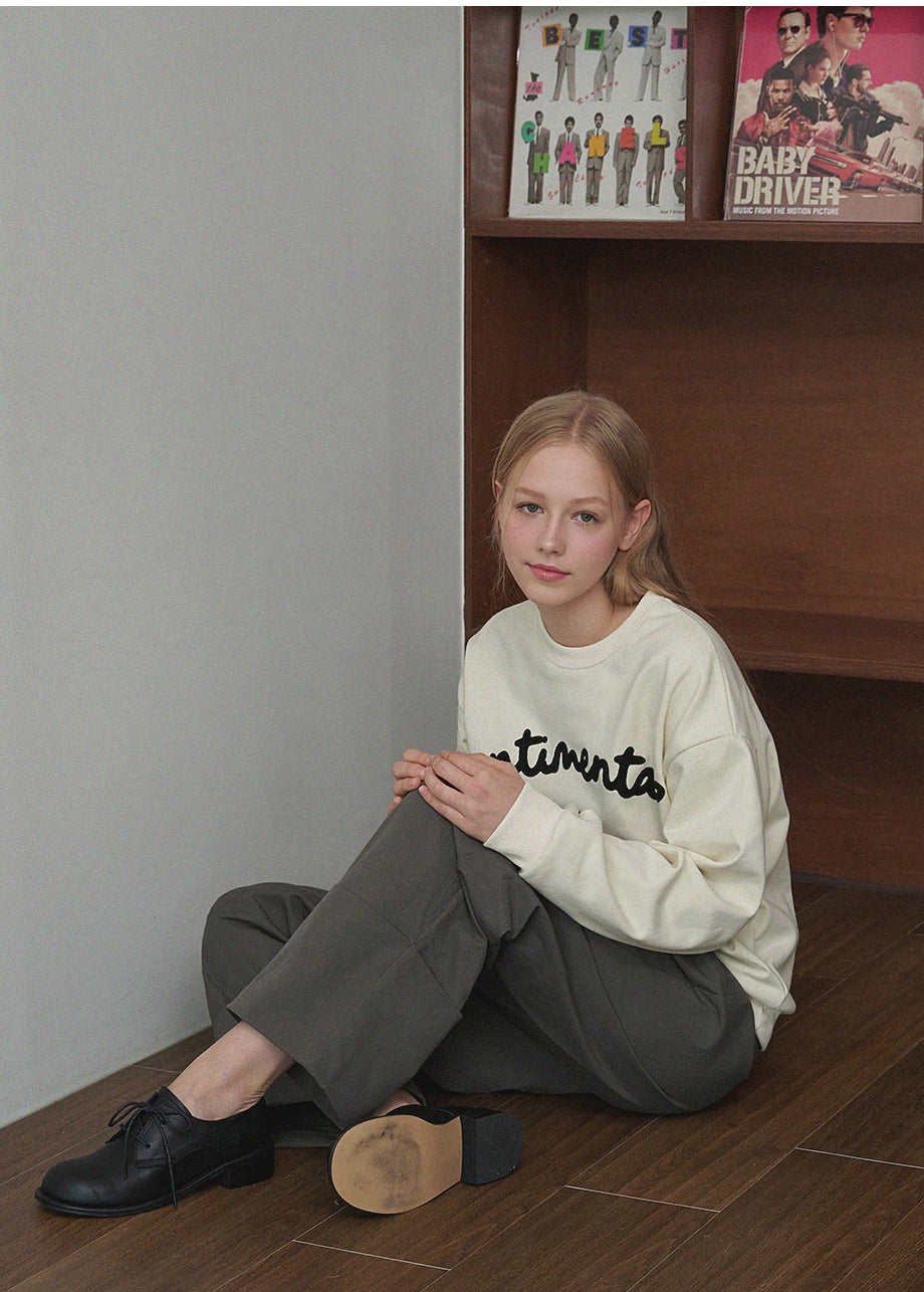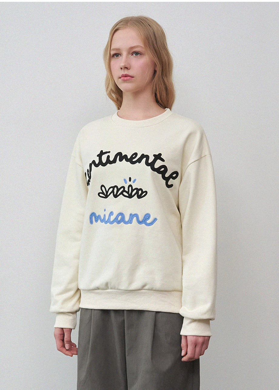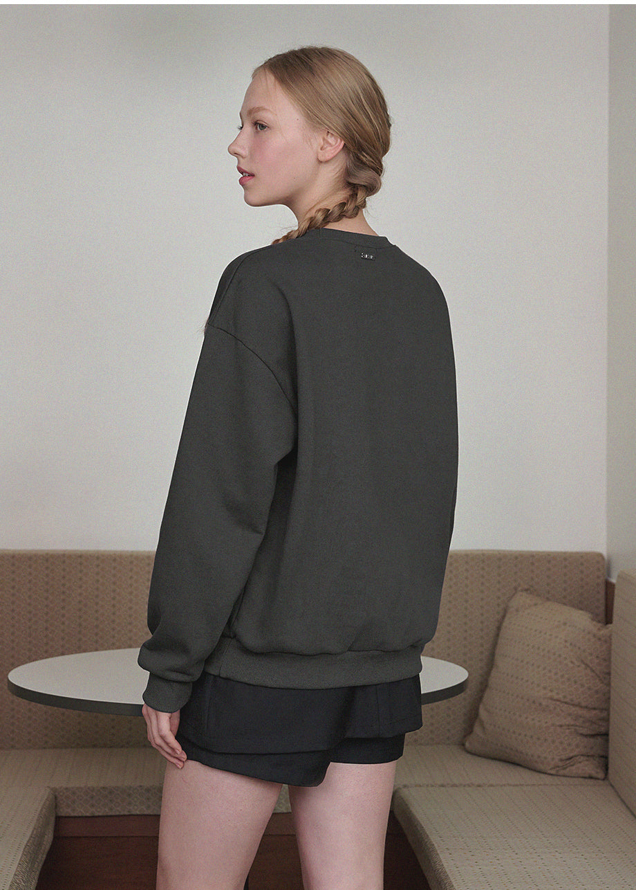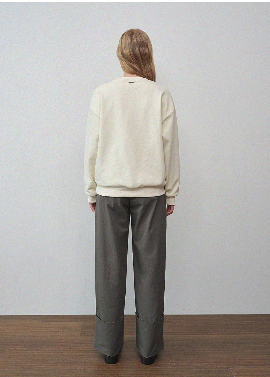 カジュアルベーシックムードのトレーナーです。耐久性とテンション感に優れた裏起毛丸編み生地で刺激を与えずに快適で暖かい着心地が特徴。程よい起毛素材で秋と冬に着用できます。ラウンドネックデザインにルーズなフィット感で気軽に着やすいアイテム。ハイクオリティの刺繍と配色でポイントを与え、秋は一枚でさらっと着られて、冬はインナーとしても重宝するので、おすすめします。ネックラインの後ろ中央にはペンダント風の装飾を加え、上品に仕上げました。*装飾が施された製品のため、クリーニング専門店でのお手入れをおすすめいたします。やむを得ず洗濯機をご使用の際は、ネットに入れて冷水で洗濯することをおすすめいたします。