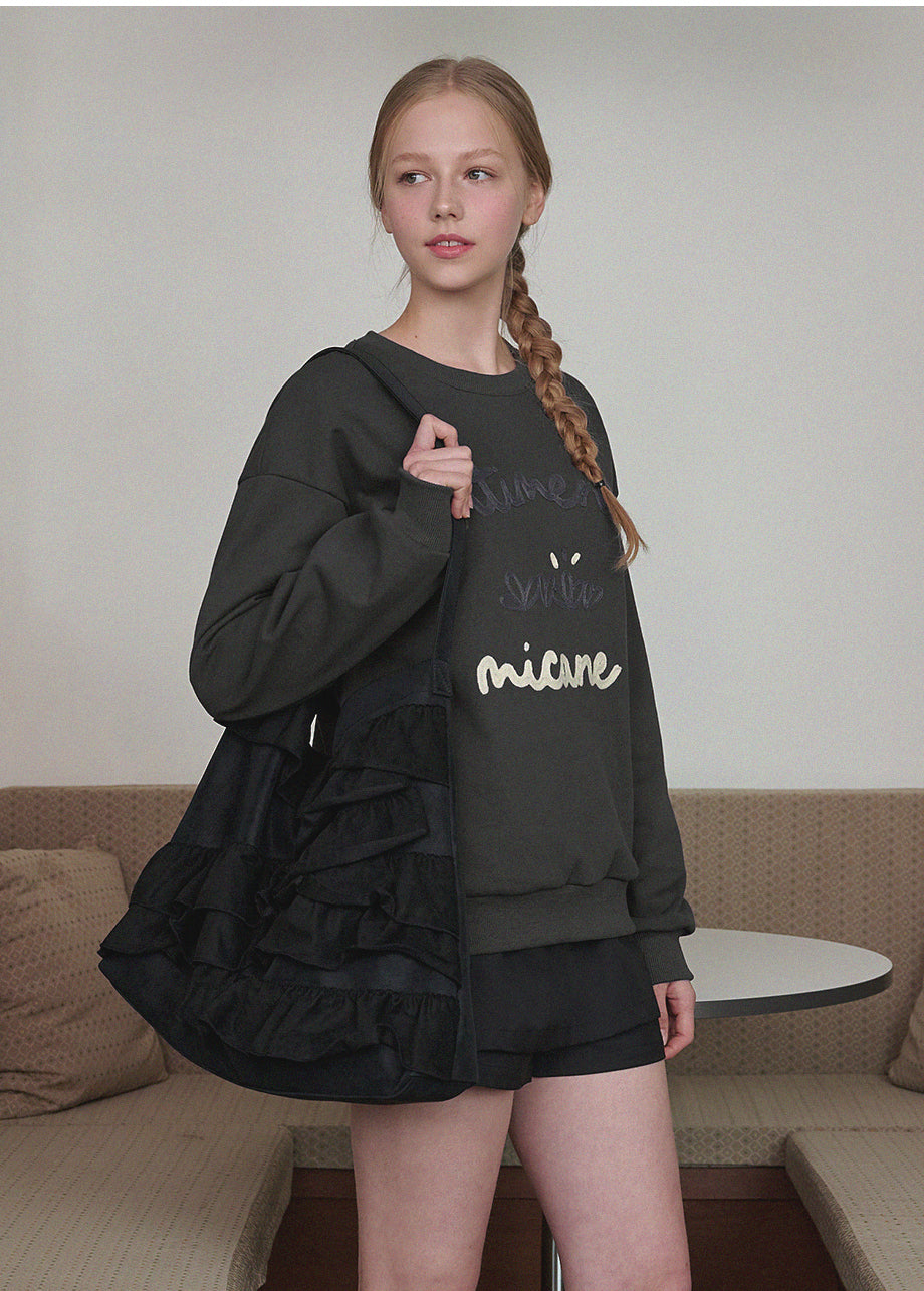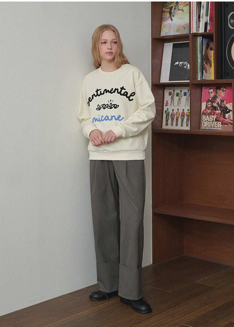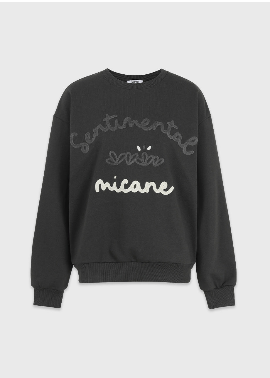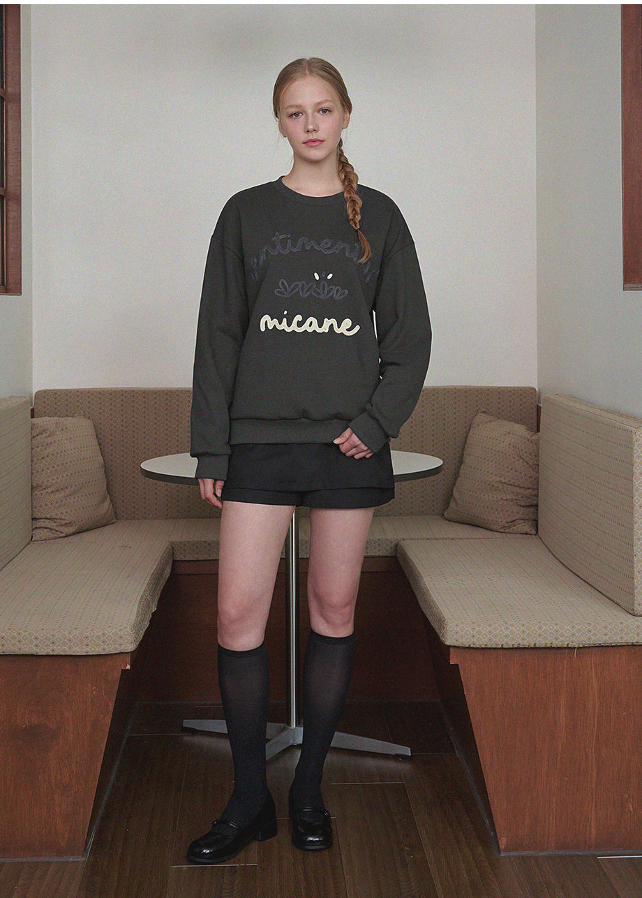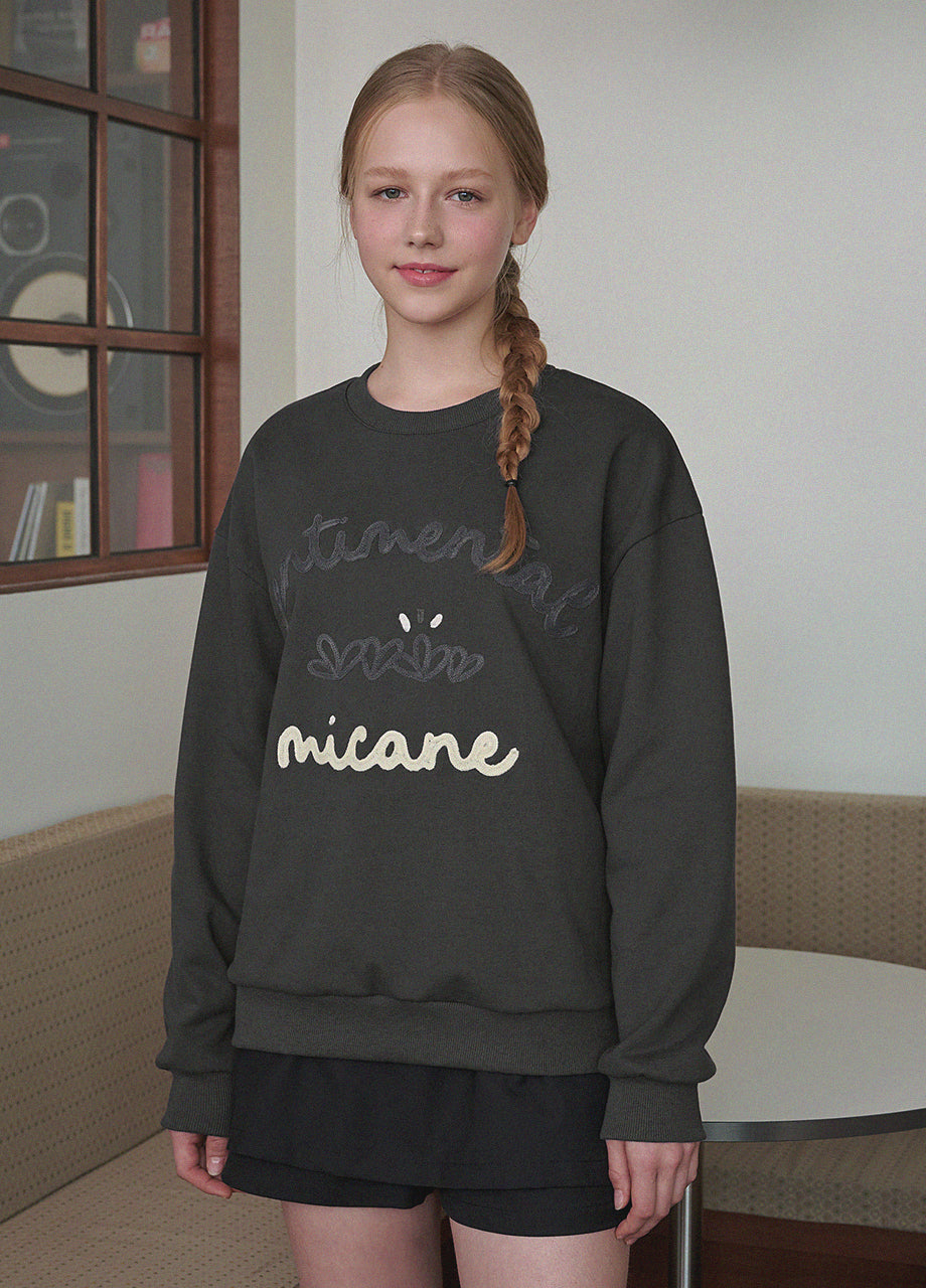 カジュアルベーシックムードのトレーナーです。耐久性とテンション感に優れた裏起毛丸編み生地で刺激を与えずに快適で暖かい着心地が特徴。程よい起毛素材で秋と冬に着用できます。ラウンドネックデザインにルーズなフィット感で気軽に着やすいアイテム。ハイクオリティの刺繍と配色でポイントを与え、秋は一枚でさらっと着られて、冬はインナーとしても重宝するので、おすすめします。ネックラインの後ろ中央にはペンダント風の装飾を加え、上品に仕上げました。*装飾が施された製品のため、クリーニング専門店でのお手入れをおすすめいたします。やむを得ず洗濯機をご使用の際は、ネットに入れて冷水で洗濯することをおすすめいたします。