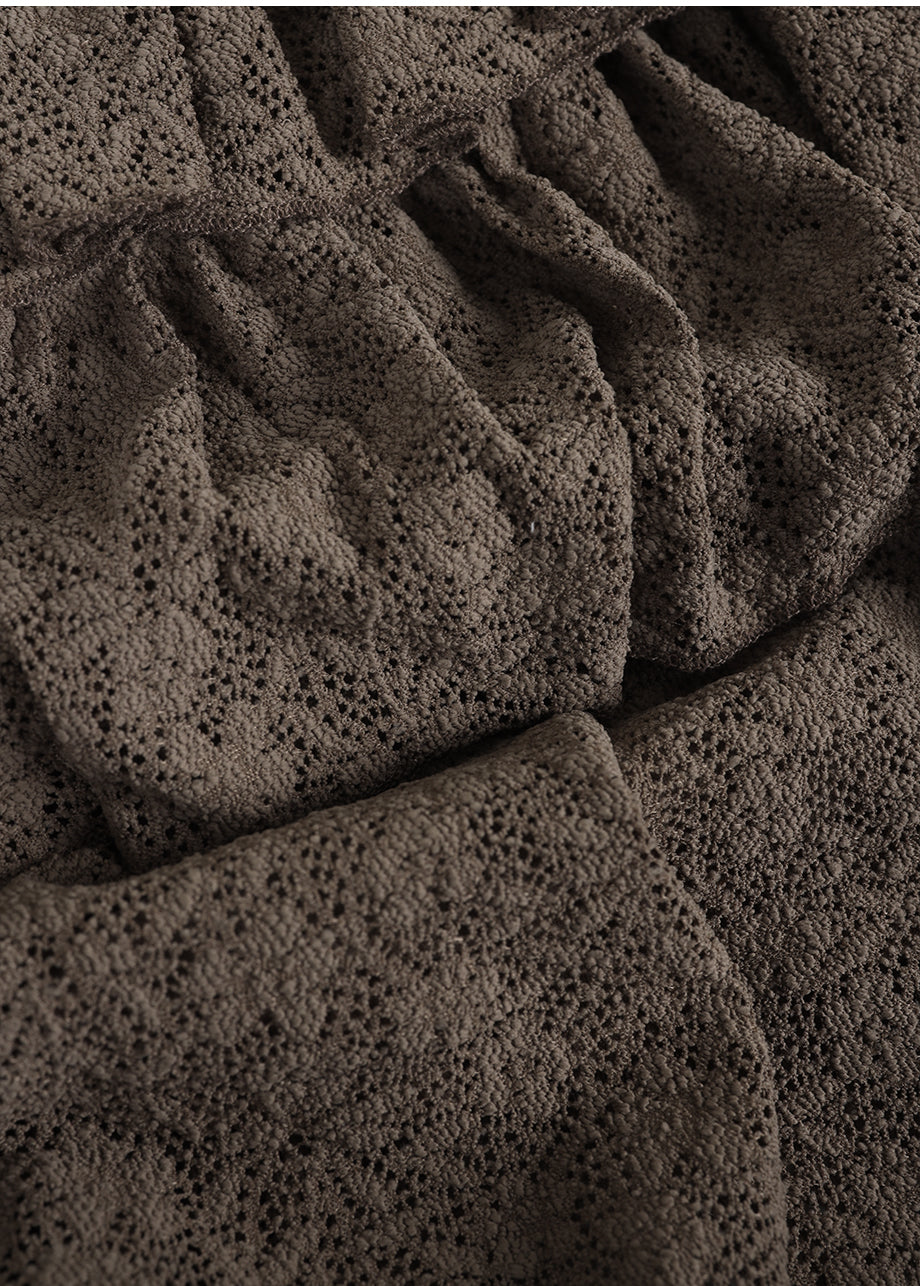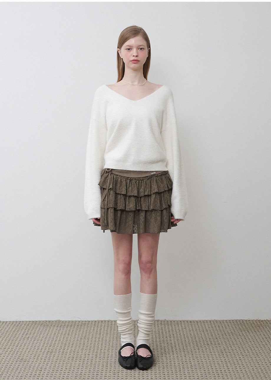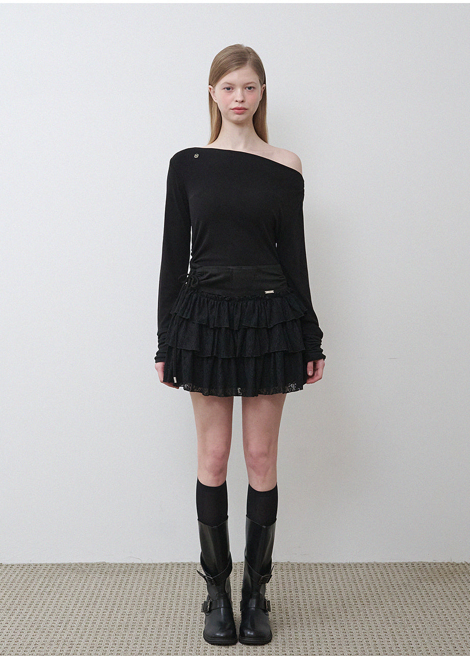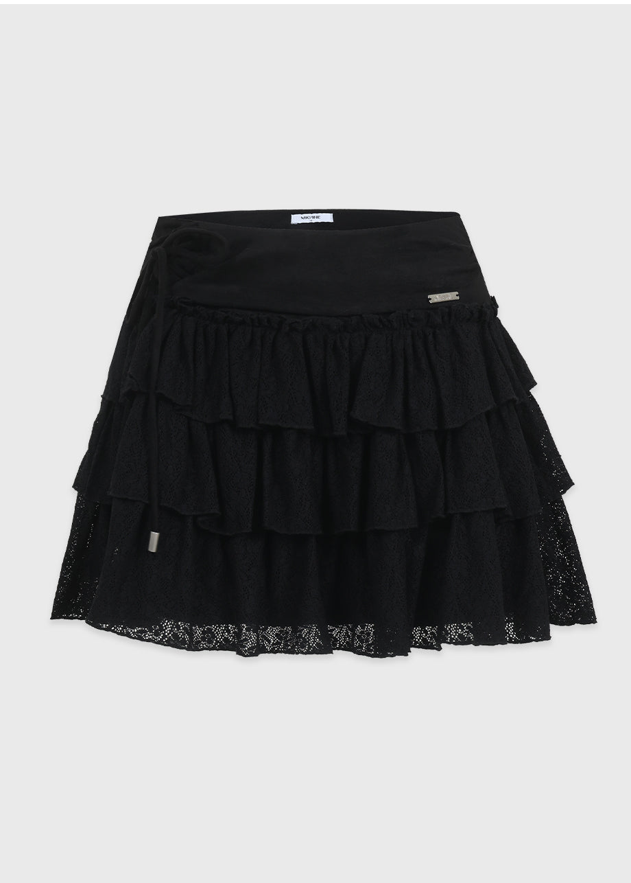 ヴィンテージムードが感じられるミニスカートです。柔らかく耐久性に優れたフェイクスエード生地と、控えめなフラワーパターンのストレッチレース生地を組み合わせ、肌に刺激なく快適でムードのある着心地が特徴です。同じ生地のスエード素材インナースカートが内蔵されており、透け感なく高品質な着用が可能です。短すぎないミニ丈にカンカンスタイルを取り入れ、多様なコーディネートにトレンディなムードを加えられます。前ウエストには同素材のベルトディテールがポイントとなり、好みに合わせて結ぶことでユニークな演出が可能です。ウエストサイドにはペンダント装飾を施して仕上げています。*装飾や特殊な素材を使用した製品のため、クリーニング専門店でのお手入れをおすすめいたします。