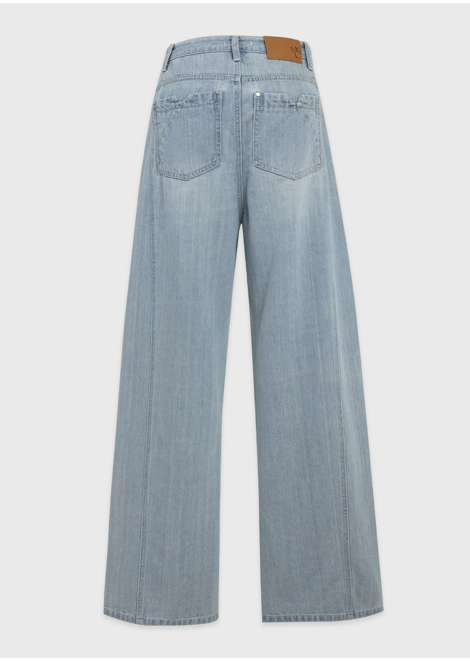 ヴィンテージな感性のデニムワイドパンツです。ワイドシルエットにロング丈で、トレンド感あるスタイリングが完成します。希少性のあるユニークなムードが魅力です。*装飾が施された製品のため、クリーニング専門店でのお手入れをおすすめいたします。