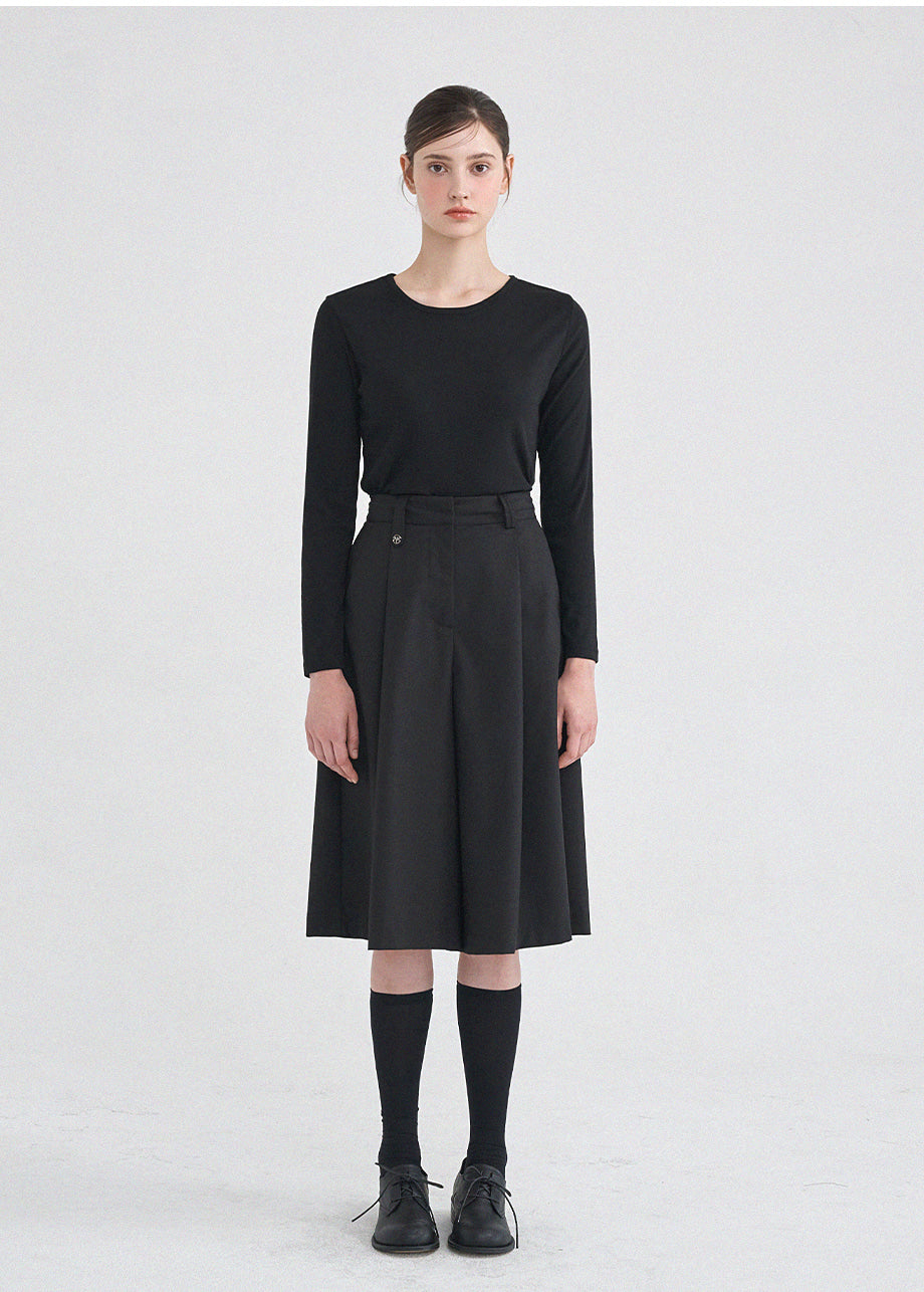 クラシックな雰囲気を漂わせるワイドシルエットのパンツ。ハリのある生地で美しいラインと快適な穿き心地を実現し、後ろウエストの切り替えとスリットがスタイルのアクセントに。*装飾が施された製品のため、クリーニング専門店でのお手入れをおすすめいたします。