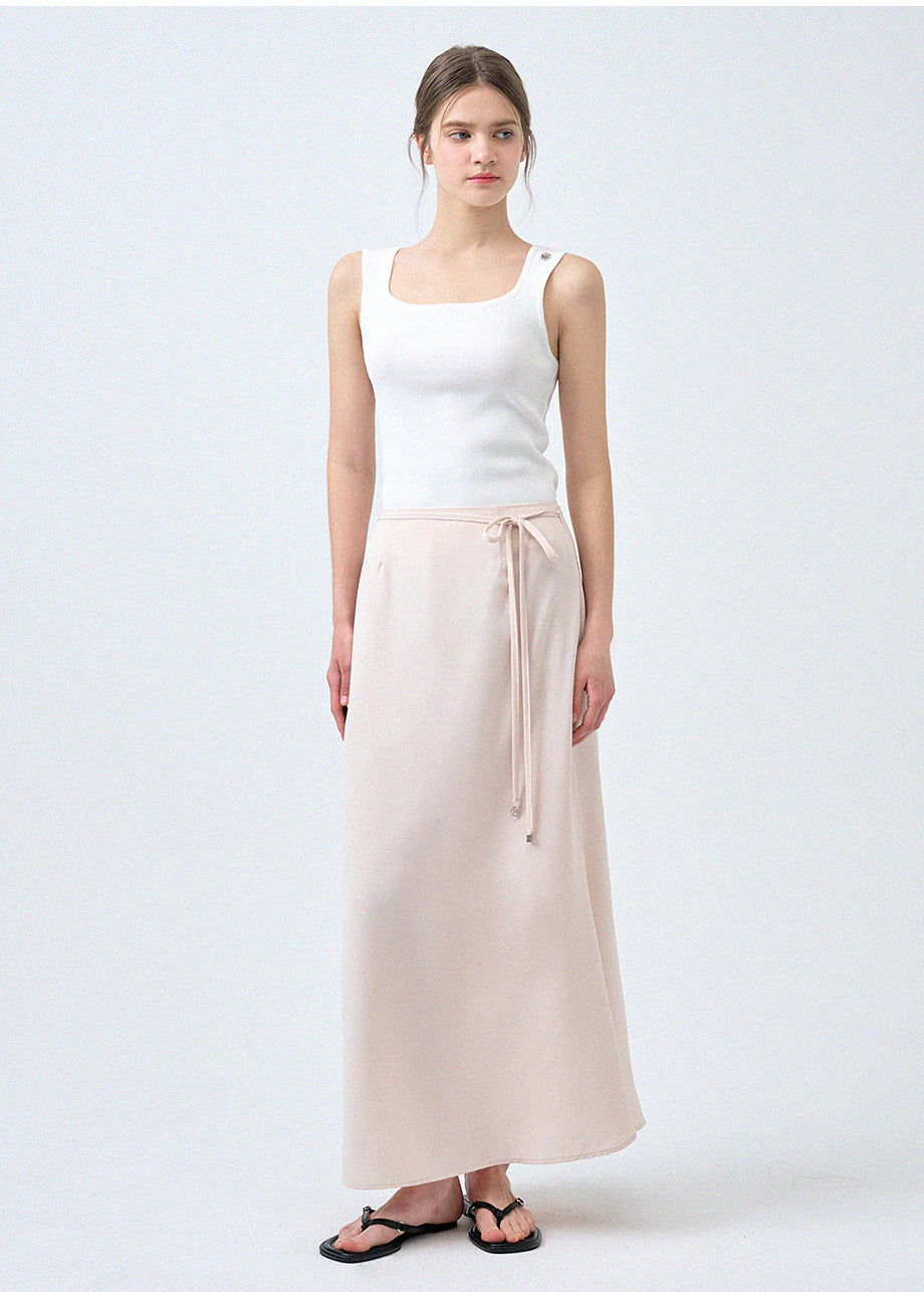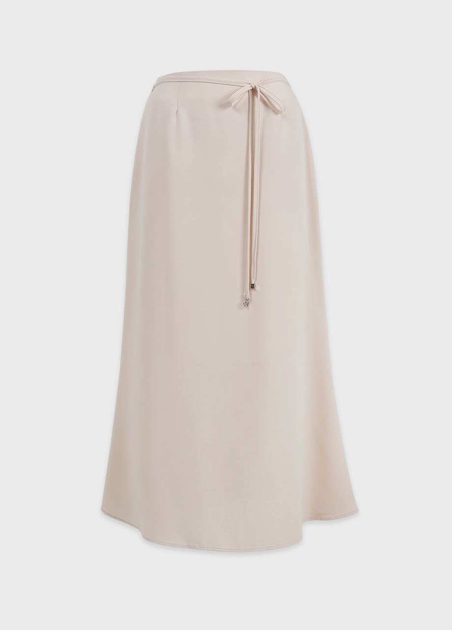クラシックでフェミニンなムードのロングスカートです。セミマーメイドフィットで体型カバーしながら気軽に着用できます。ウエストストラップ付きで、結び方によりスタイリングにポイントを加えることができます。*装飾が施された製品のため、クリーニング専門店でのお手入れをおすすめいたします。