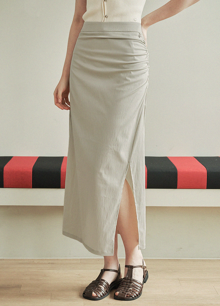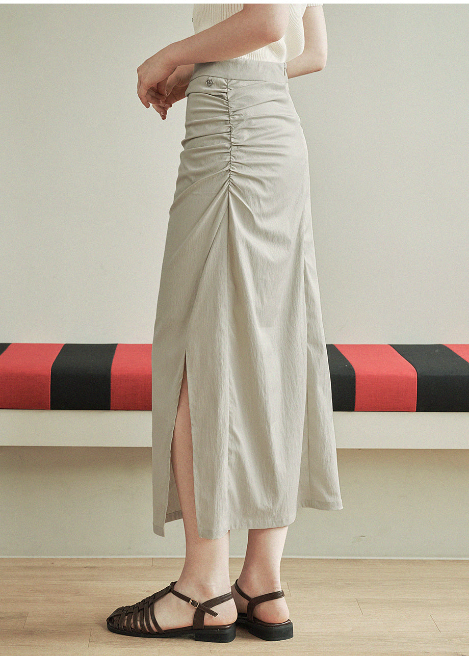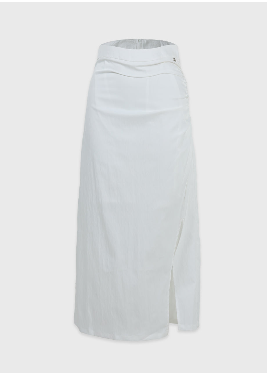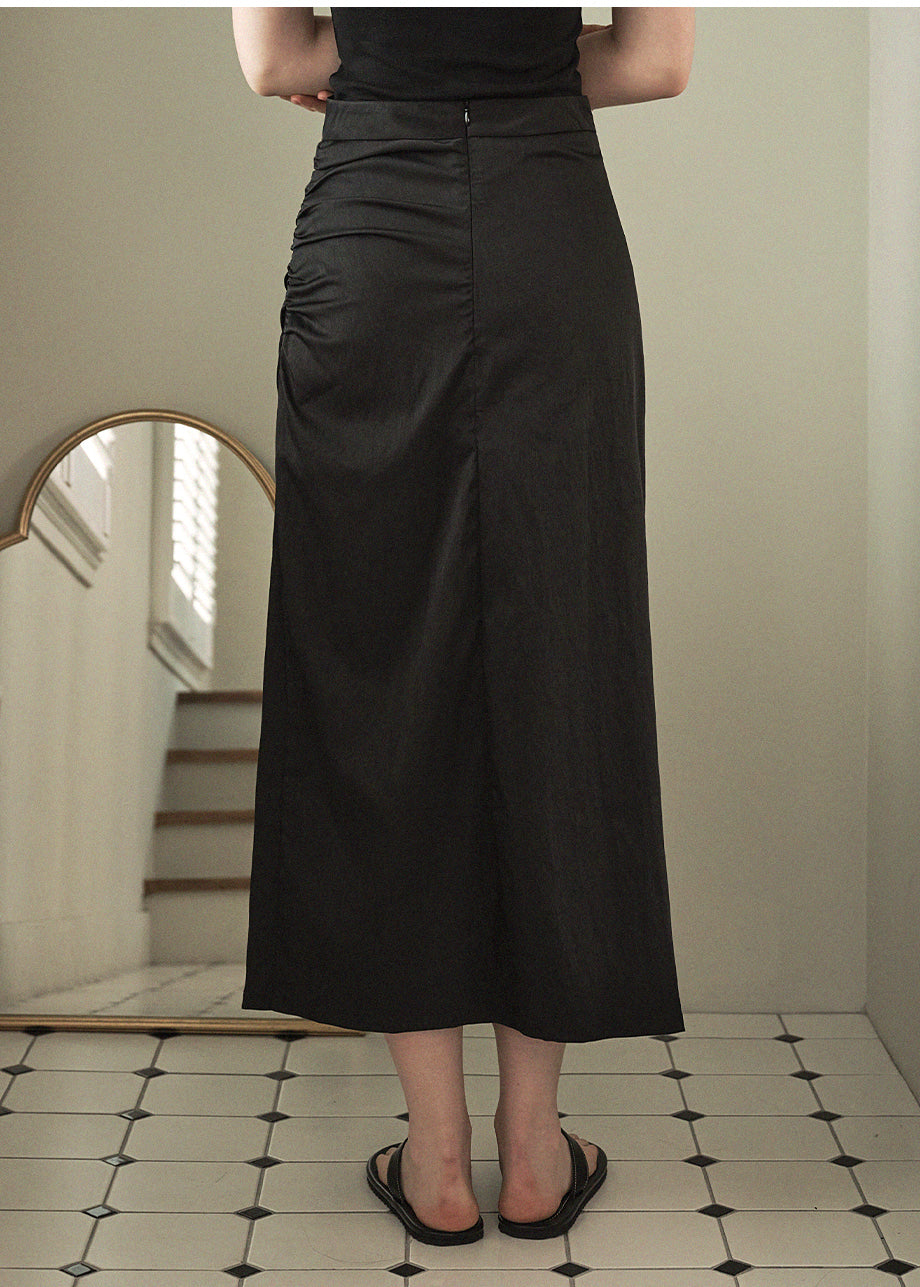 フェミニンでクラシックなムードのスカートです。耐久性に優れた軽やかな素材を使用し、柔らかい光沢感とテクスチャーがムードある着こなしを演出します。