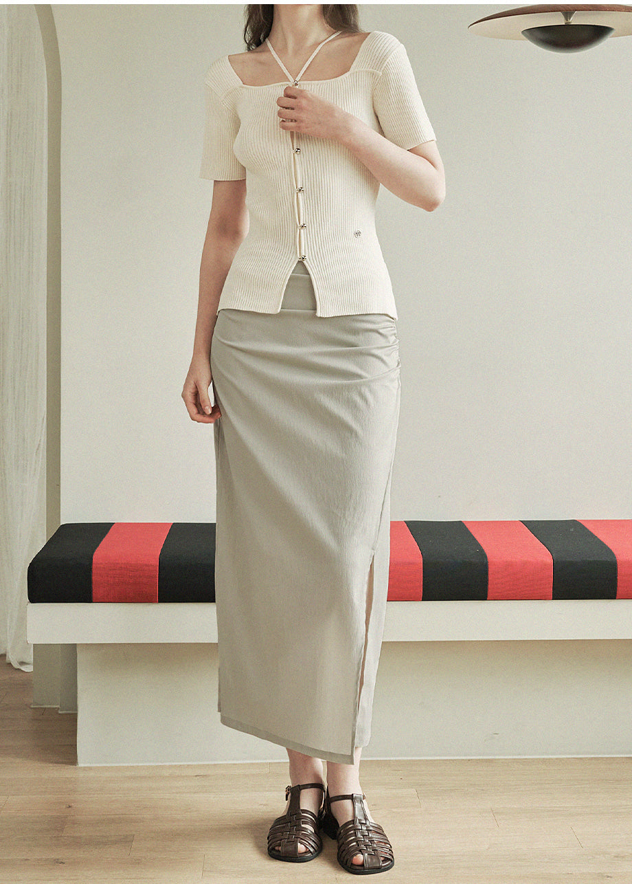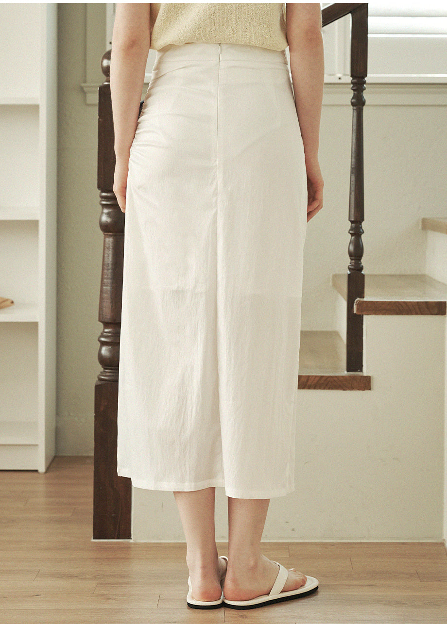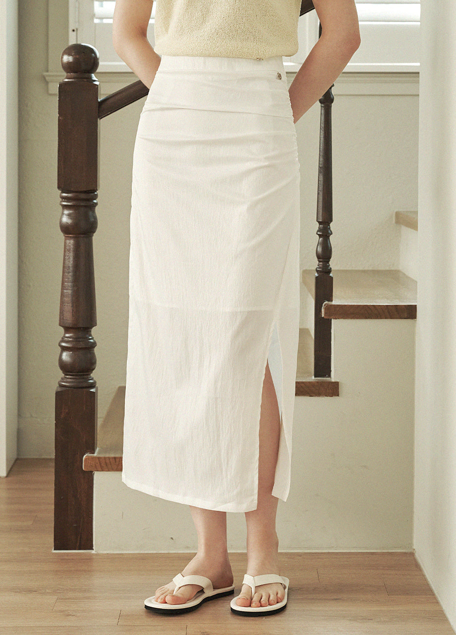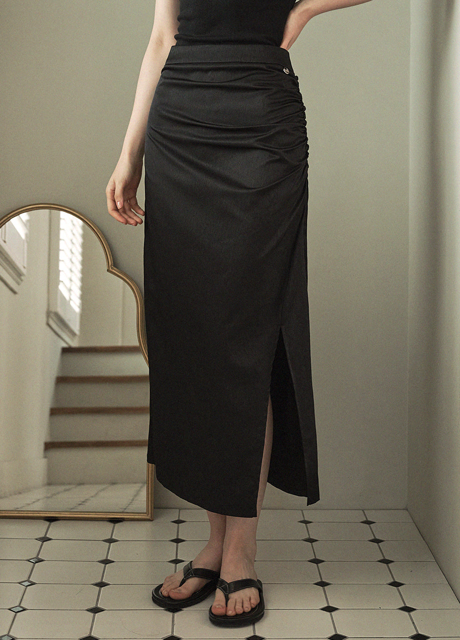 フェミニンでクラシックなムードのスカートです。耐久性に優れた軽やかな素材を使用し、柔らかい光沢感とテクスチャーがムードある着こなしを演出します。