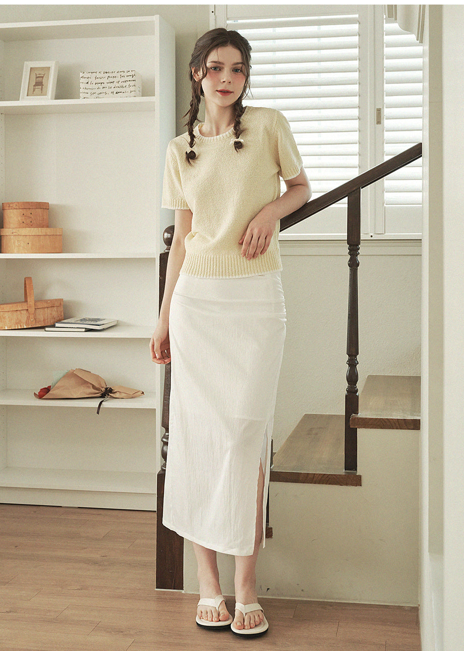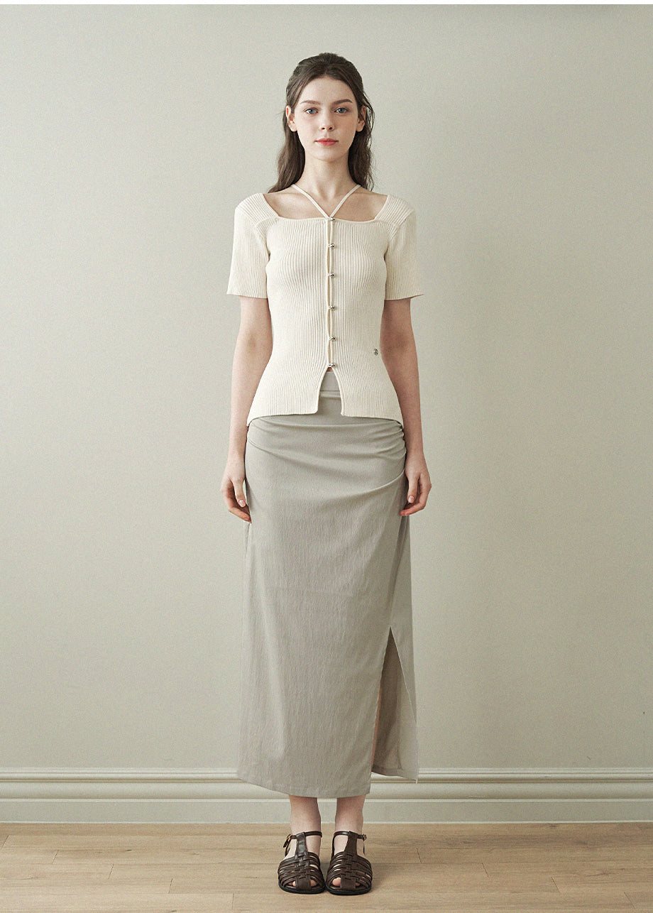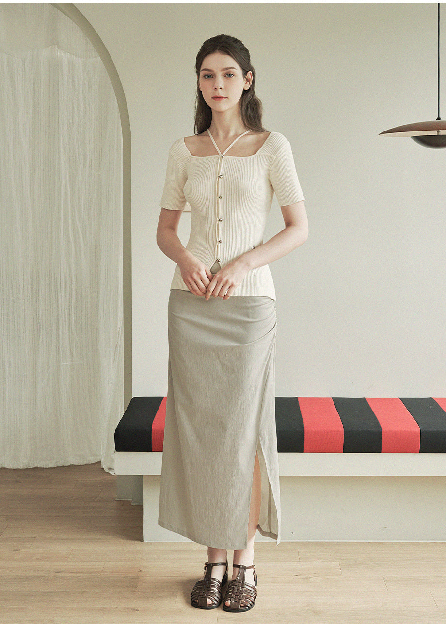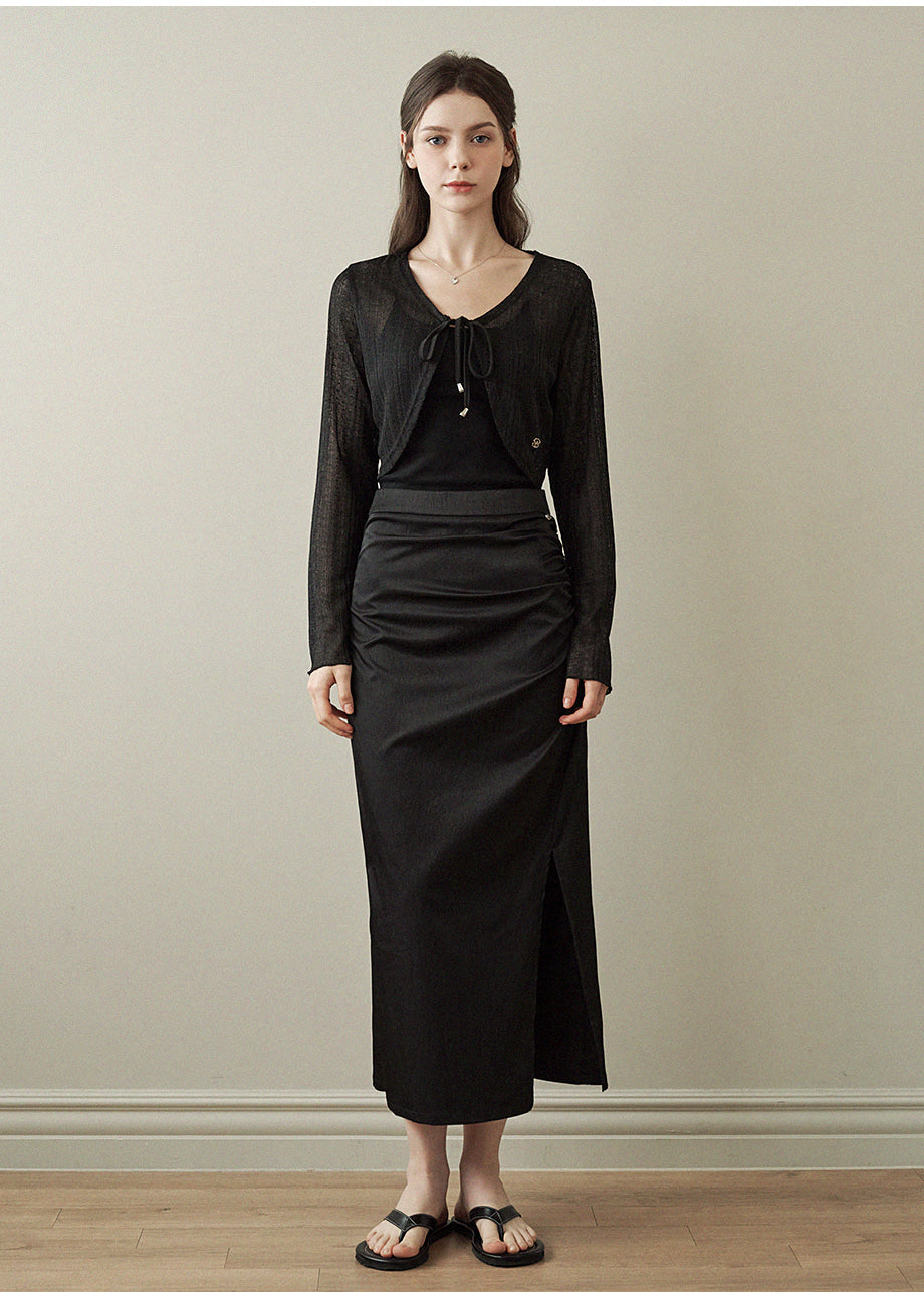 フェミニンでクラシックなムードのスカートです。耐久性に優れた軽やかな素材を使用し、柔らかい光沢感とテクスチャーがムードある着こなしを演出します。