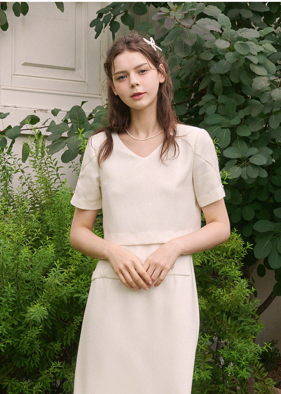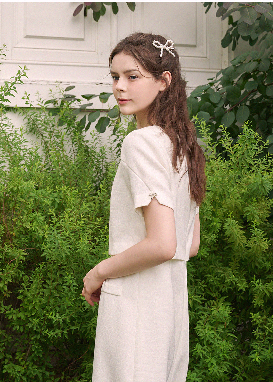 高級感のあるツイードドレスです。耐久性のある夏用ツイード素材を使用し、シルエットとクオリティを高めました。