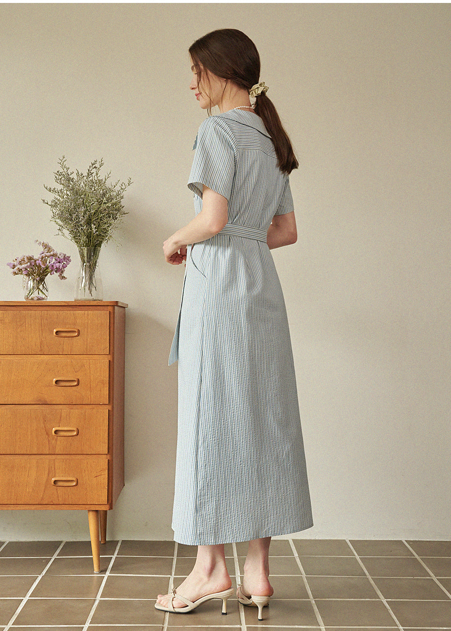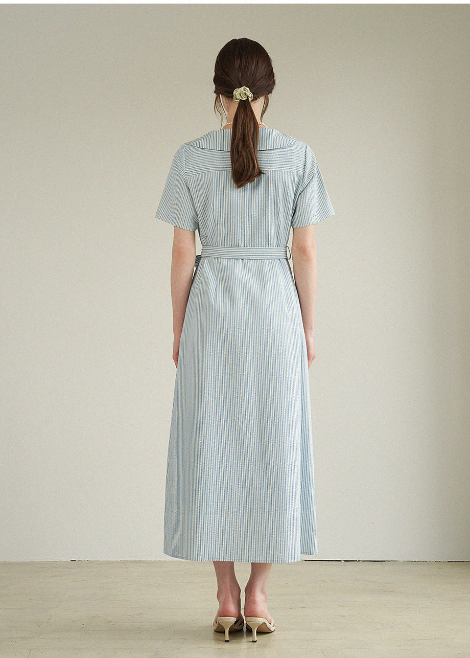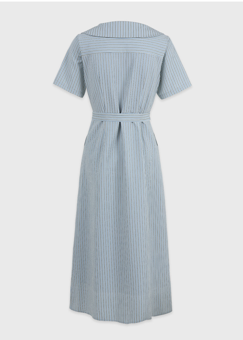 • Bubbly Stripe Open Collar Long Dress
