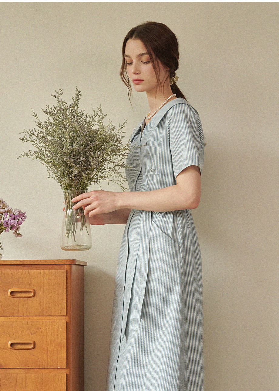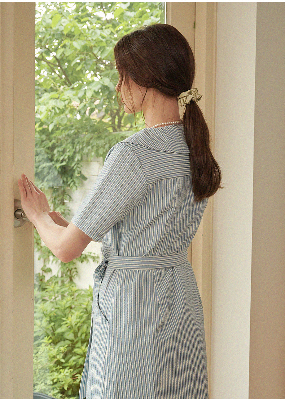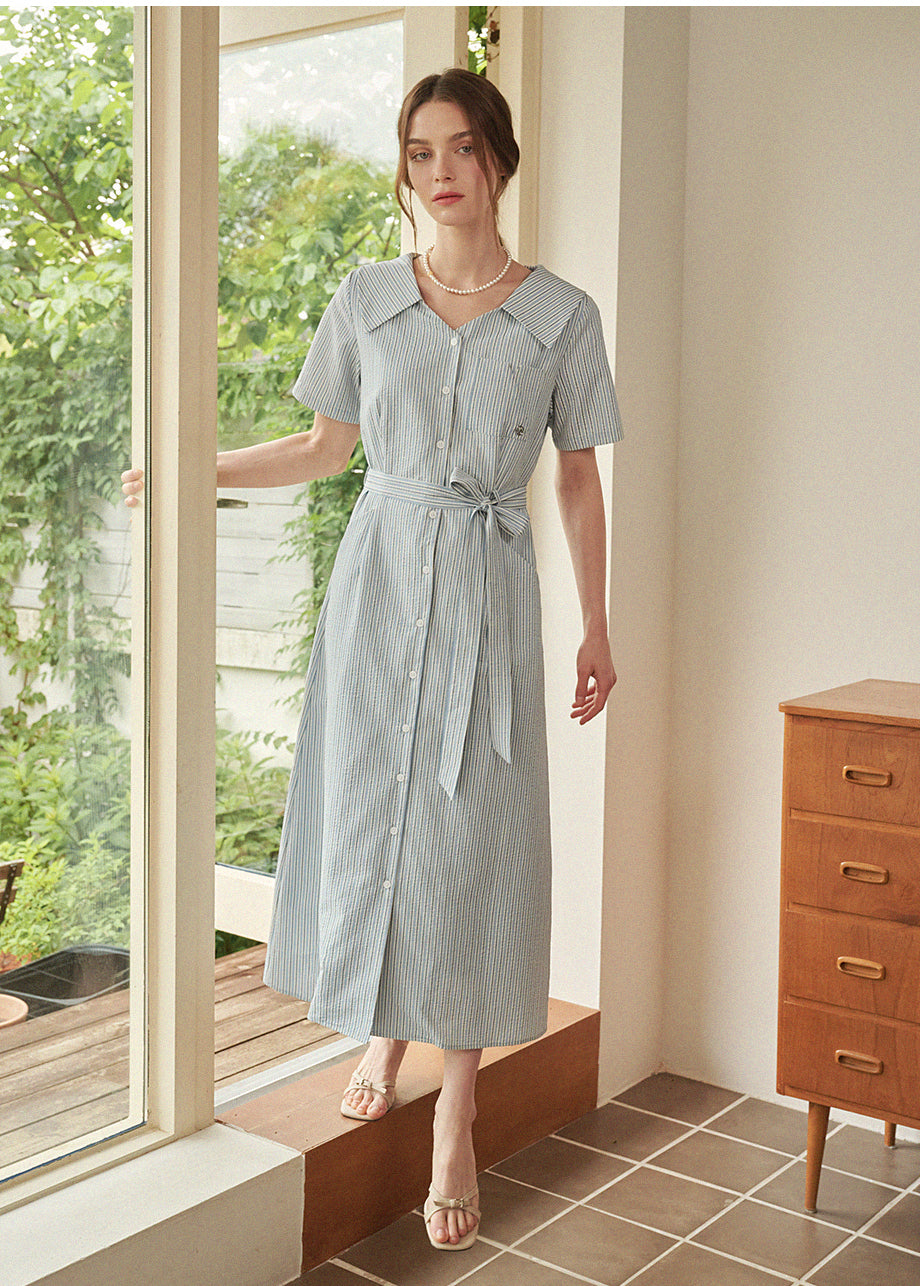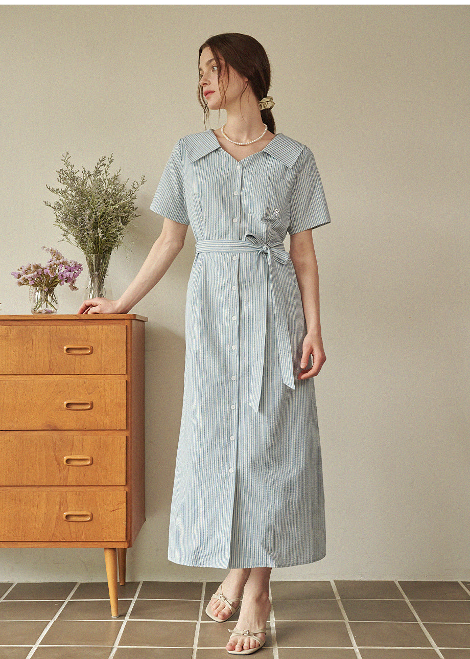 • Bubbly Stripe Open Collar Long Dress