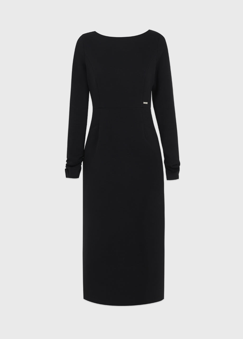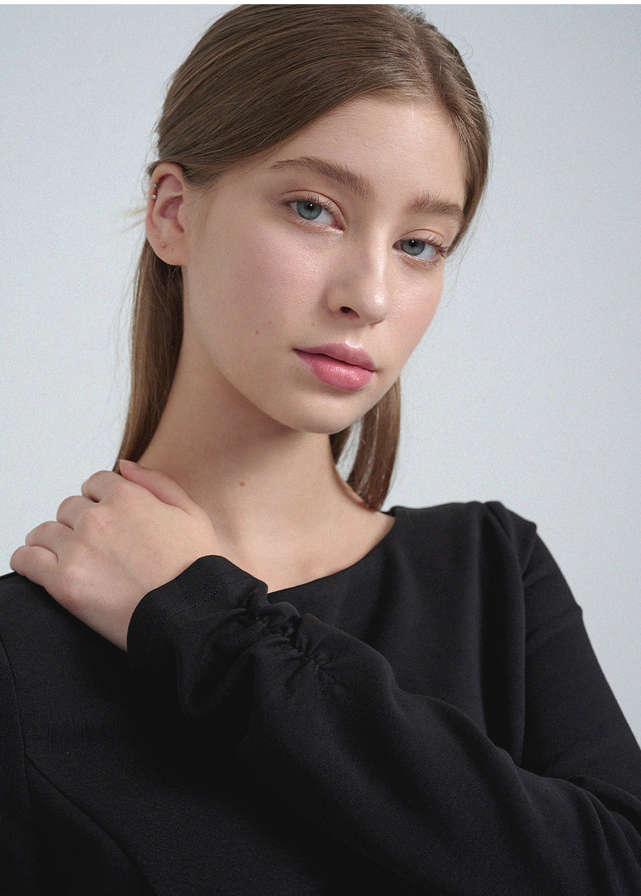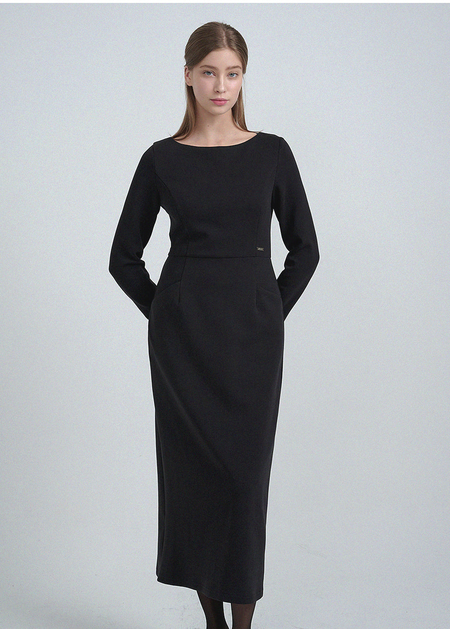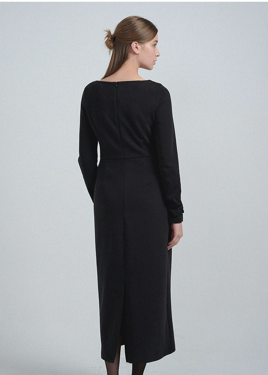 カジュアルクラシックなムードを演出するドレスです。程よいテンション感のある丈夫な丸編み生地で制作され、体型カバーの効果もありつつ、楽な着心地が楽しめます。秋は単独で、冬にはインナードレスとして活用できます。ボートネックでウエストのラインを整えたロング丈でスリムなシルエットを演出します。サイドはミケネのオリジナルスリットとポケットを入れて実用性を高めました。袖のシャーリングディテールでフェミニンな印象を与えます。ベーシックなデザインに体型をカバーするディテールと素材感でワンマイルコーデ等様々なアウターの中に着やすいインナードレスとして活用するのをオススメします。ウエストのサイドはペンダントを加え、上品に仕上げました。*装飾が施された製品のため、クリーニング専門店でのお手入れをおすすめいたします。やむを得ず洗濯機をご使用の際は、ネットに入れて冷水で洗濯することをおすすめいたします。