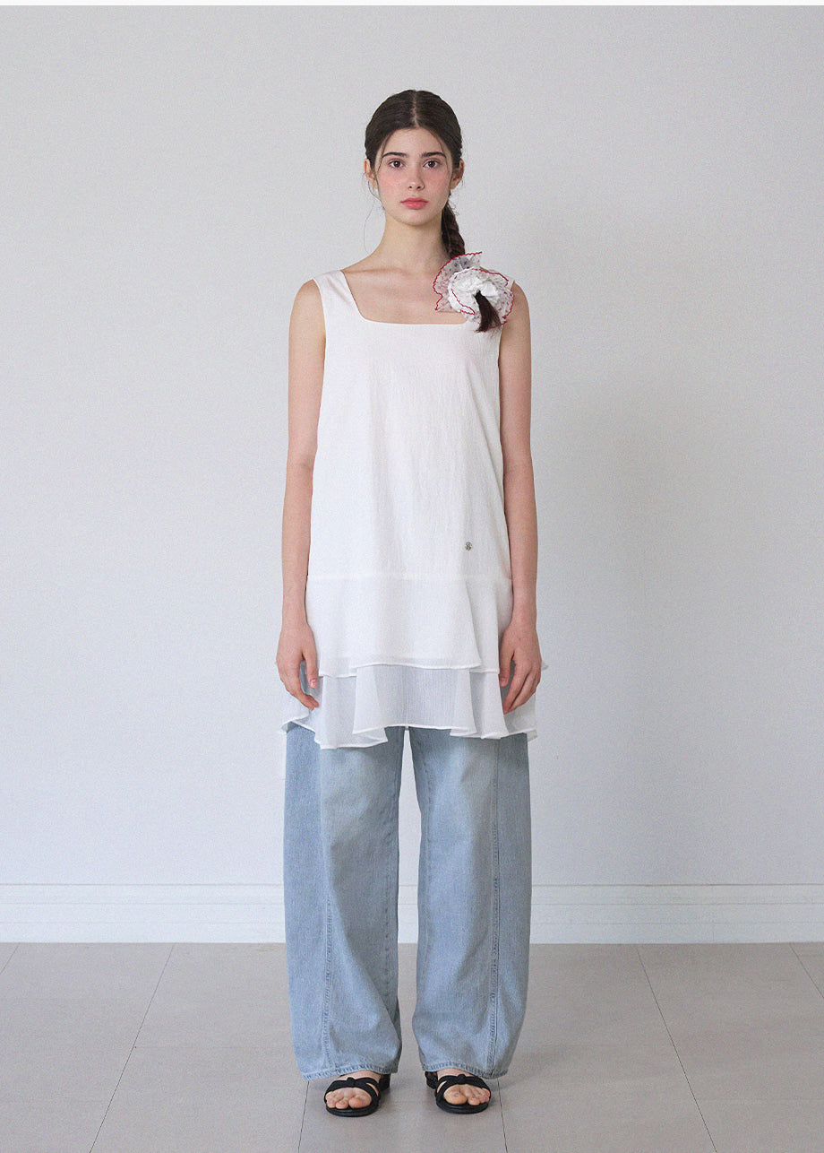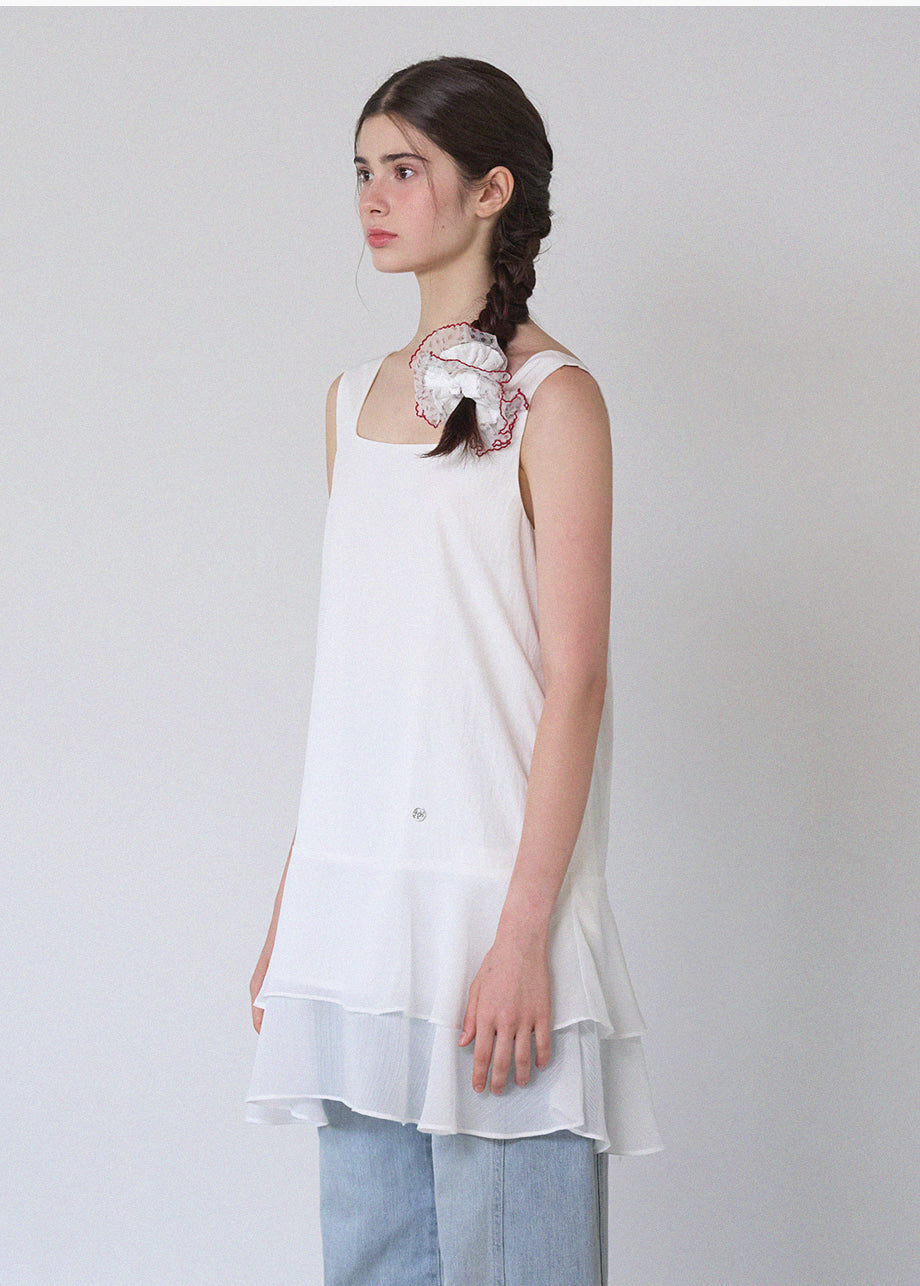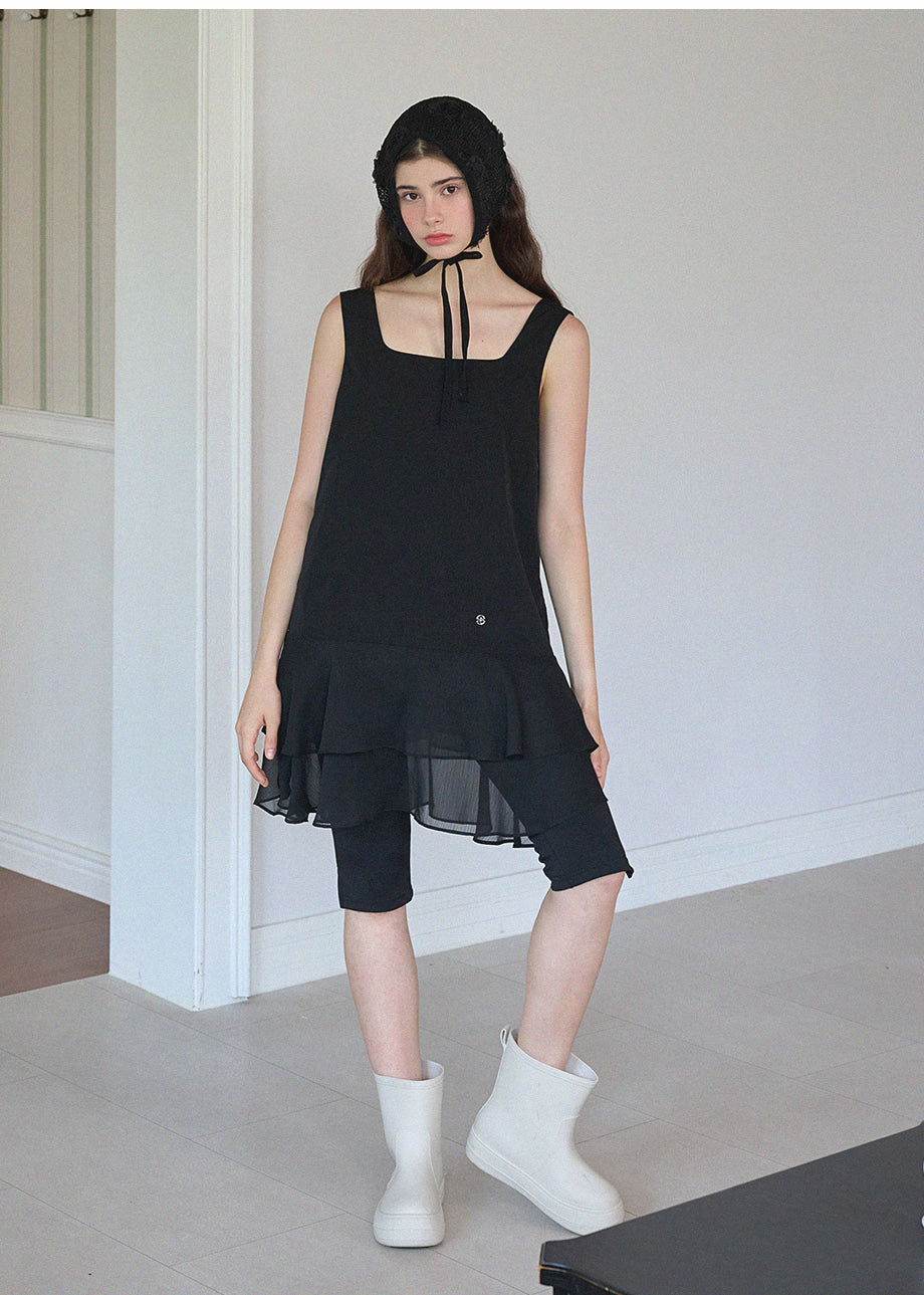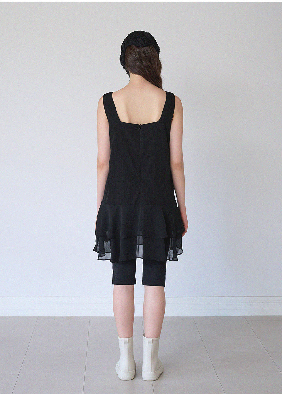 ヴィンテージ×ラブリームードのレイヤードミニドレス。軽やかなシフォンのフリルヘムがロマンチックな印象を与え、単品でもレイヤードでも楽しめます。*装飾が施された製品のため、クリーニング専門店でのお手入れをおすすめいたします。