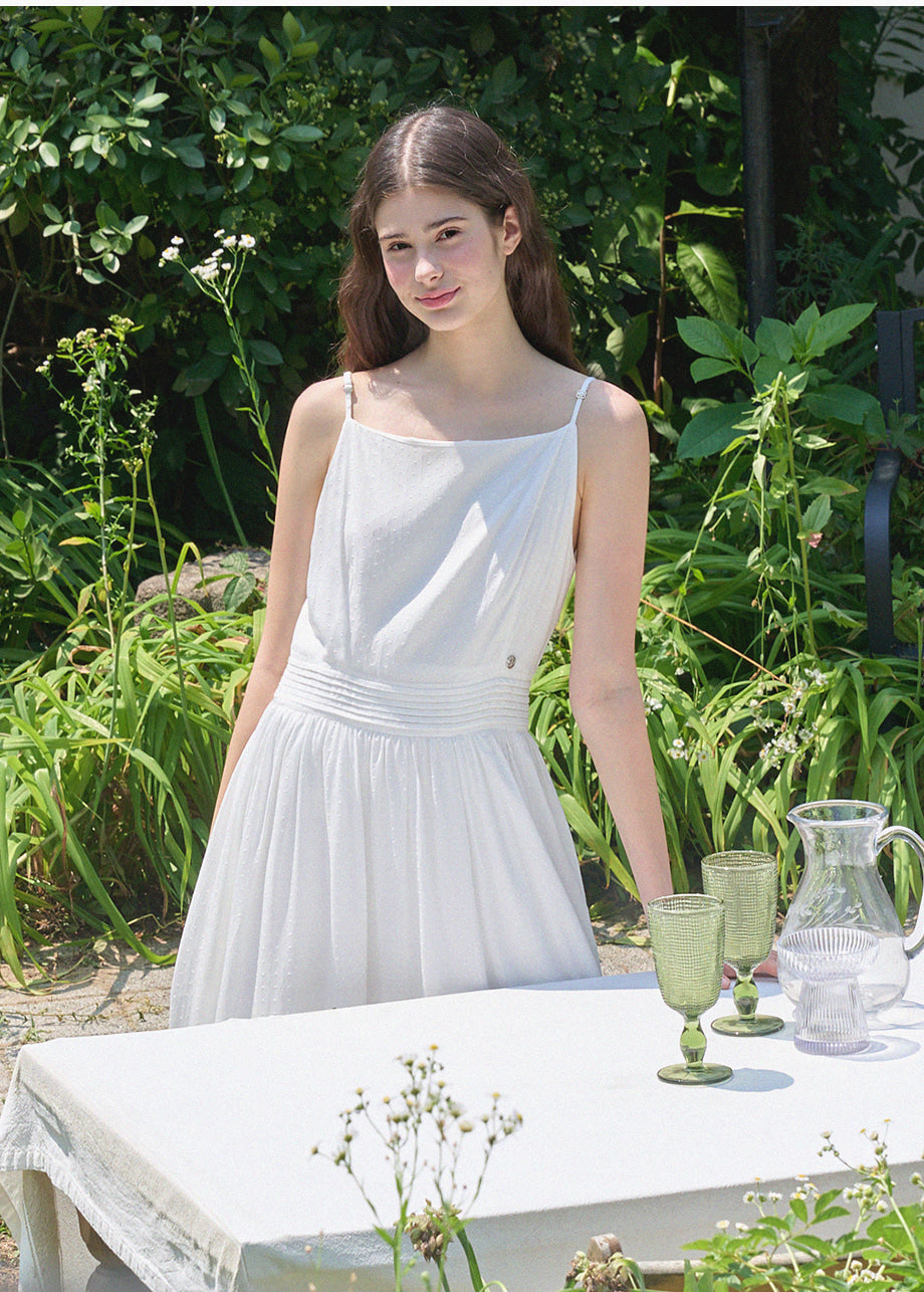 フェミニンなヴィンテージムードのロングドレス。さりげないドット柄とリラックスしたシルエットで、バカンスや夏のお出かけにぴったりです。*装飾が施された製品のため、クリーニング専門店でのお手入れをおすすめいたします。