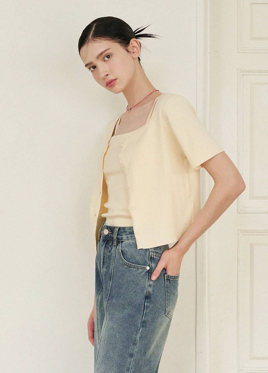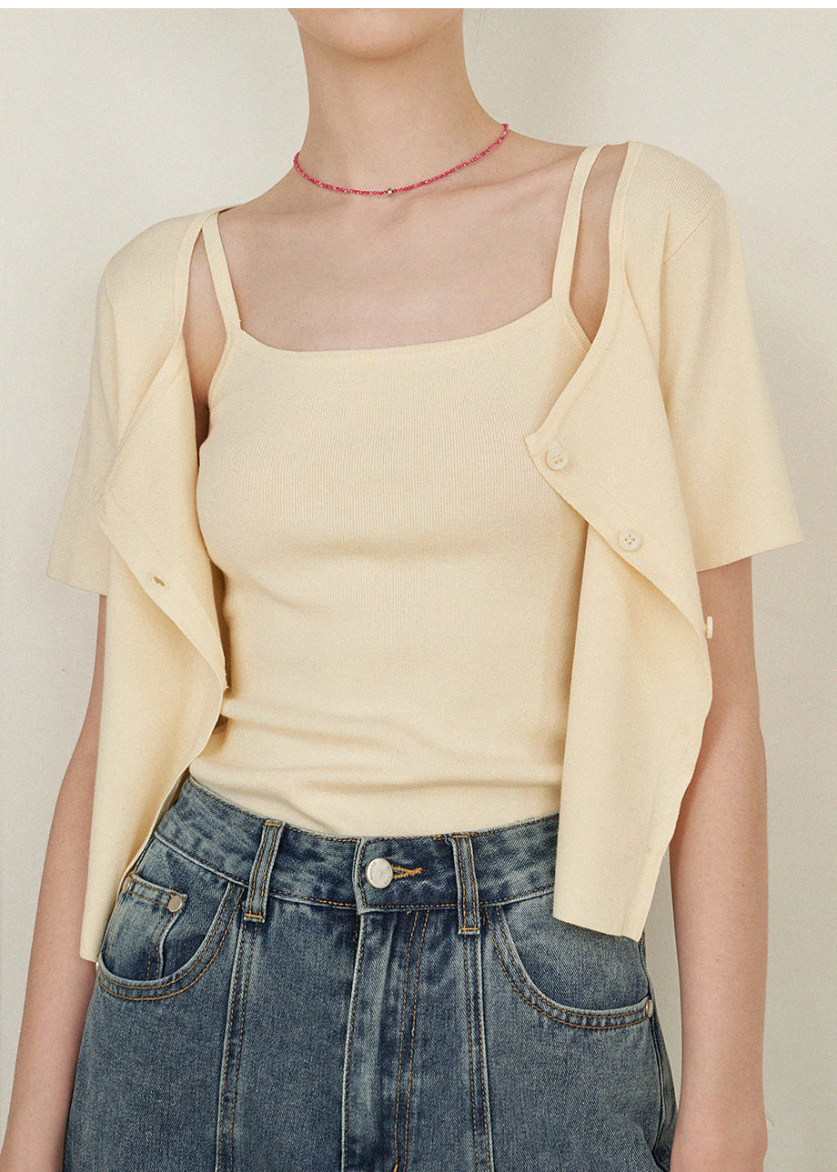 デイリームードで着用できるカーディガン&キャミソールのセットアップです。耐久性のある糸を使用し、シルエットとクオリティを高めました。