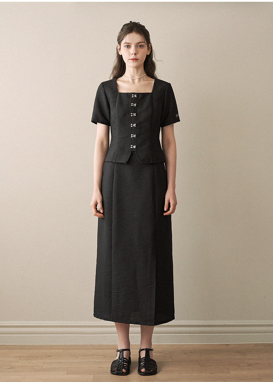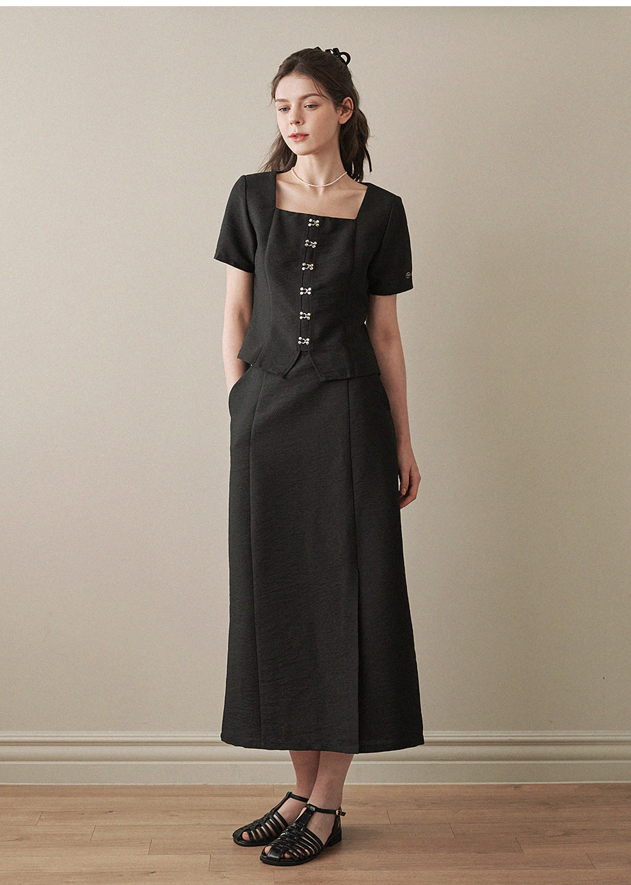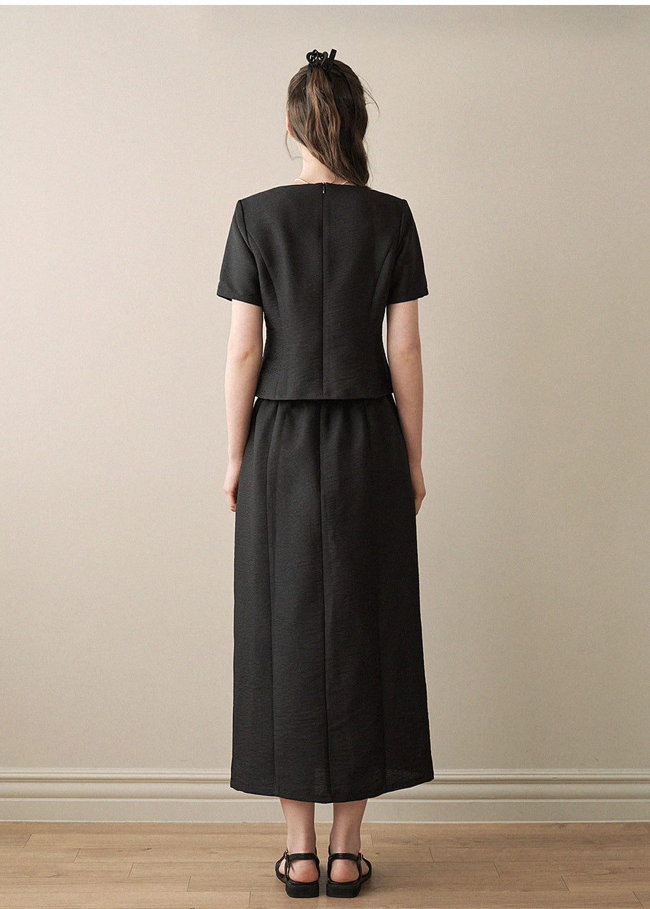 クラシックでデイリーなムードのブラウス&スカートセットアップです。軽くて耐久性に優れた生地を使用し、シルエットとクオリティを高めました。