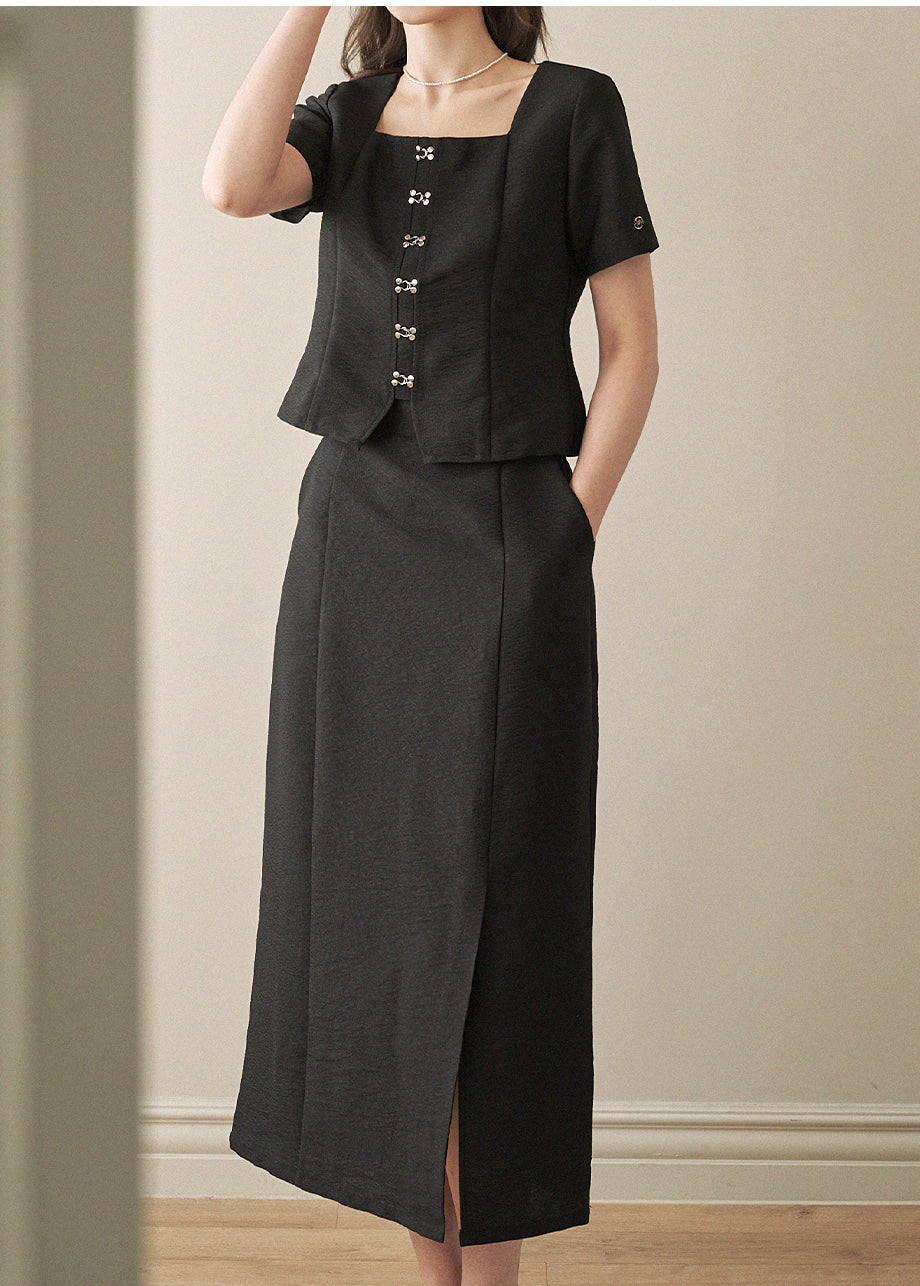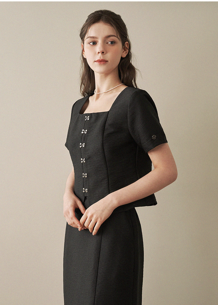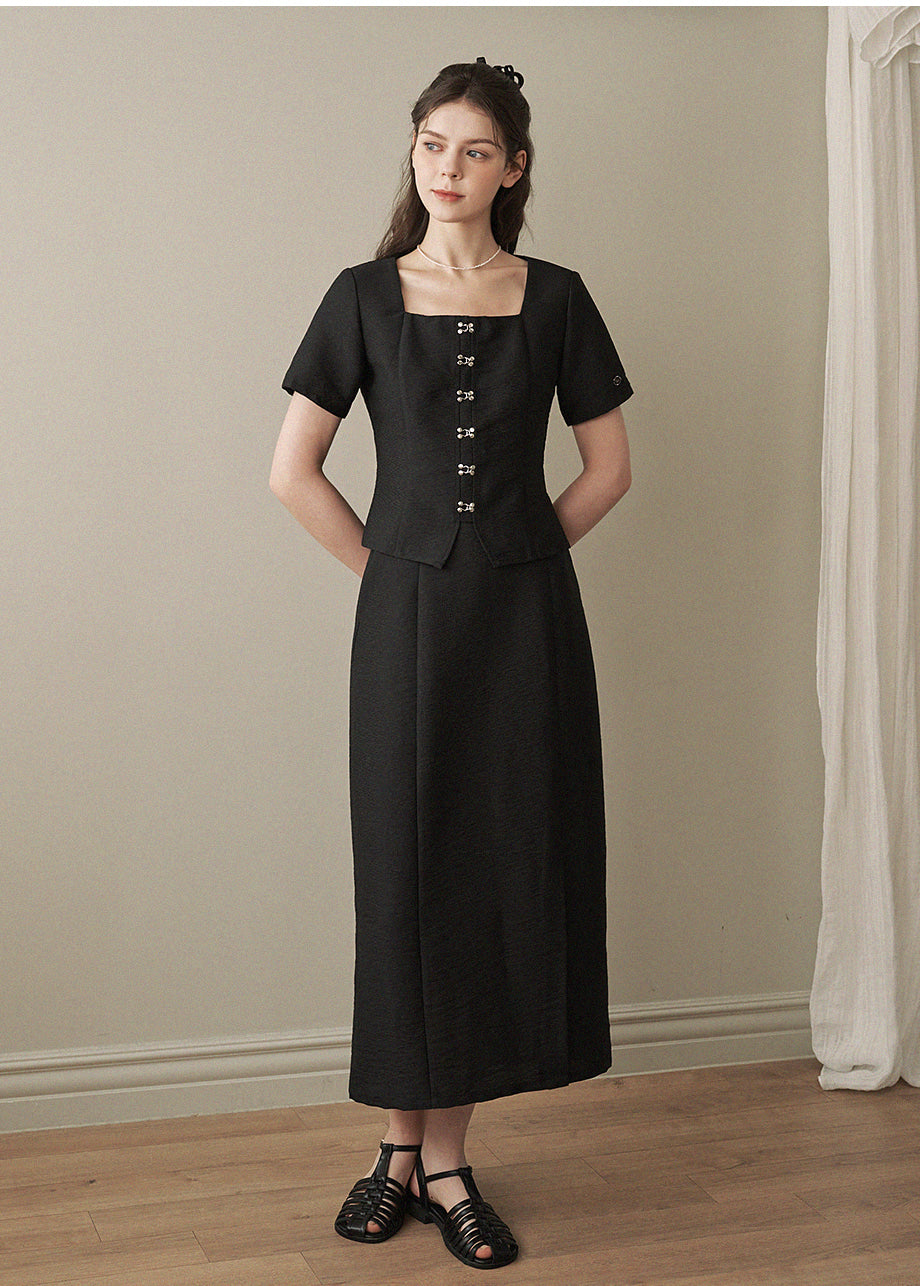 クラシックでデイリーなムードのブラウス&スカートセットアップです。軽くて耐久性に優れた生地を使用し、シルエットとクオリティを高めました。