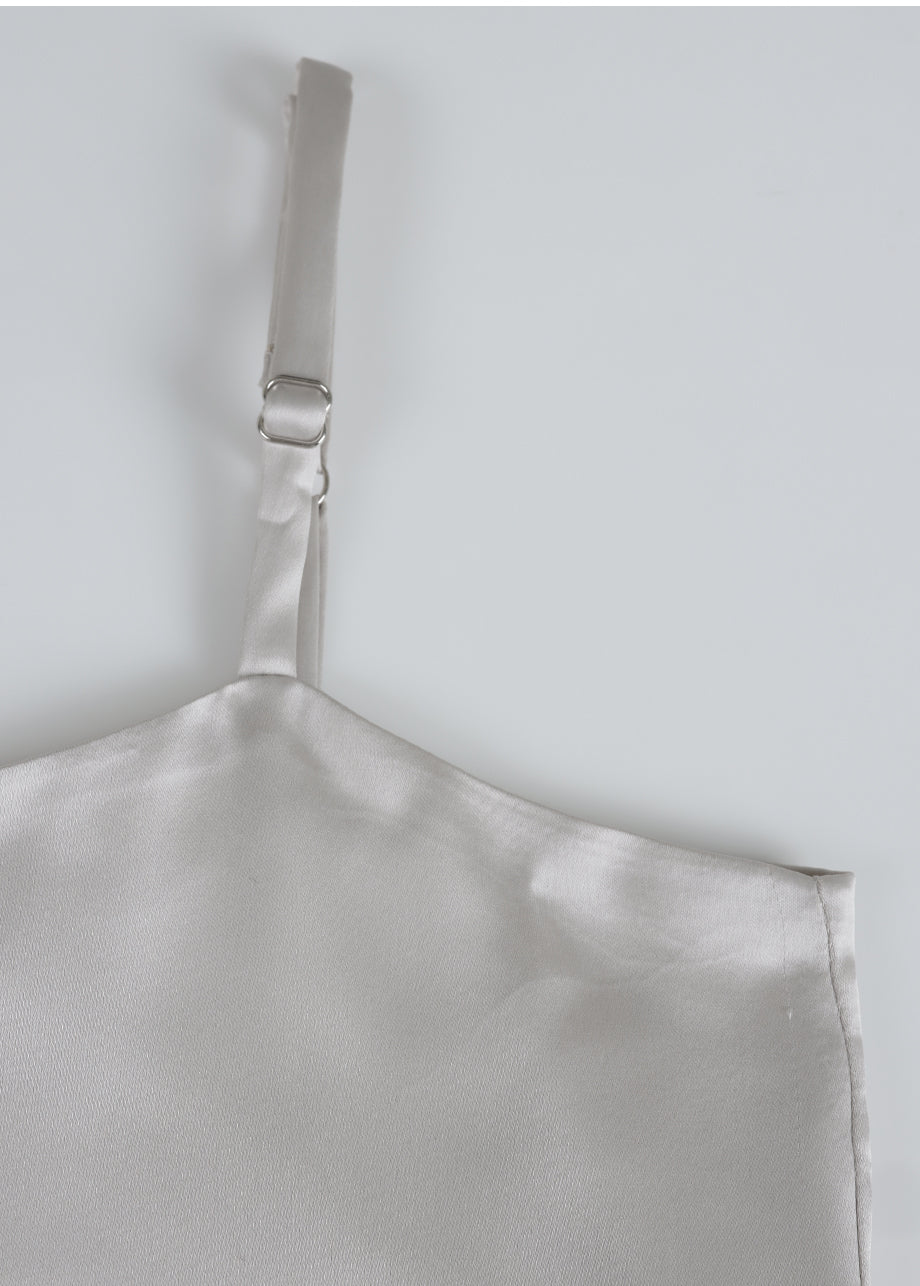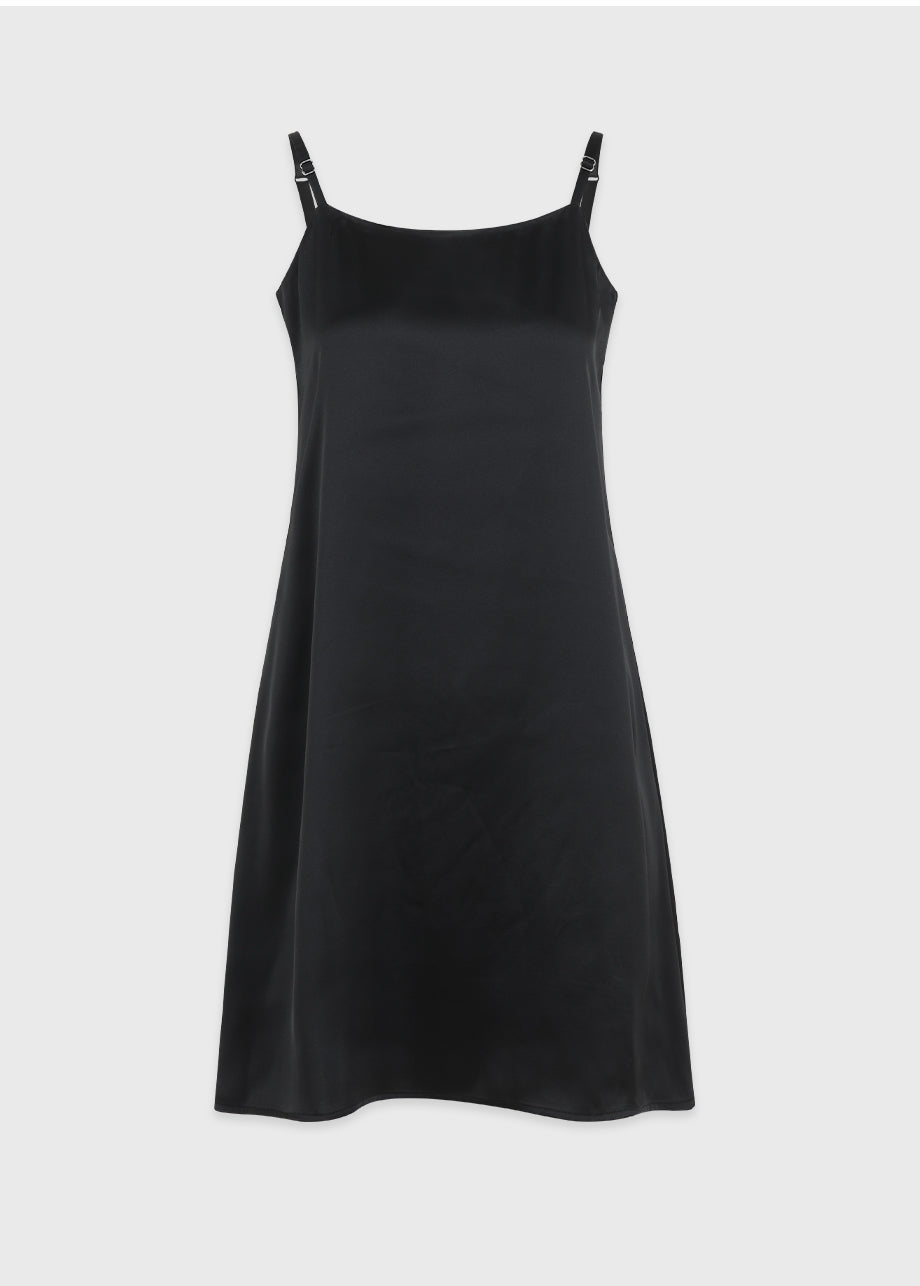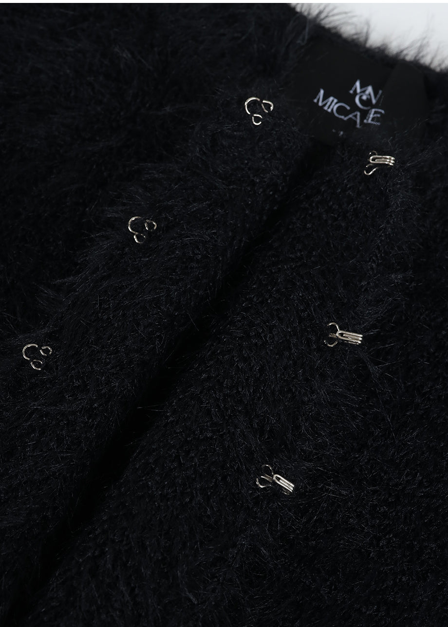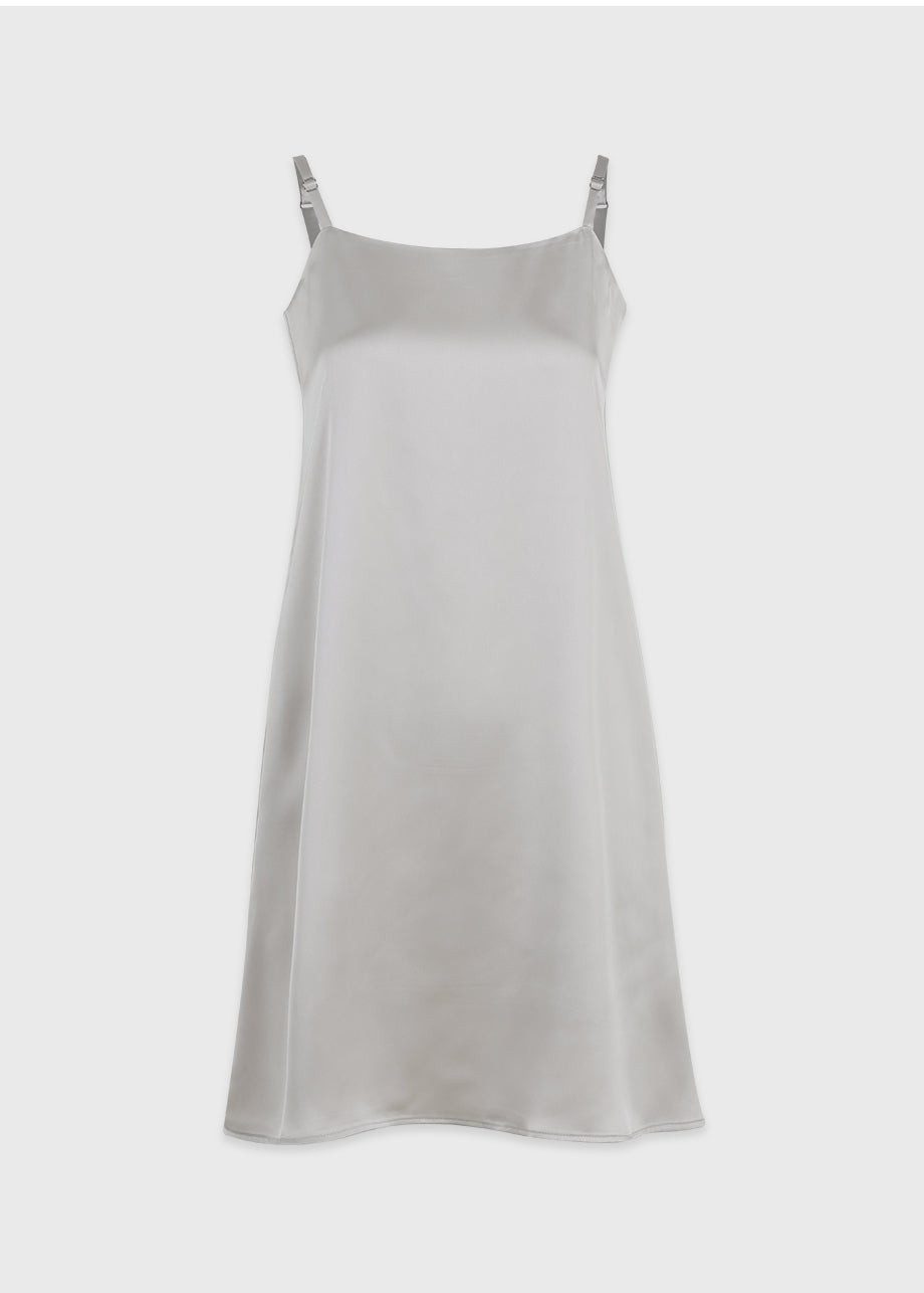 フェミニンでヴィンテージなムードが漂うドレスとカーディガンのセットアップです。ドレスには耐久性に優れた上質なサテン生地を使用し、カーディガンにはふんわりとしたロングヘア糸を採用して、刺激のない柔らかく暖かな着心地を実現しました。調節可能なストラップ付きスリーブレスドレスとヒップを覆う丈感のオーバーフィットカーディガンで、様々なスタイリングを気軽に楽しめます。ホリデールックやデートルックなど、特別な日の装いにもおすすめ。単品でもセットでも多彩に着こなせます。カーディガンの後ろ襟中央にはペンダント装飾をあしらい、上品さをプラスしました。*装飾や特殊な素材を使用した製品のため、クリーニング専門店でのお手入れをおすすめいたします。