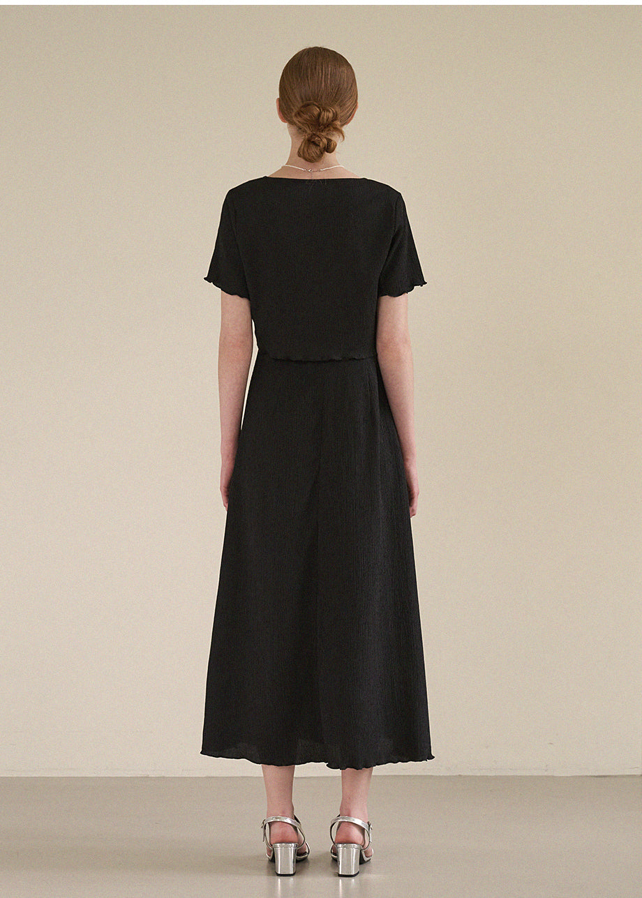 ラブリーでフェミニンなムードのワンピースとカーディガンのセットアップです。テンションのある軽量素材で、着心地のクオリティを高めました。生地表面の繊細なリンクルテクスチャーがさりげないポイントになります。